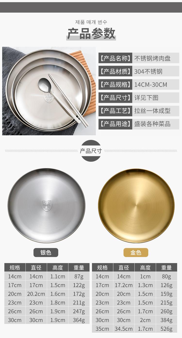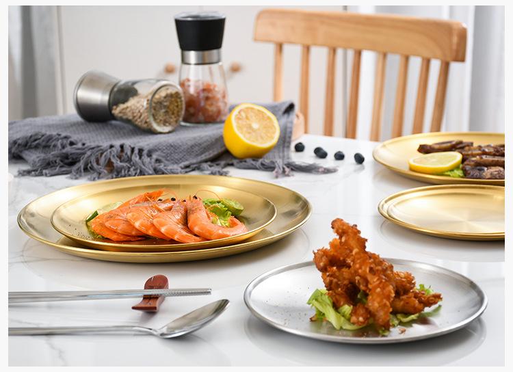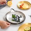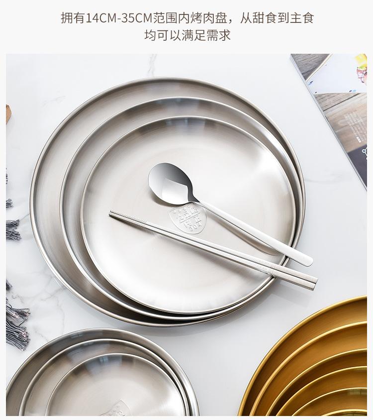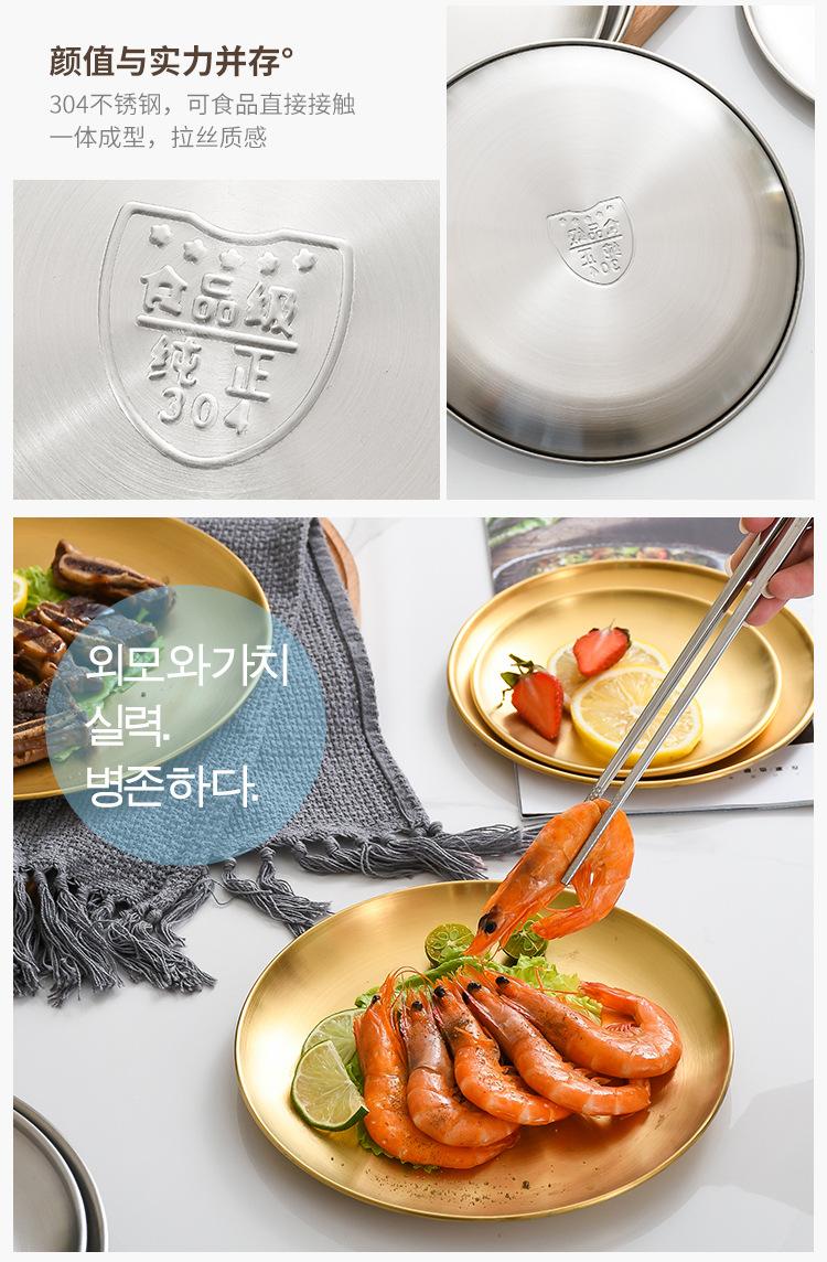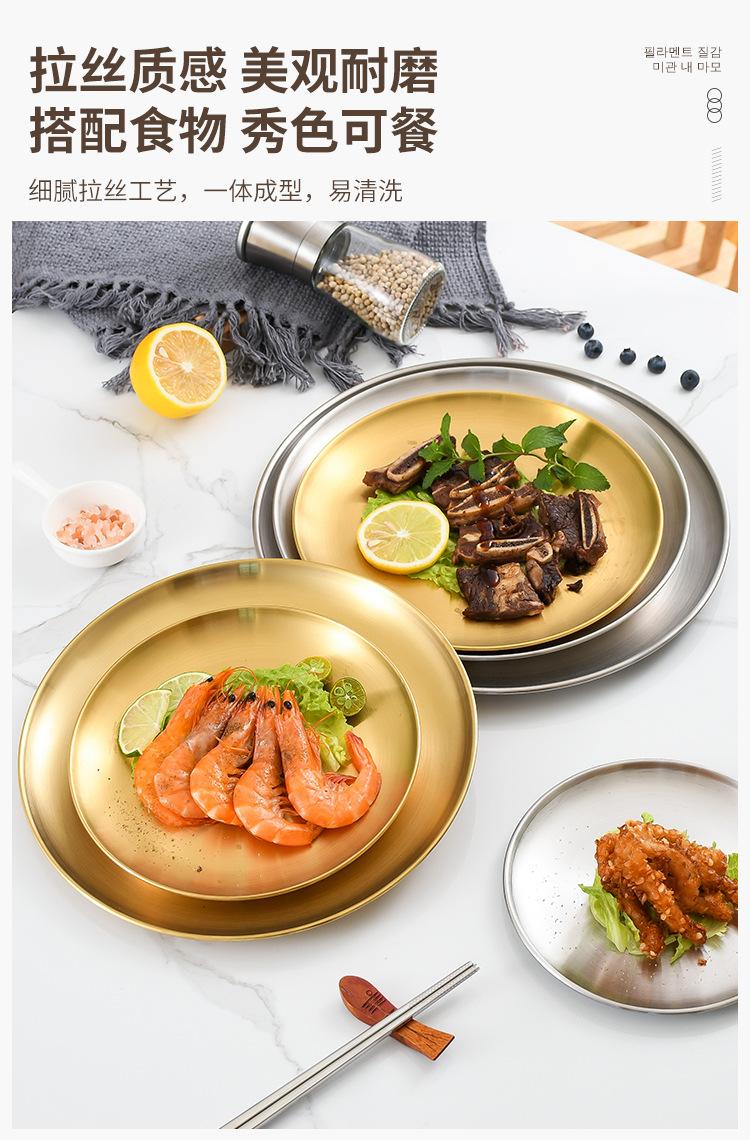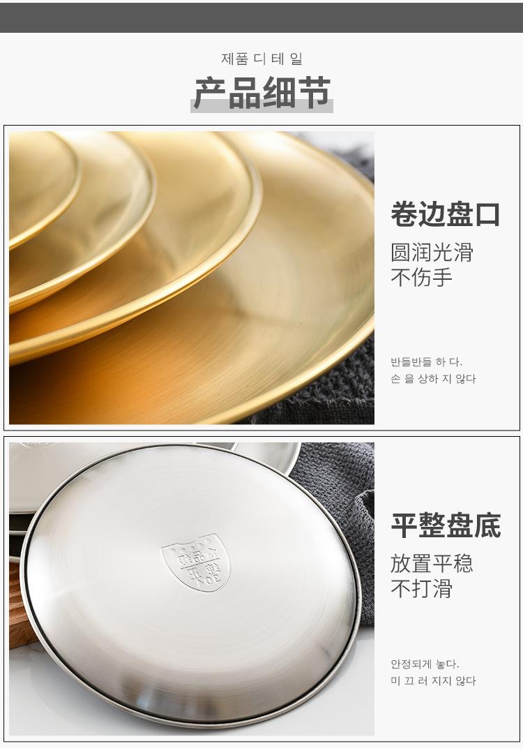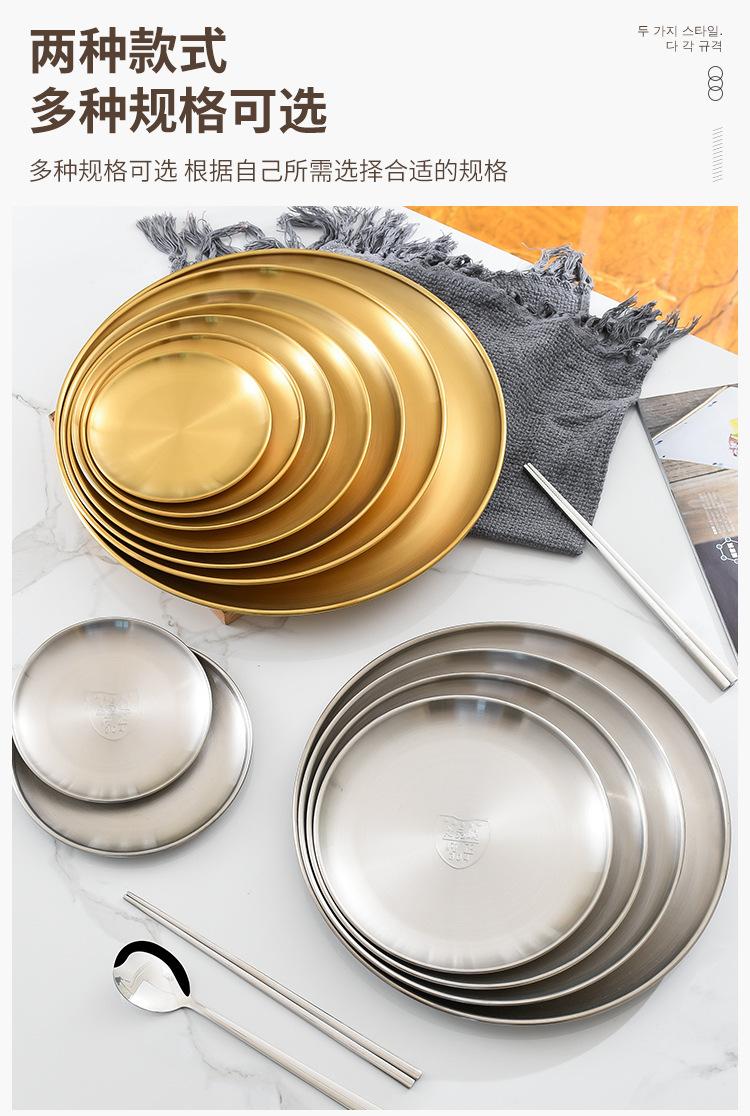 Bandeja gruesa de acero inoxidable estilo coreano con forma de disco dorado, plato para fruta, plato para pastel, plato comercial para hueso, plato para barbacoa, plato poco profundo