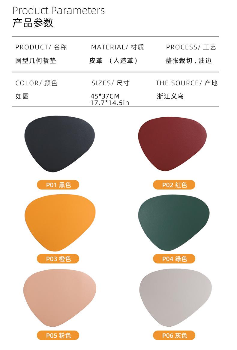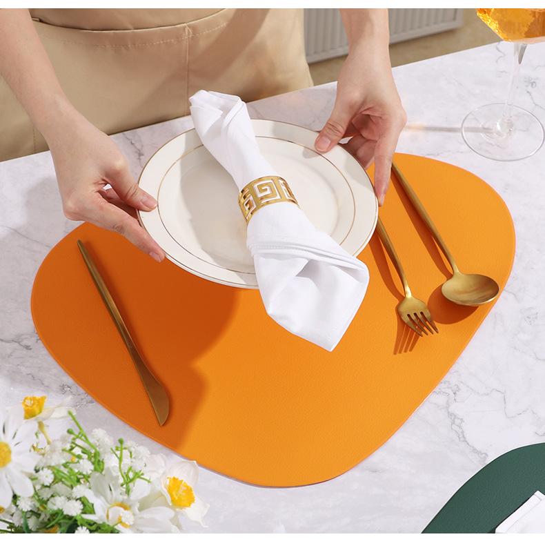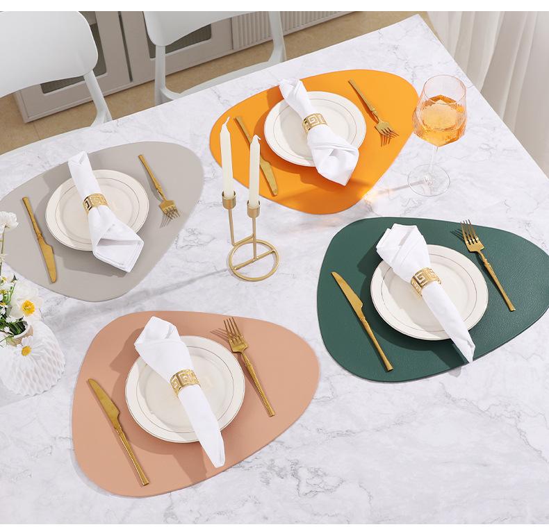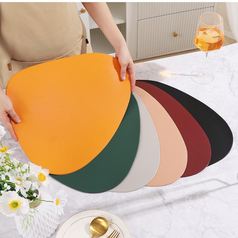 Mantel Individual Transfronterizo Más Vendido Forma de Huevo Cuero Mantel para Comida Occidental Estilo Ins Simple de Alta Gama Hotel Aislamiento Anti-Escaldaduras Mantel para Comida Occidental