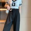Pantalones deportivos tipo harén de primavera y otoño para mujer, holgados, de pierna ancha y a rayas, de moda coreana, de cintura alta, adelgazantes, informales, recortados y modernos.