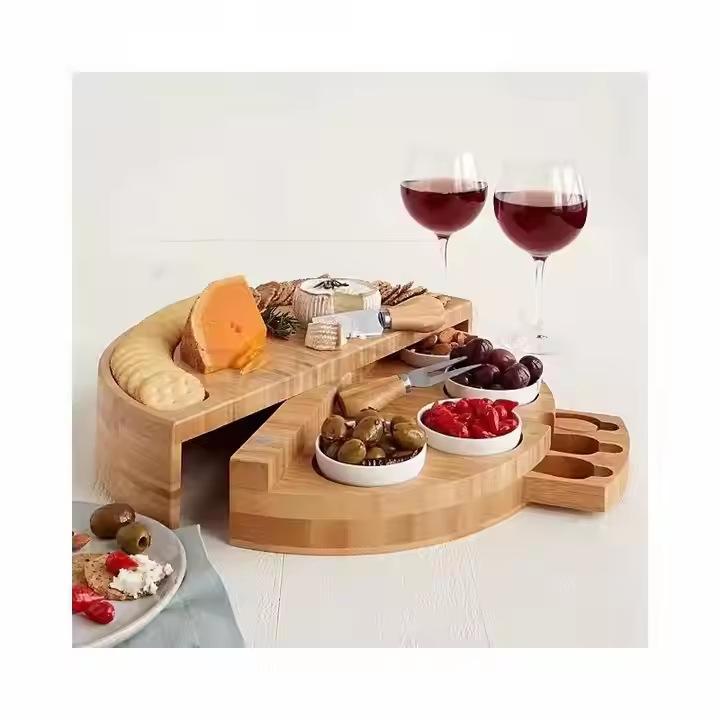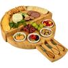Tabla de quesos redonda de bambú, tabla para cortar quesos, tabla de cortar giratoria plegable con cortadores, tabla para cortar verduras, frutas y pan.