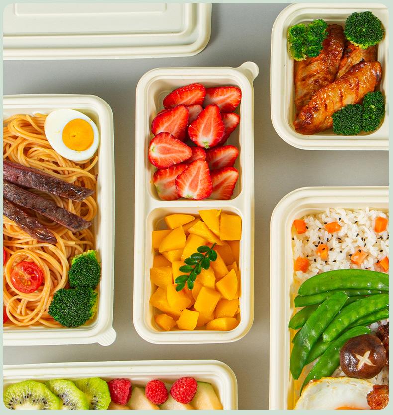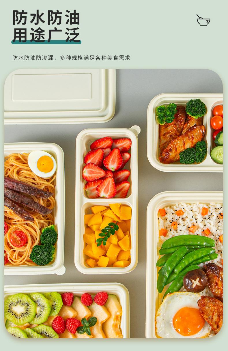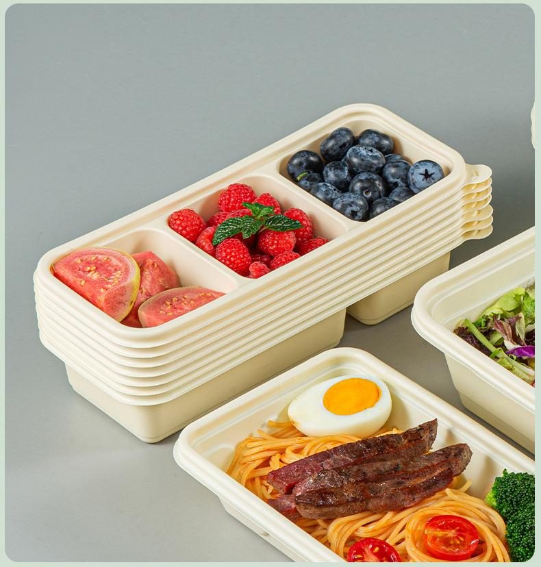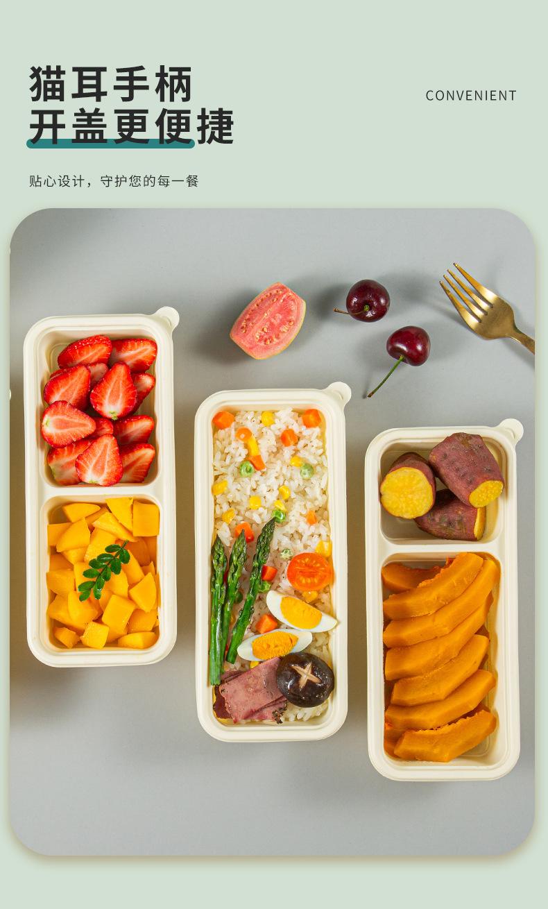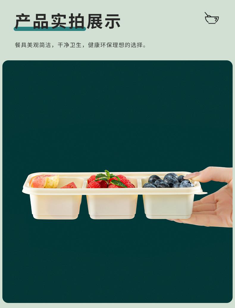Caja de Comida Desechable Almidón de Maíz Doble Compartimento Estilo Japonés Tira Larga Tres Compartimentos Caja de Empaque Amigable con el Medio Ambiente Para Llevar Comida Ligera Hogar Lonchera