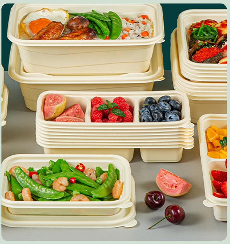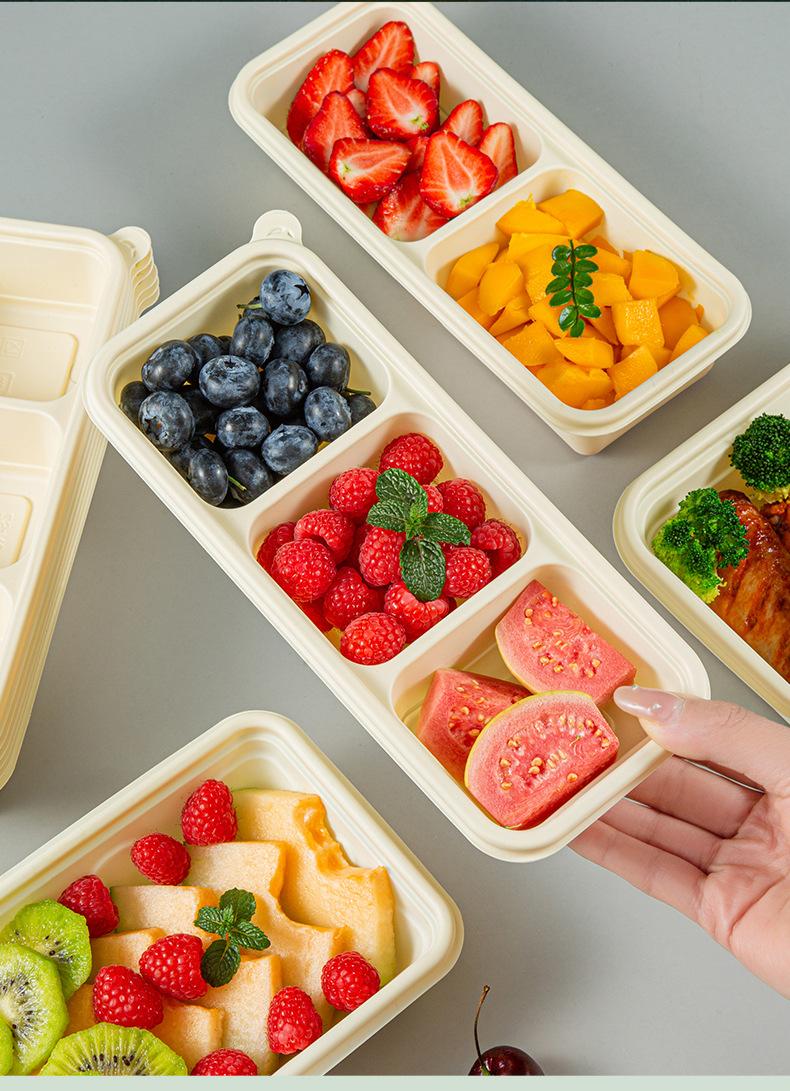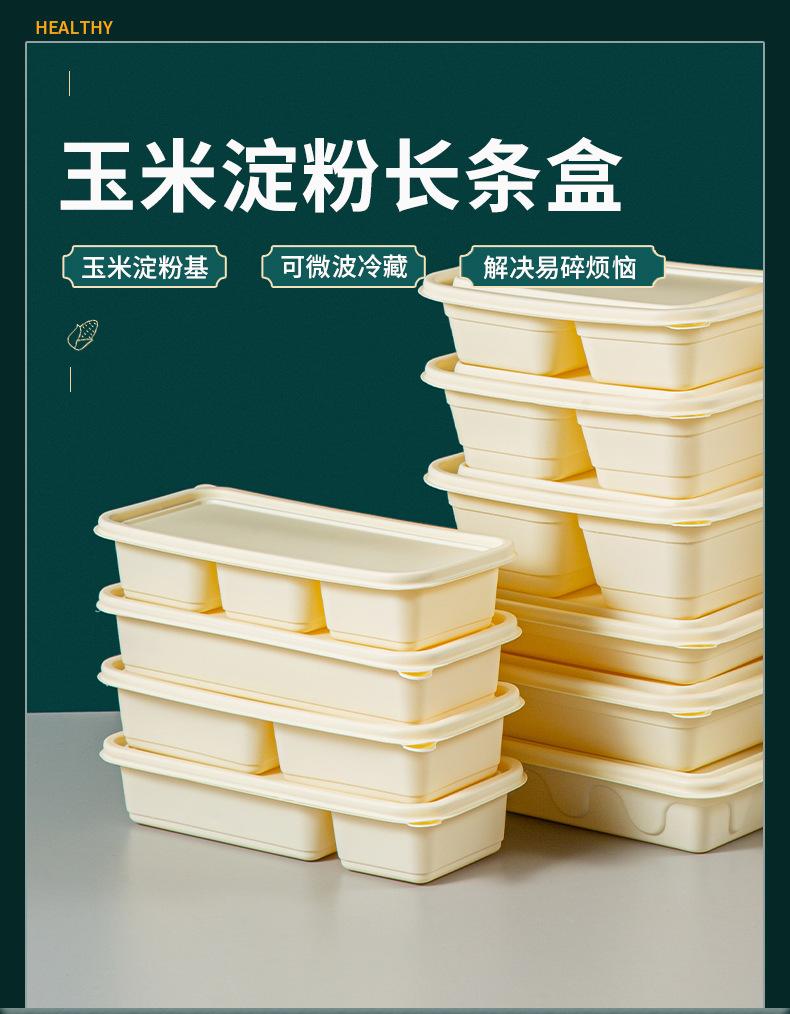 500ml corn starch long single compartment with lid 1 set, 500ml corn starch strips divided into double compart...