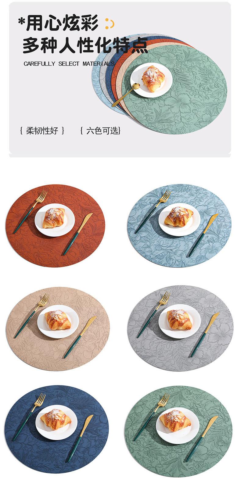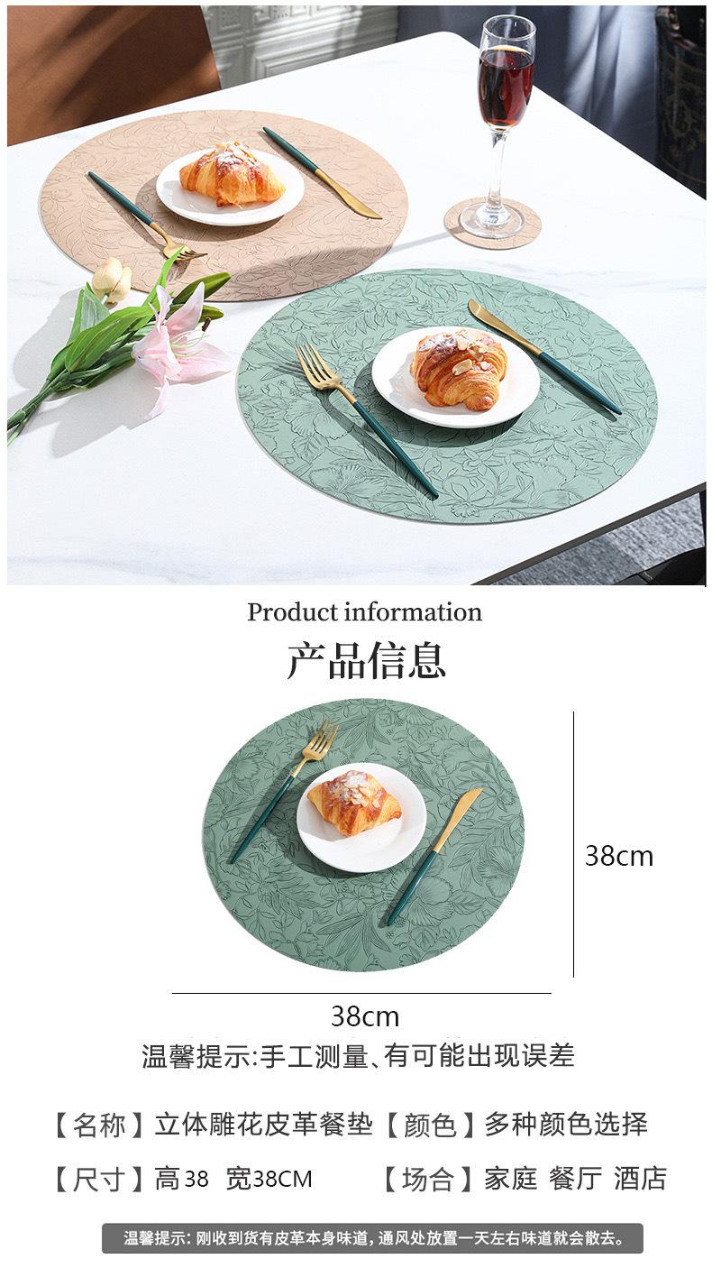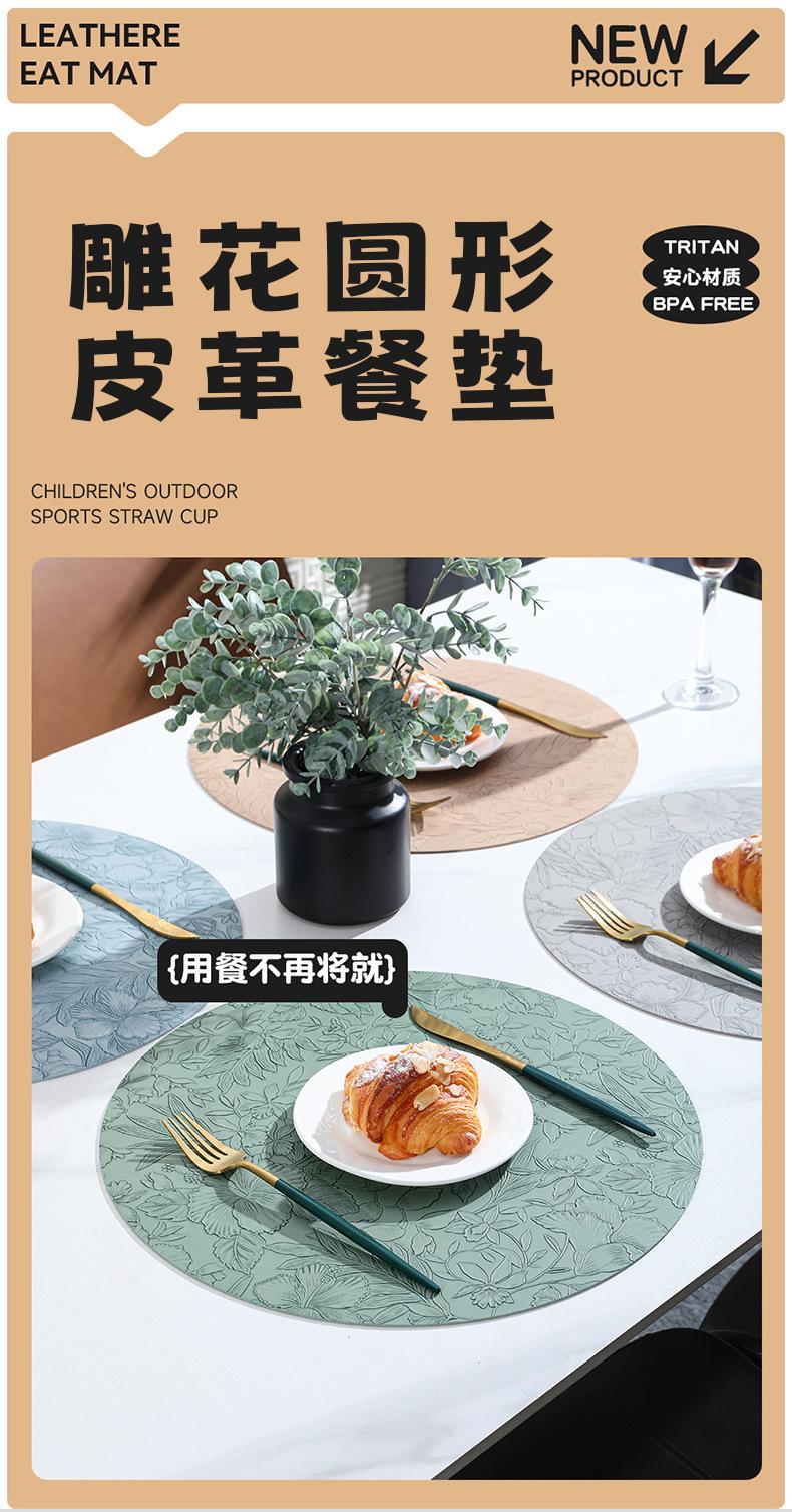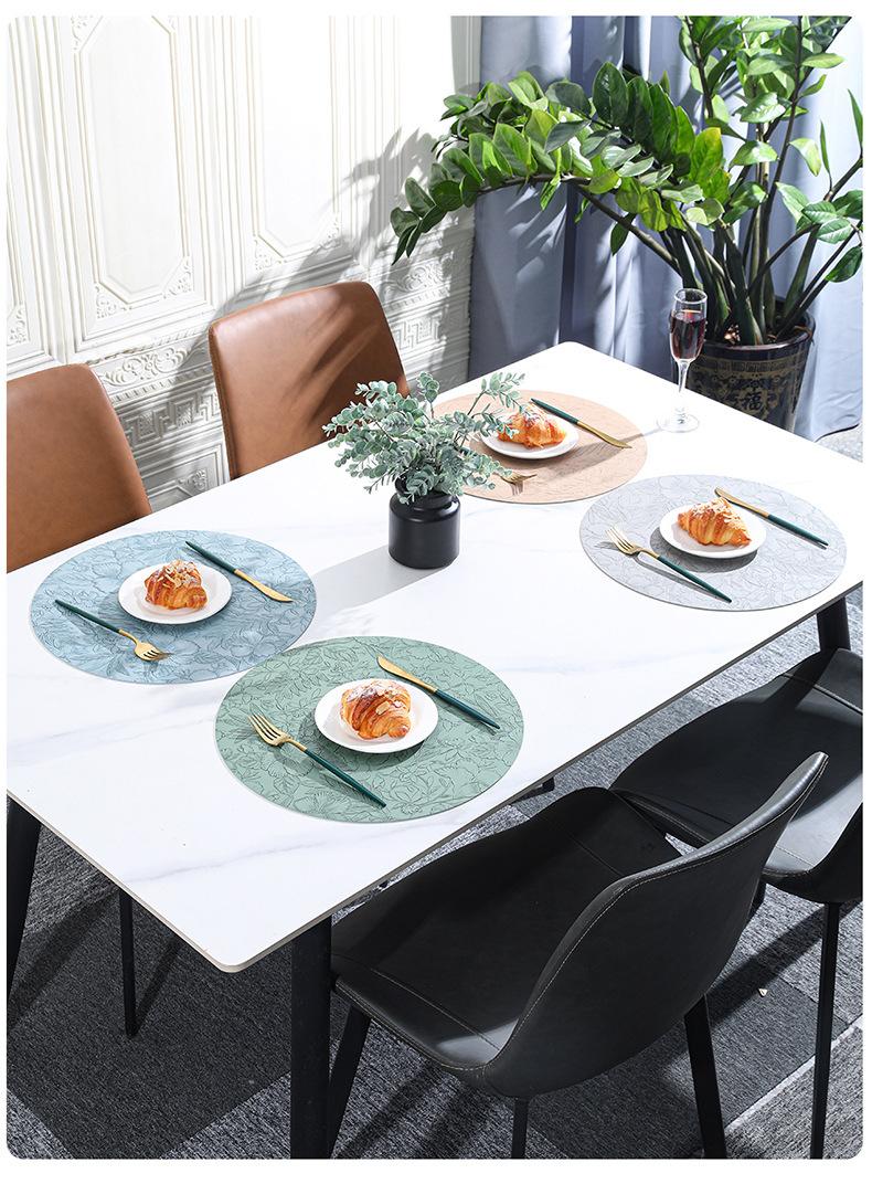 Mantel Individual de Cuero Impermeable Antideslizante Transfronterizo Redondo de Doble Cara a Prueba de Aceite Hotel Hogar Aislamiento Térmico Mantel Individual Mesa de Comedor Sensación de Alta Gama Platos