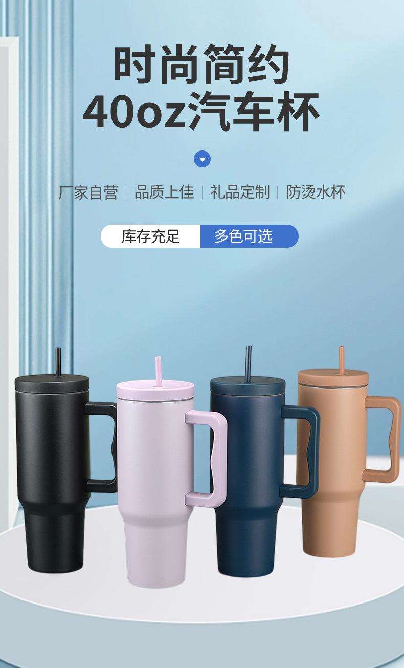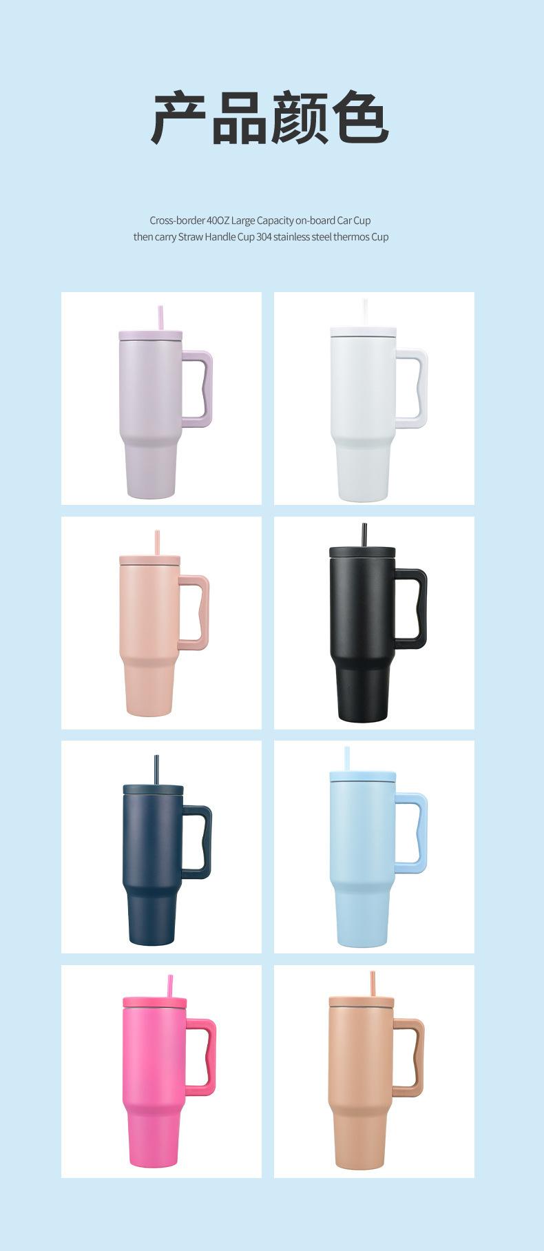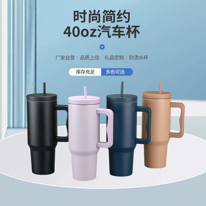 Vaso para coche transfronterizo de 40 oz, con asa de acero inoxidable 304, con pajita, portátil para exteriores, para hielo frío, venta al por mayor