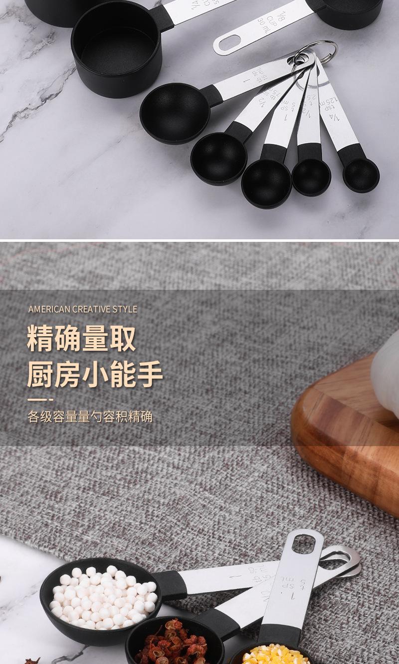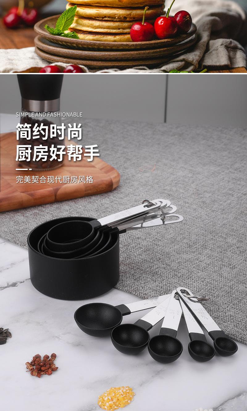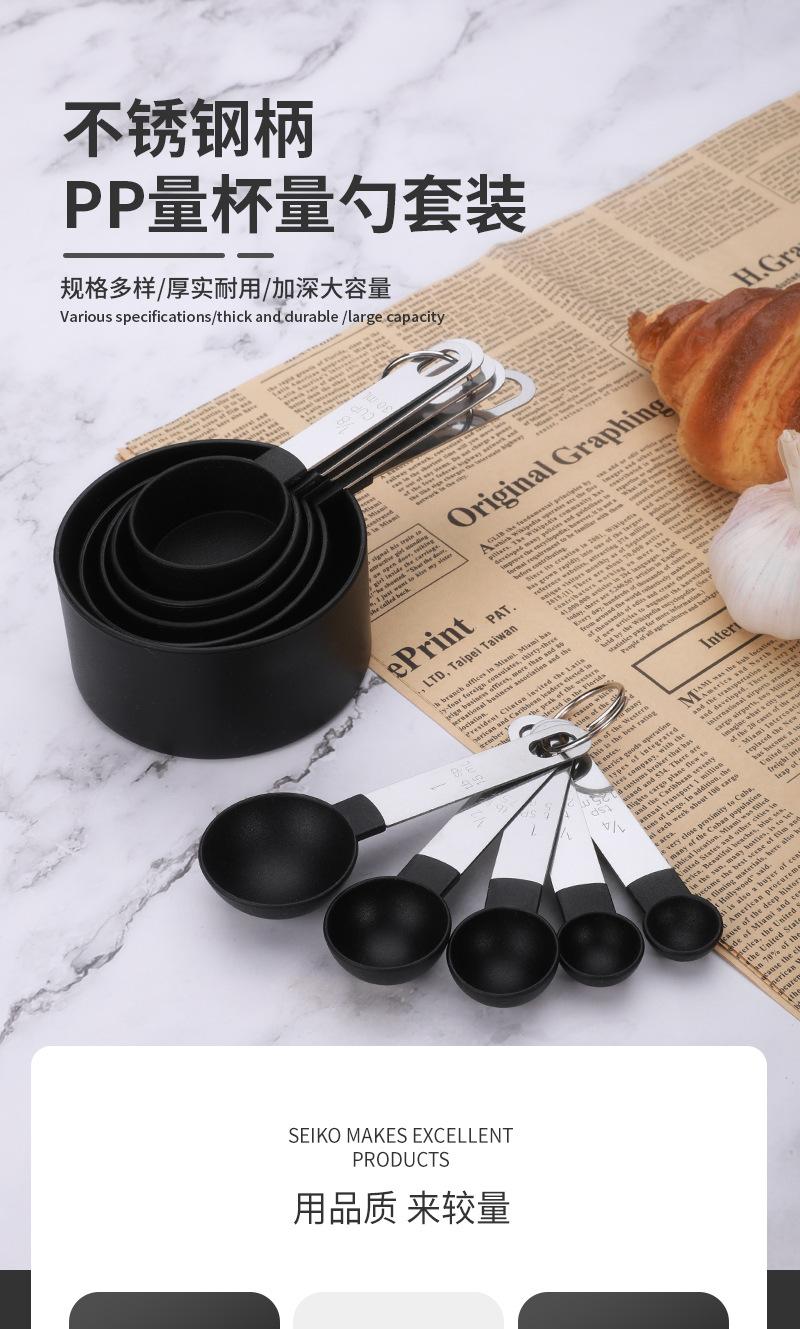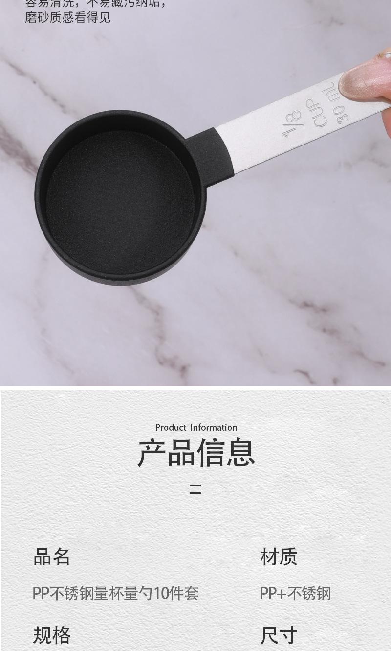 Utensilios para hornear con mango de acero inoxidable, cuchara medidora, taza medidora, juego de 10 piezas con escala, cuchara medidora de plástico, adecuado para utensilios de cocina