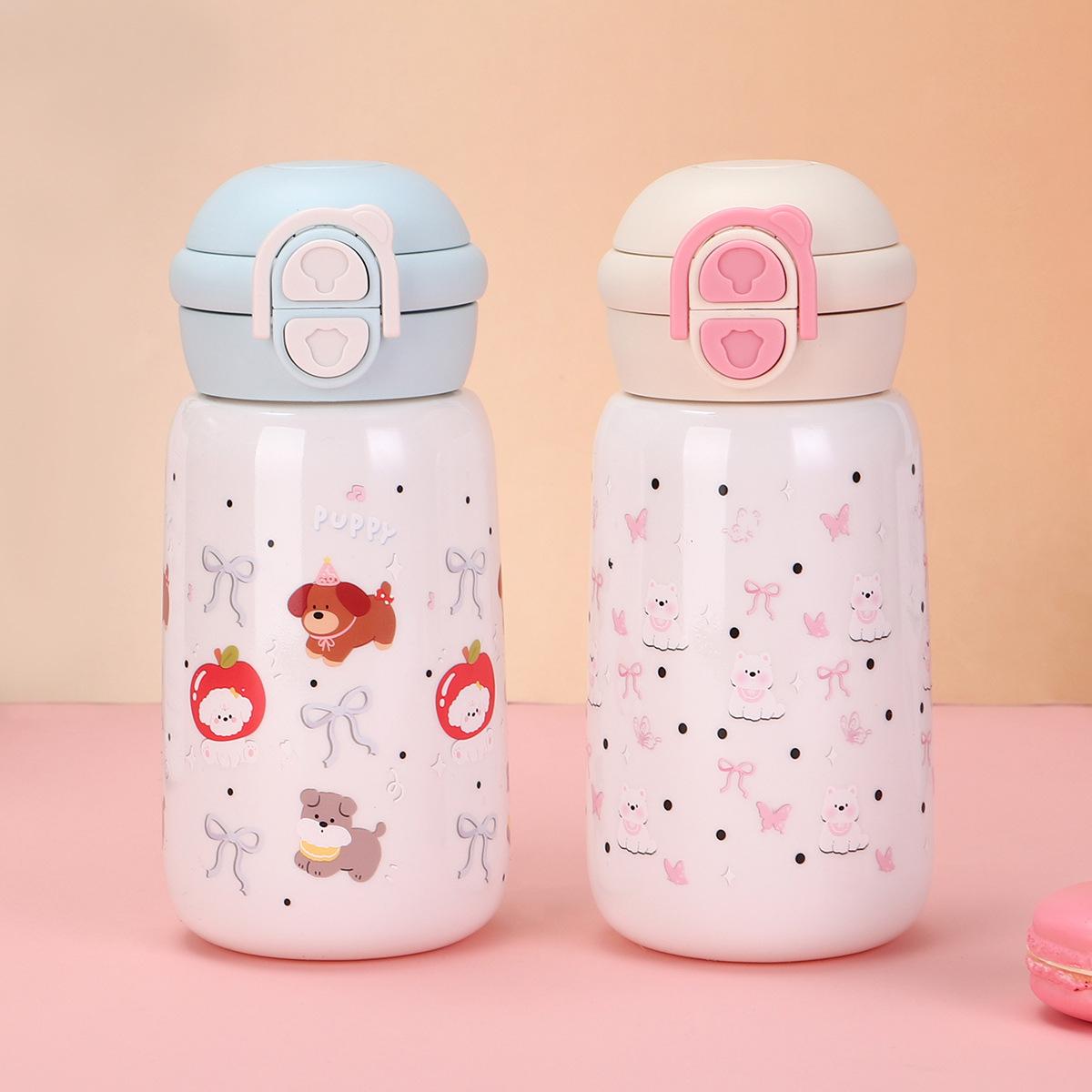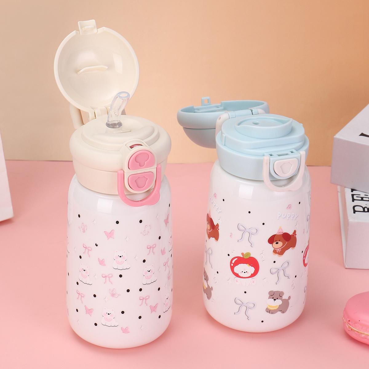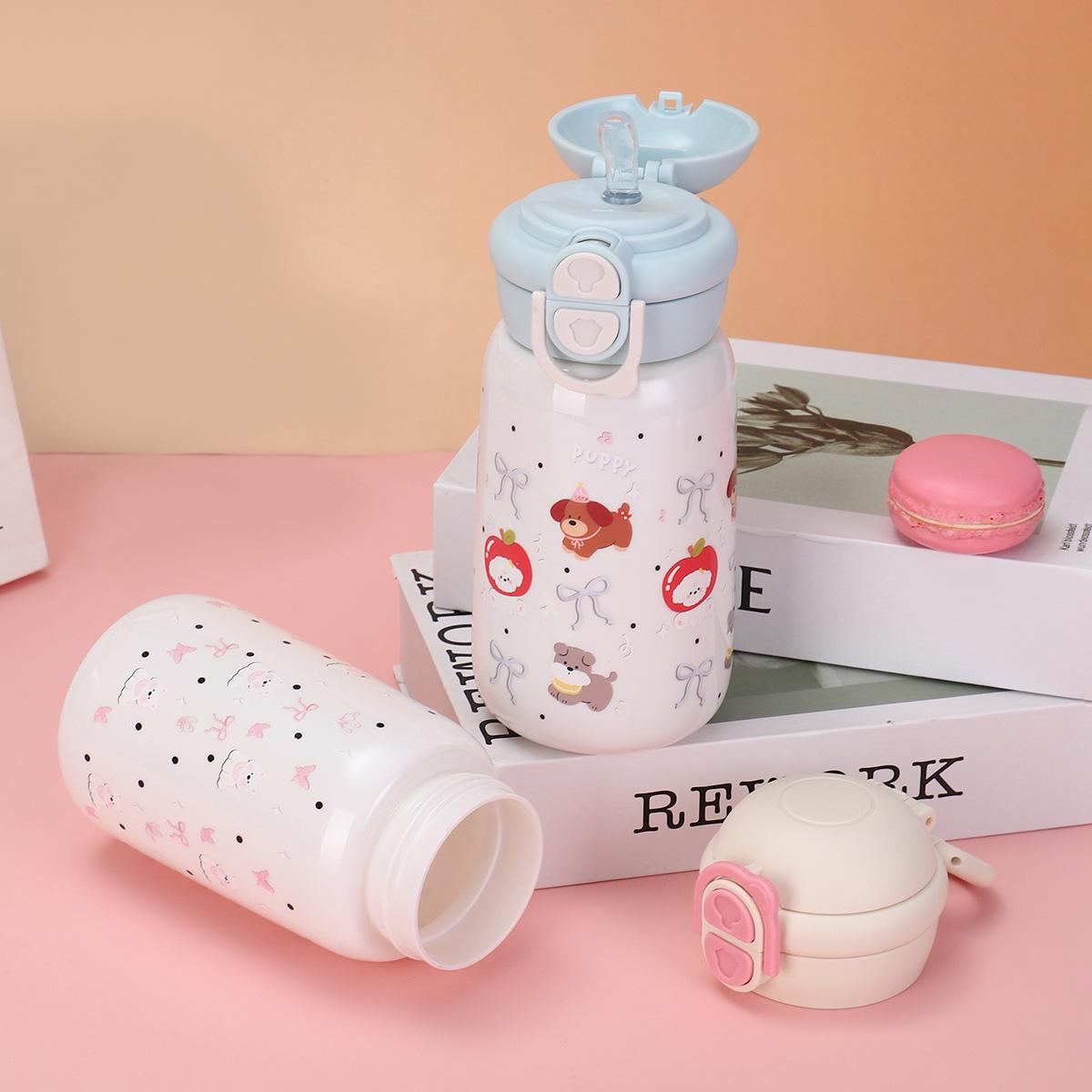 Taza Termo Rebotante de Acero Inoxidable 316 Taza para Beber Doble para Niñas con Buena Apariencia, Gran Capacidad y Linda Taza con Popote para Estudiantes