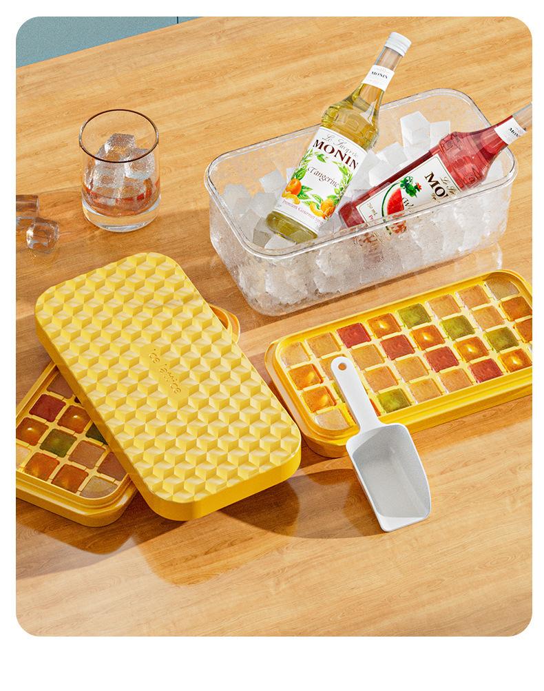 [food grade] green ice tray set 64 grids (free ice shovel + large capacity ice storage box)