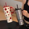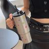 Termo de paja de gran capacidad, alto valor de color, aislamiento térmico para niñas, taza de hielo para automóvil con asa, taza para automóvil para exteriores
