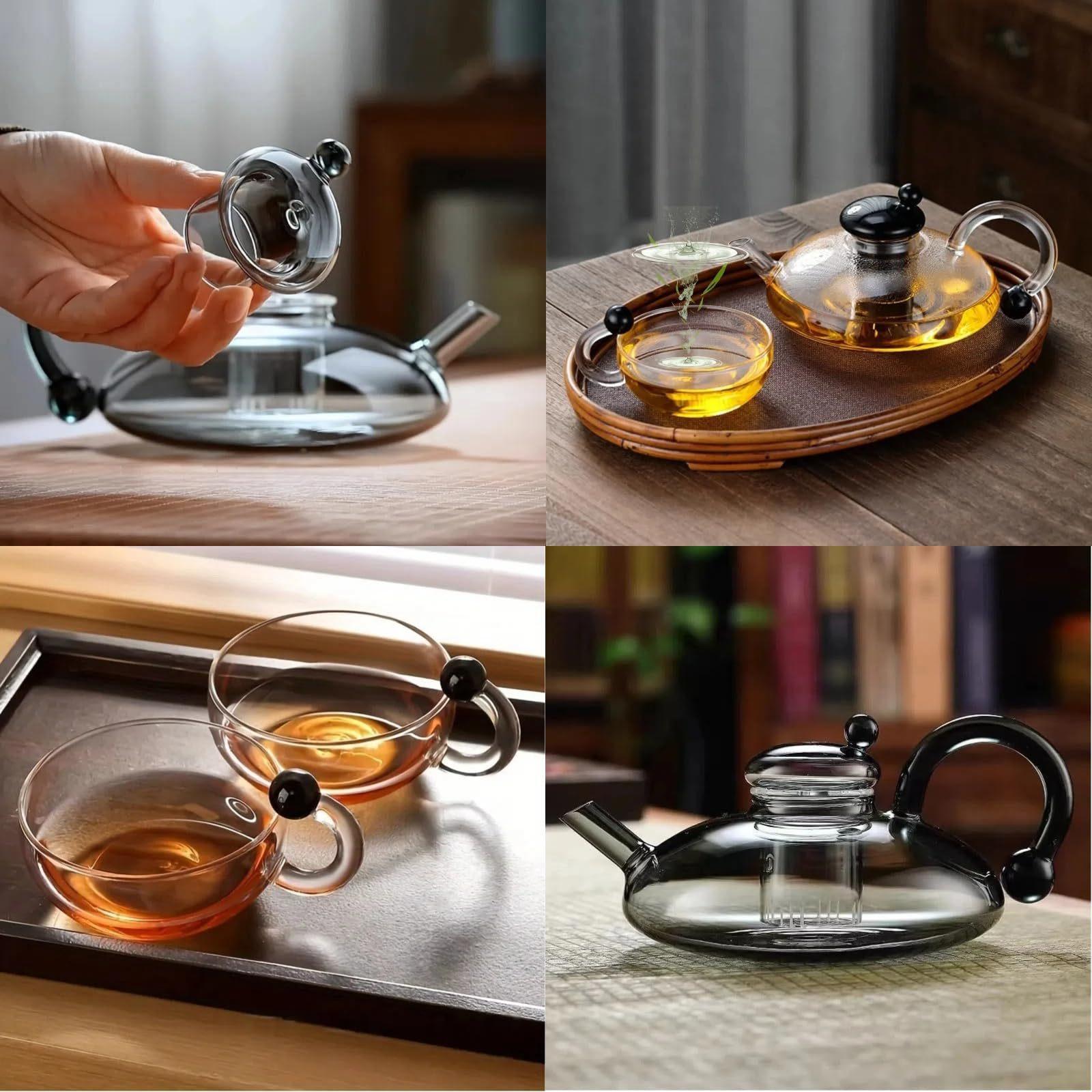 Tetera de Vidrio Transfronteriza Resistente al Calor Juego de Té de Vidrio Adecuado Cafetera Doméstica Tetera de Filtro de Borosilicato Resistente a Altas Temperaturas