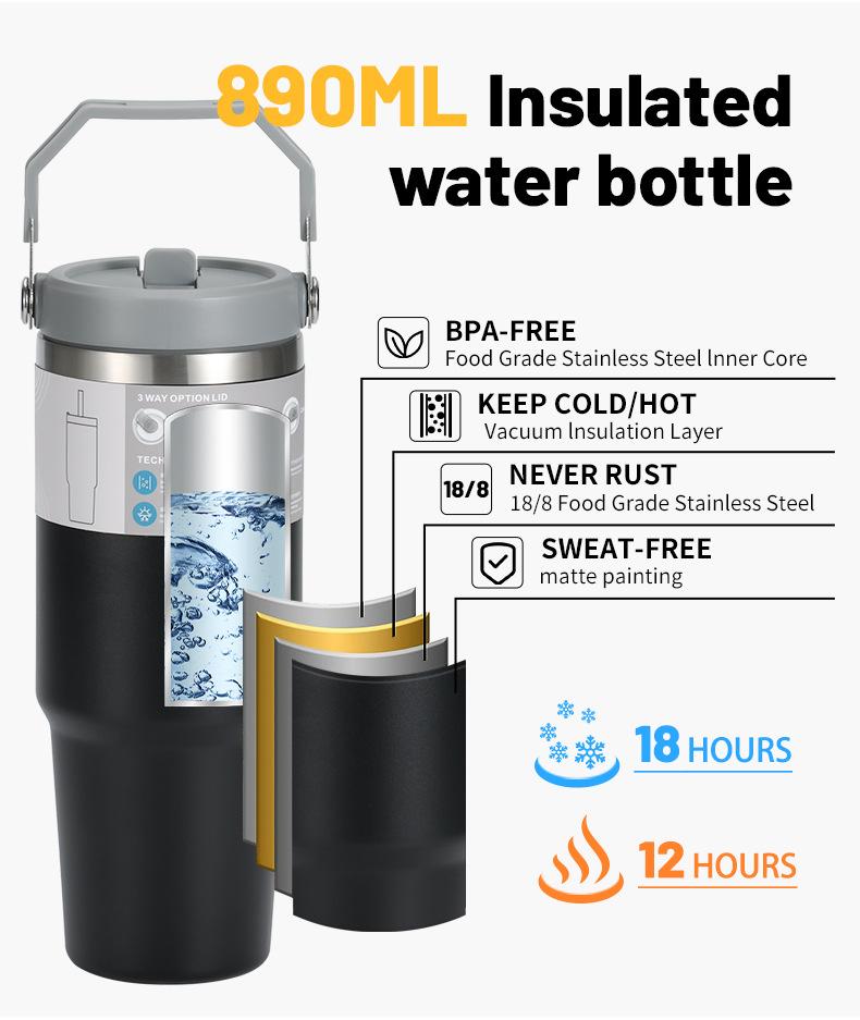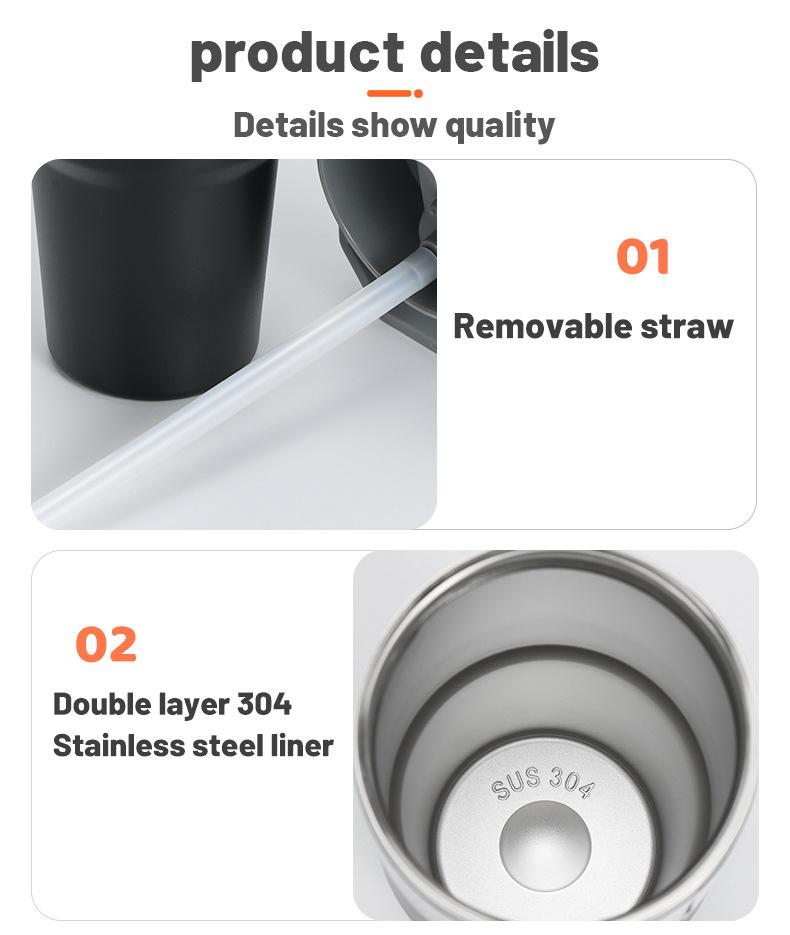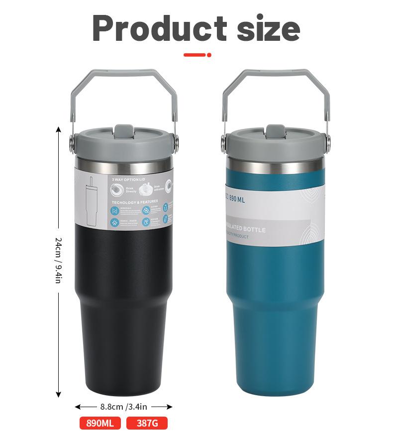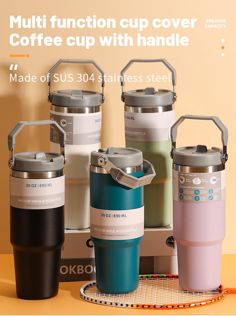Vaso Termo de Acero Inoxidable de Gran Capacidad 900ml Vaso Portátil para Coche para Exteriores con Popote Vaso para Hielo Venta al por Mayor