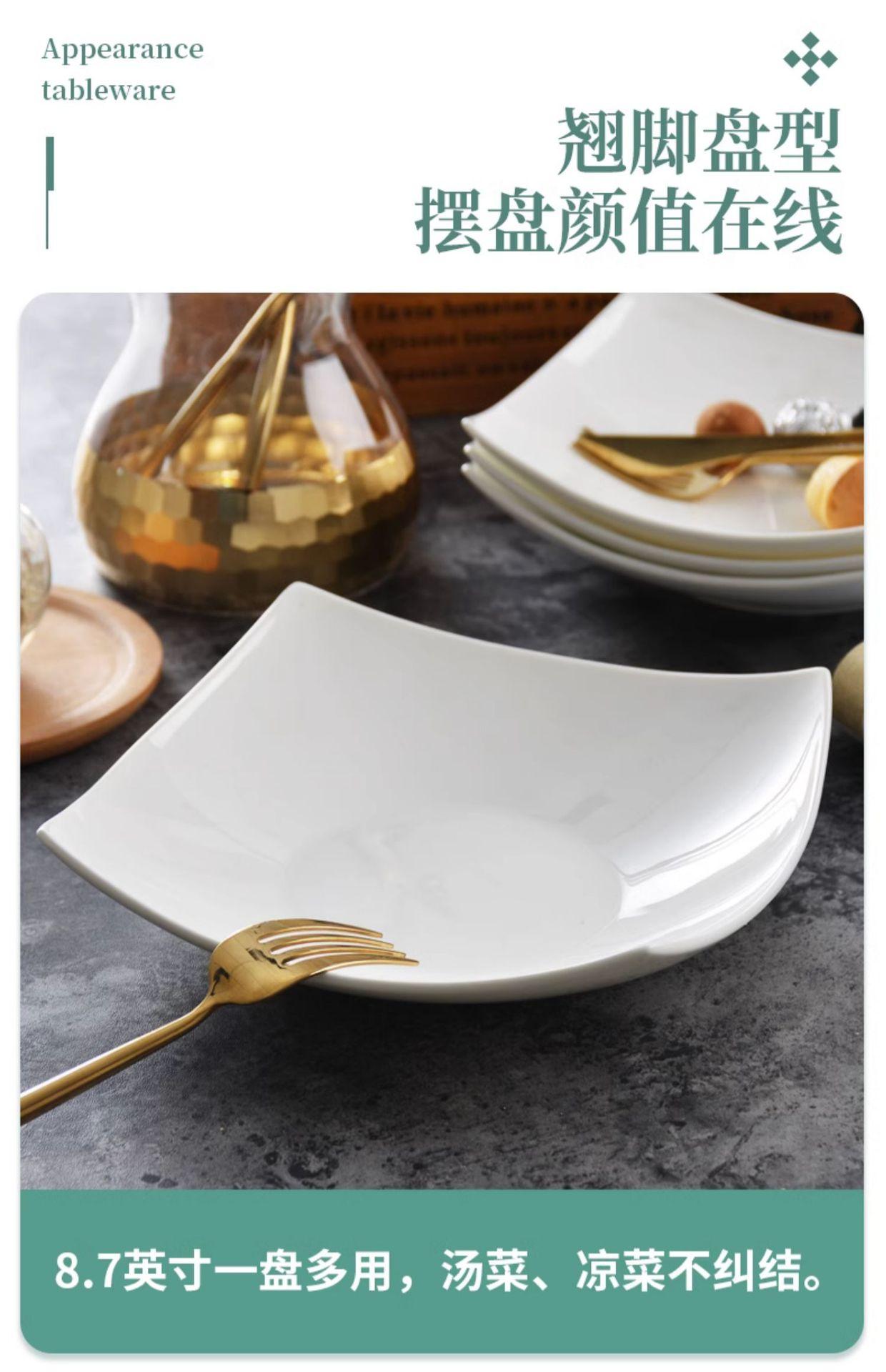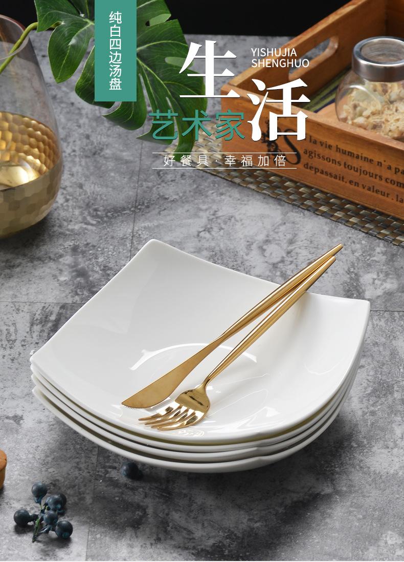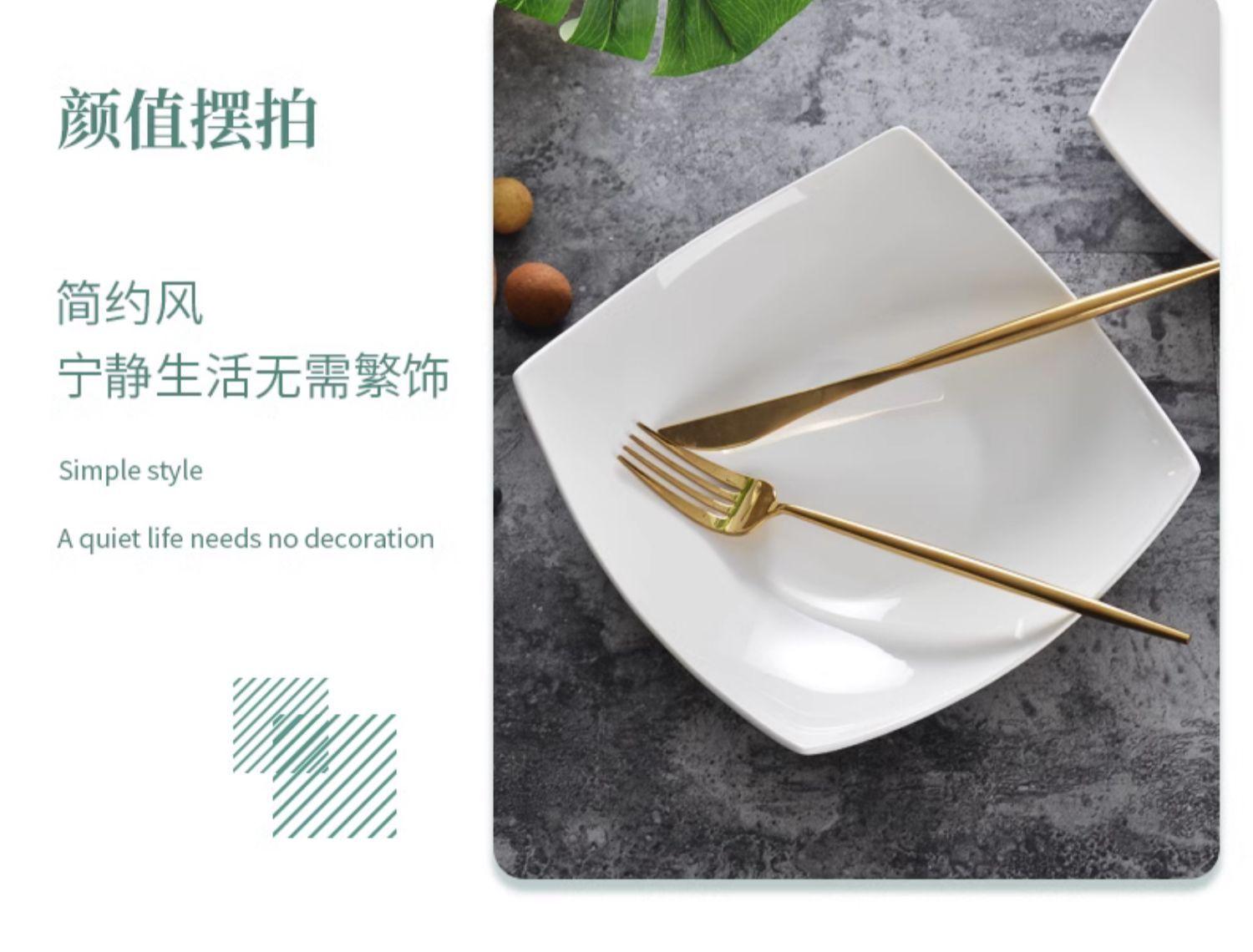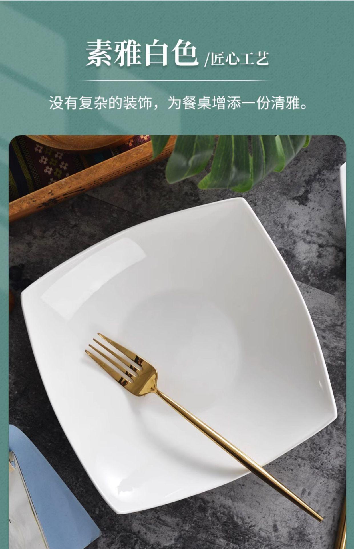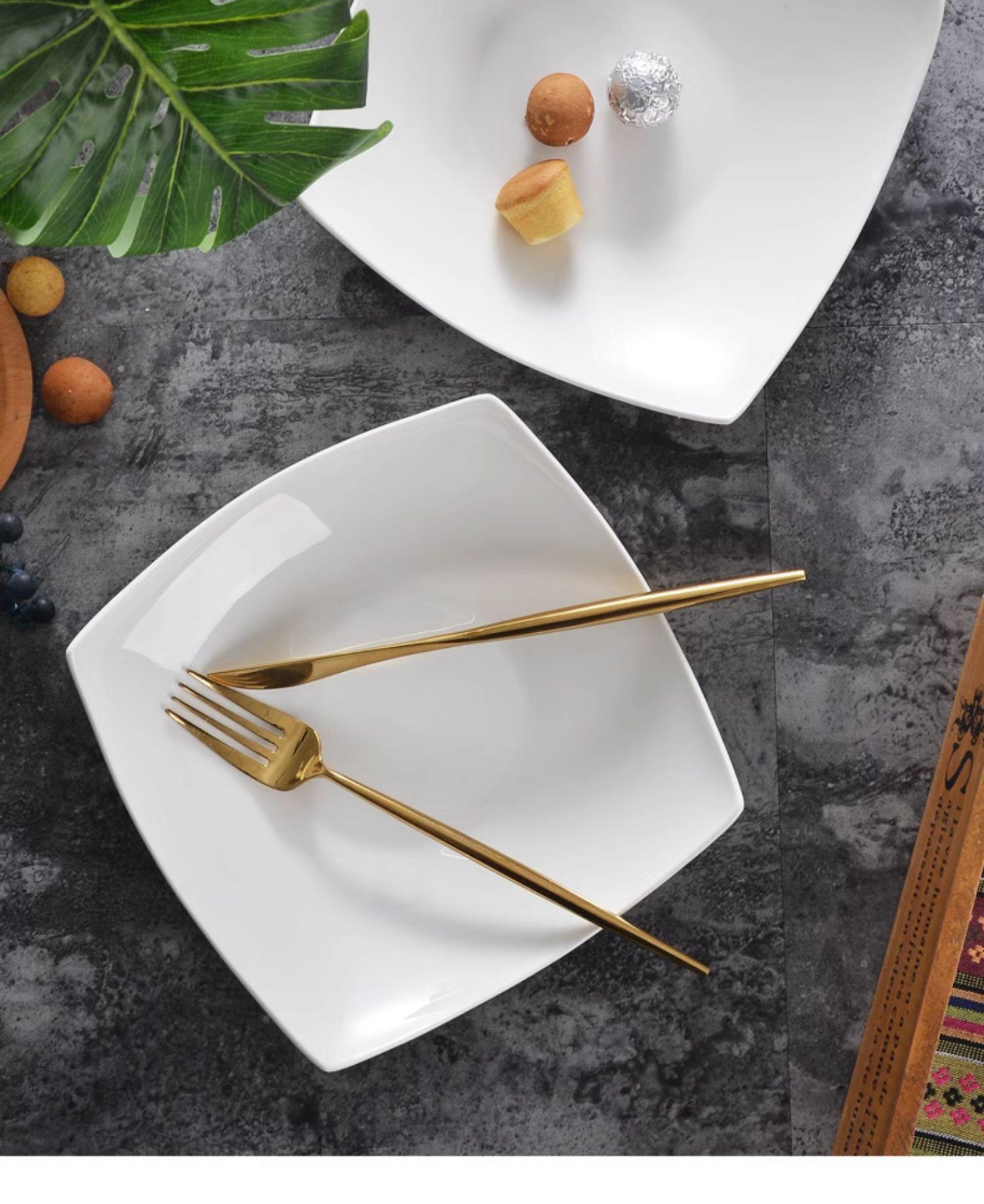 Plato Cuadrado Creativo de Porcelana Plato Blanco Puro Plato Cerámico Plato Hondo Plato Cuadrado para el Hogar 8 pulgadas Porcelana Fina Plato para Entremeses Fríos