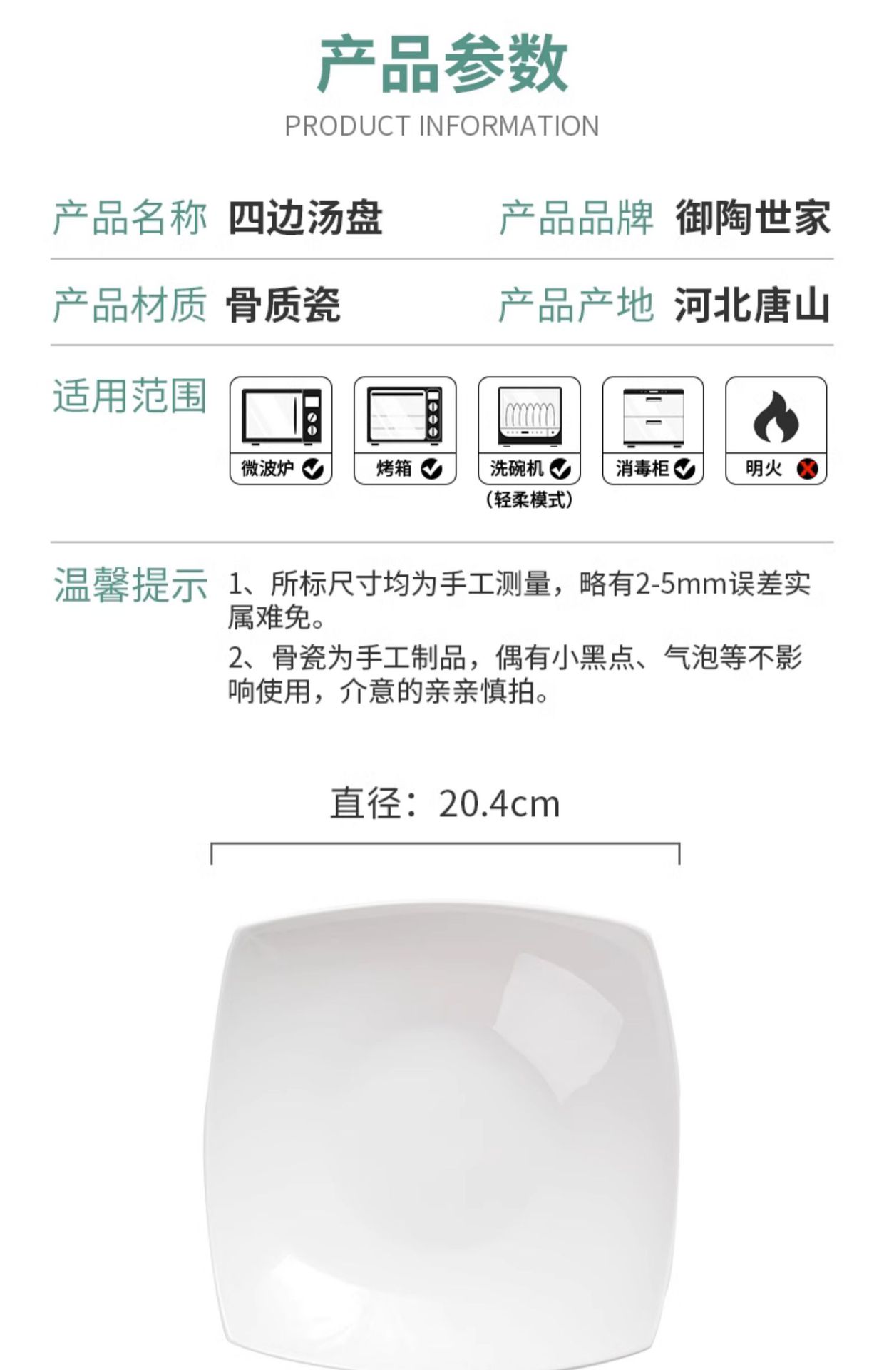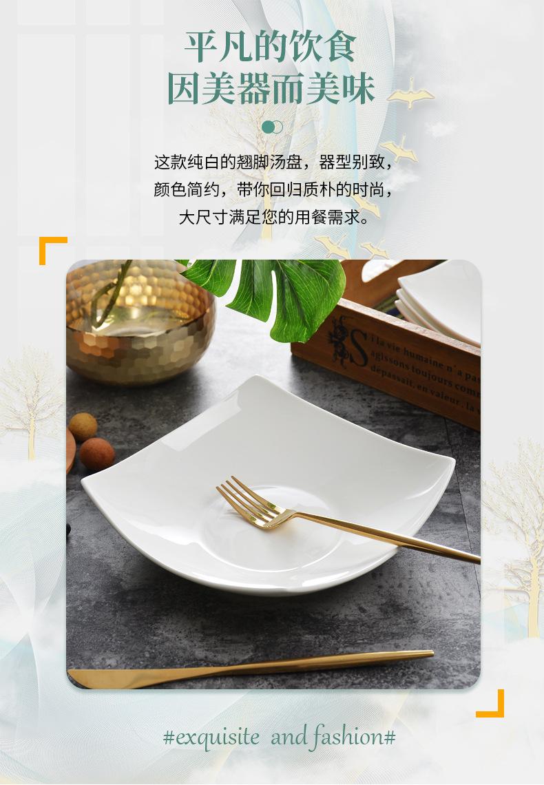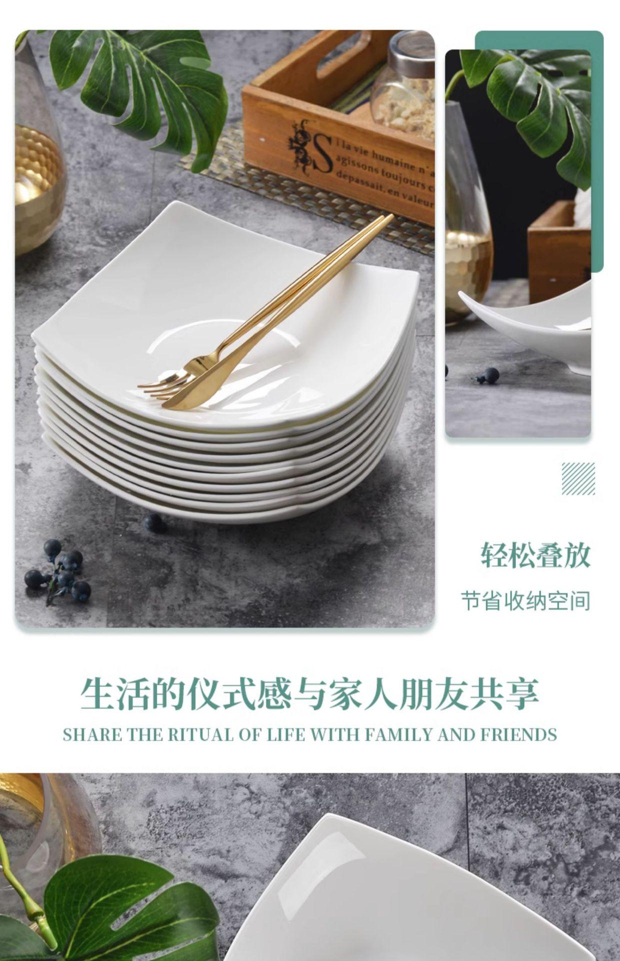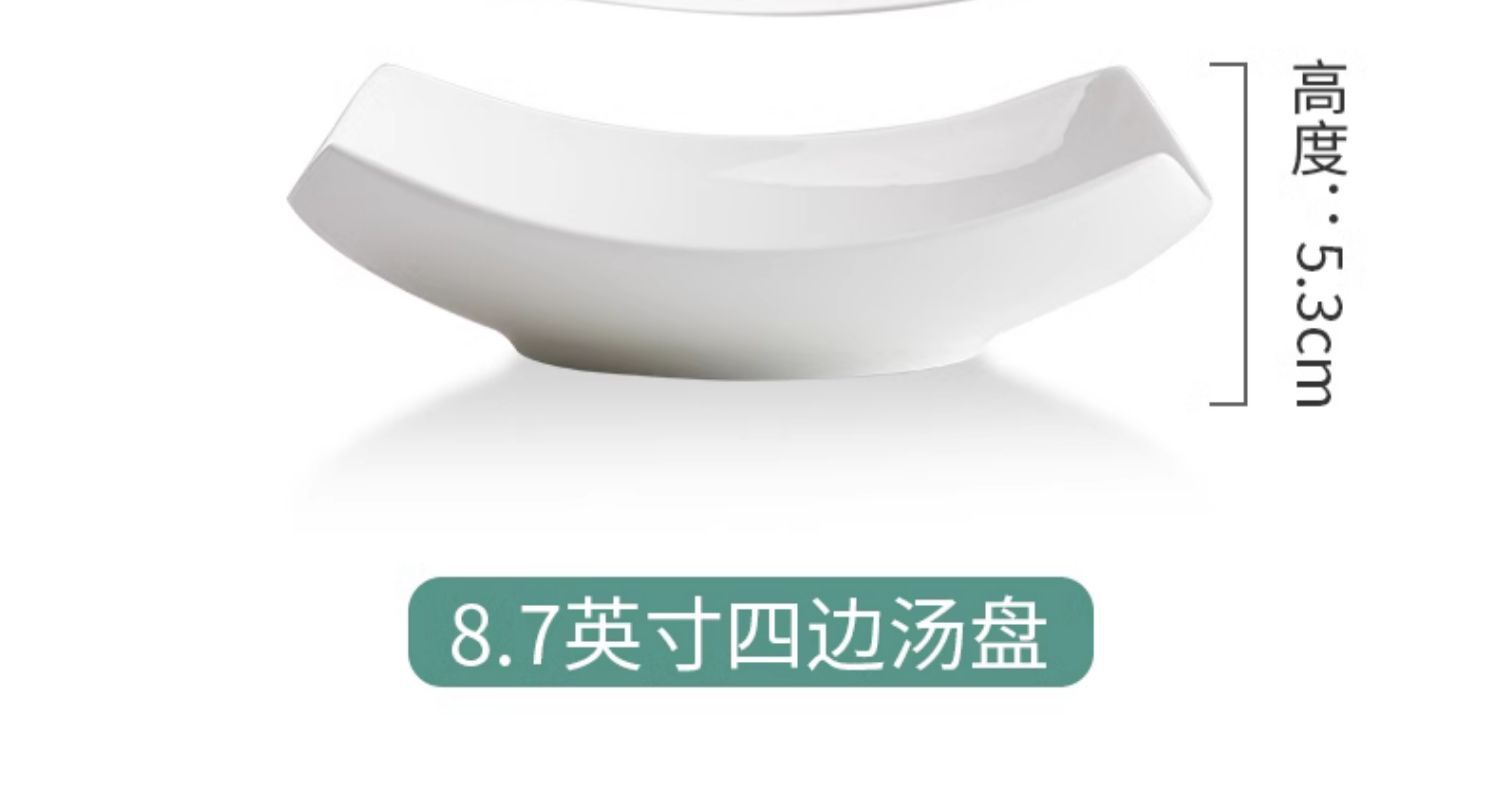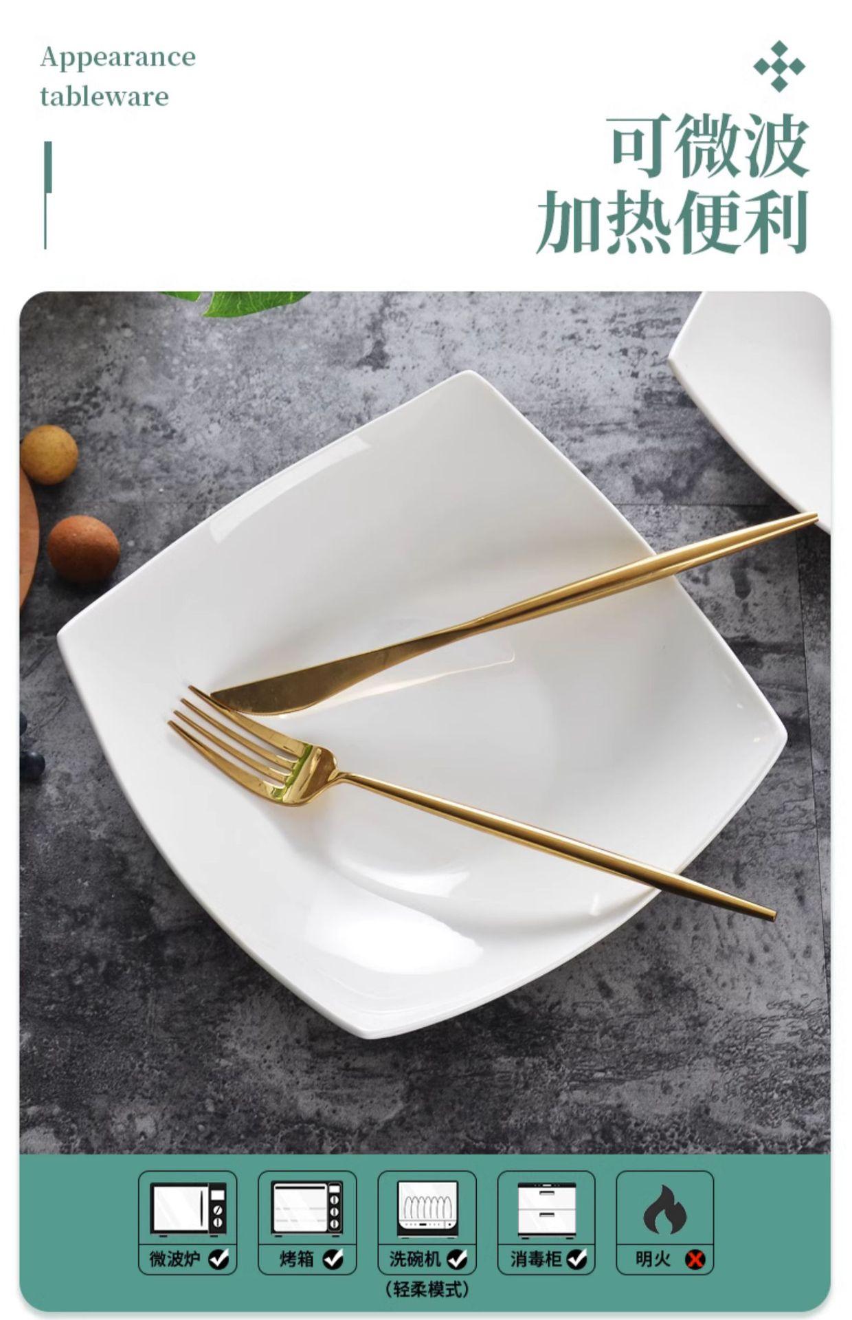 Plato Cuadrado Creativo de Porcelana Plato Blanco Puro Plato Cerámico Plato Hondo Plato Cuadrado para el Hogar 8 pulgadas Porcelana Fina Plato para Entremeses Fríos