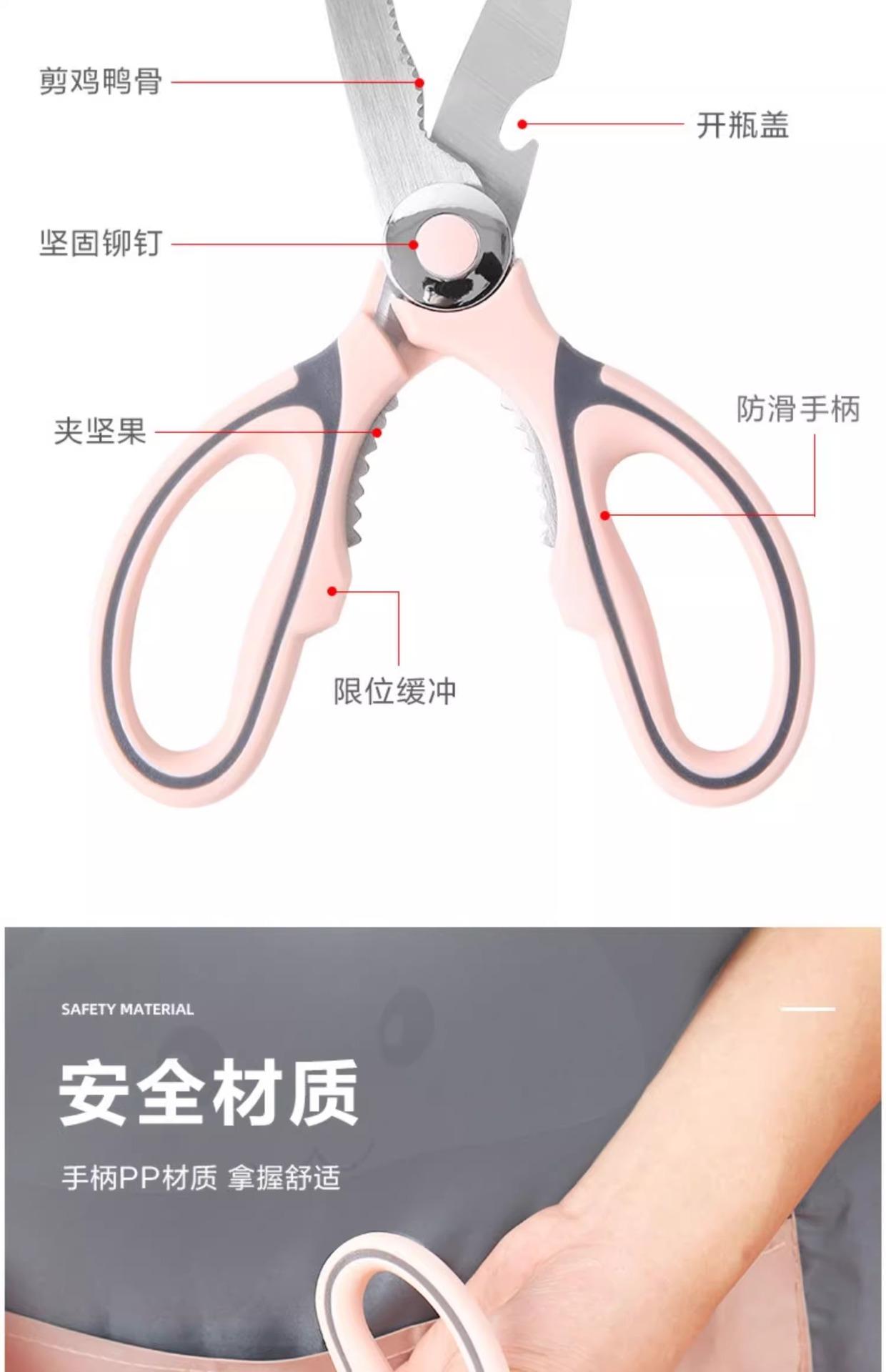 Tijeras de Cocina Multifuncionales de Acero Inoxidable Tijeras Engrosadas Hogar Rosado Panda Tijeras Poderosas para Huesos de Pollo Tijeras para Alimentos