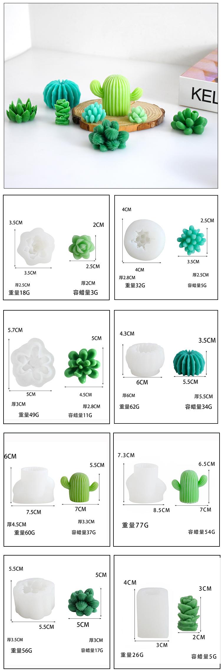 Molde de Silicona para Aromaterapia de Velas, Molde para Hacer Adornos de Aromaterapia de Yeso, Molde para Velas, Molde de Silicona para Cactus Suculento