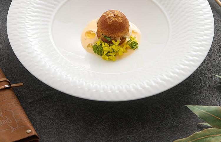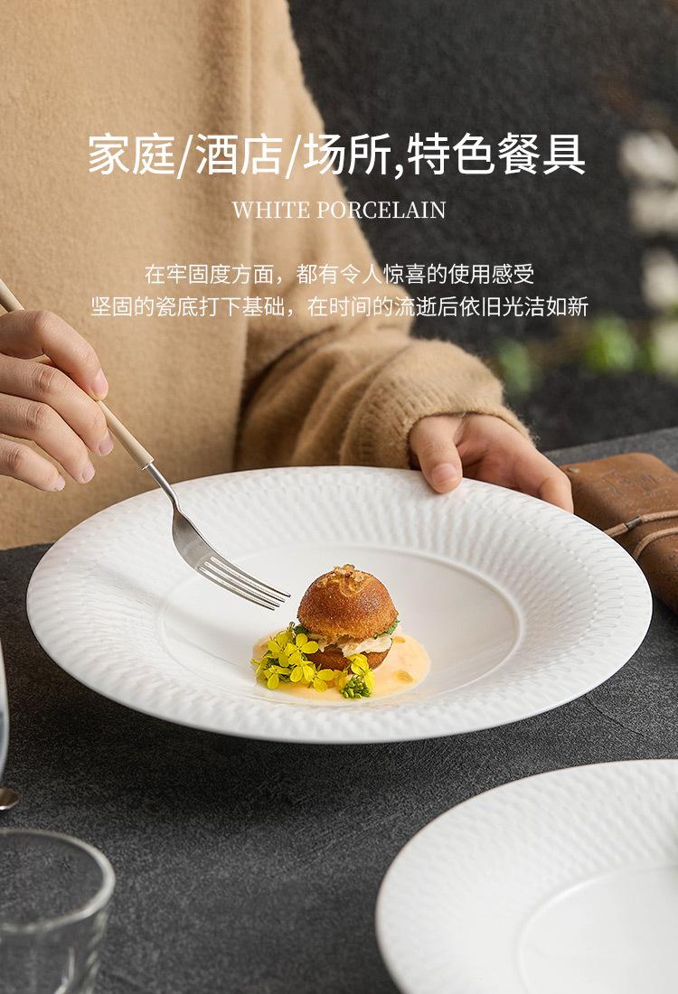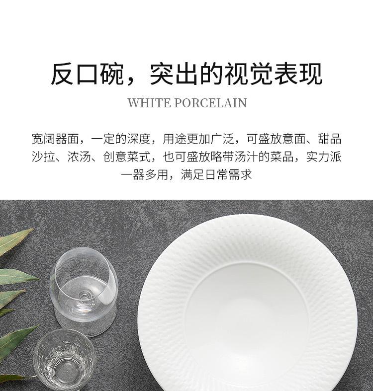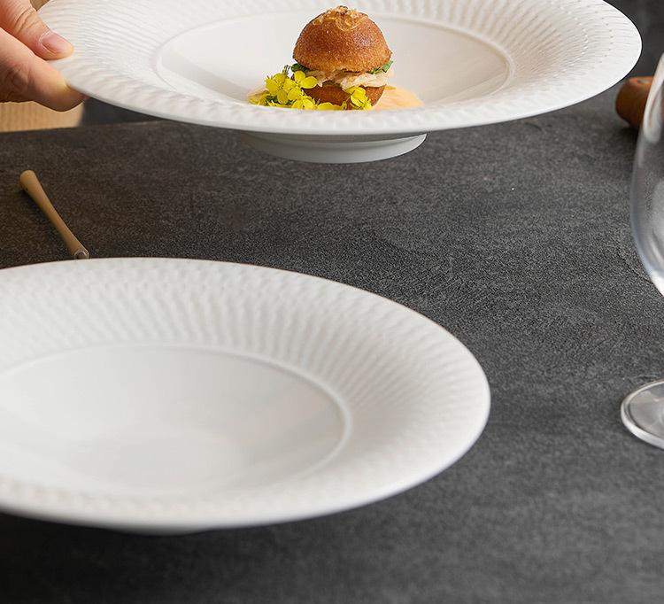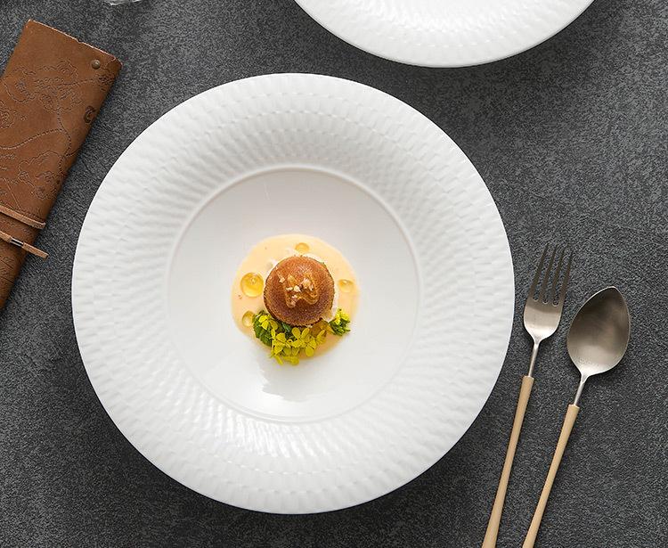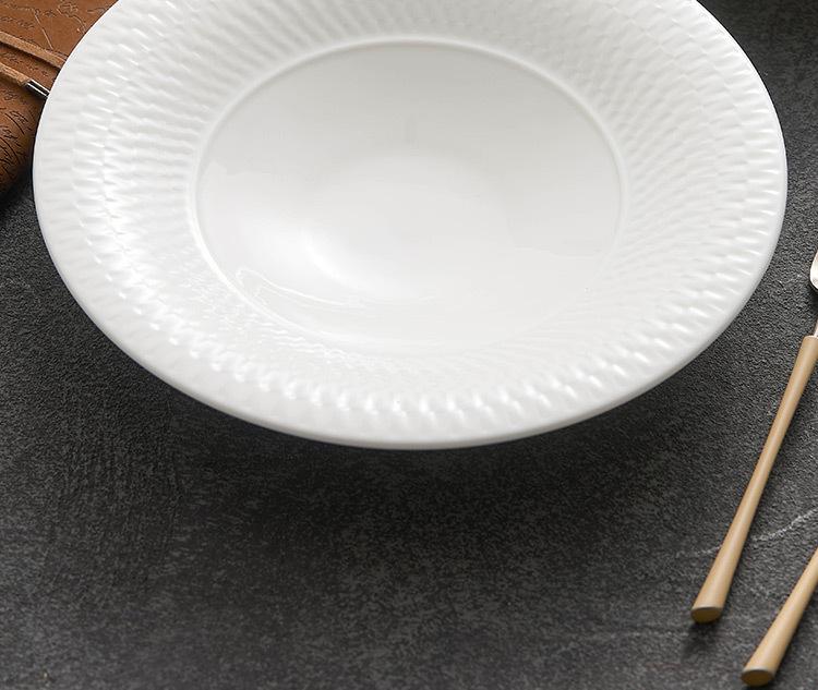 Plato de Pasta de Cerámica Plato de Sopa Vajilla de Hotel Hielo Porcelana Blanca de Alta Calidad Plato Creativo Plato para el Hogar Plato Redondo Tazón de Sopa Plato para Cena