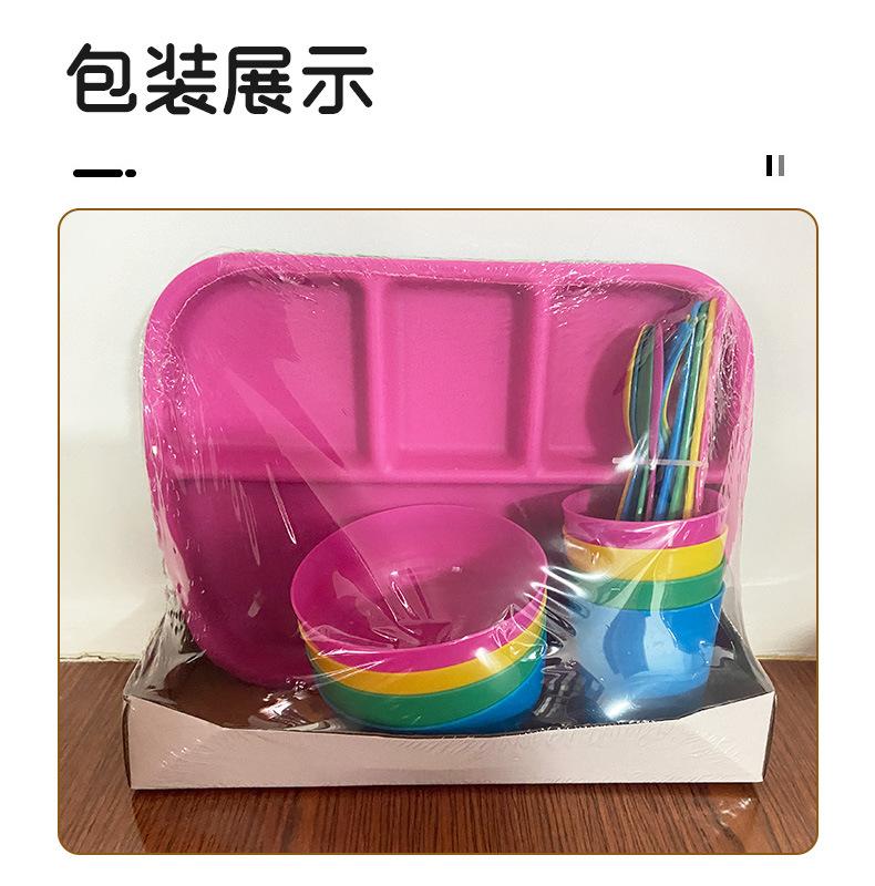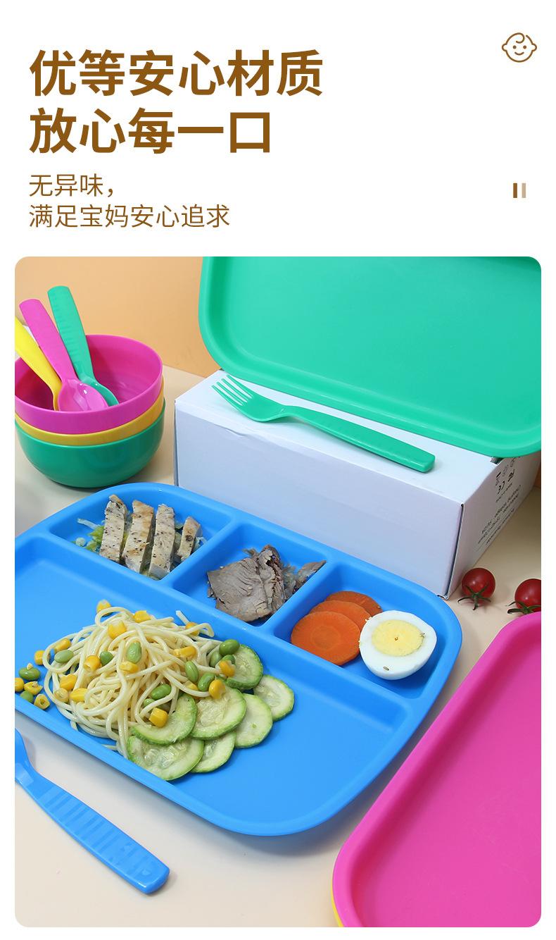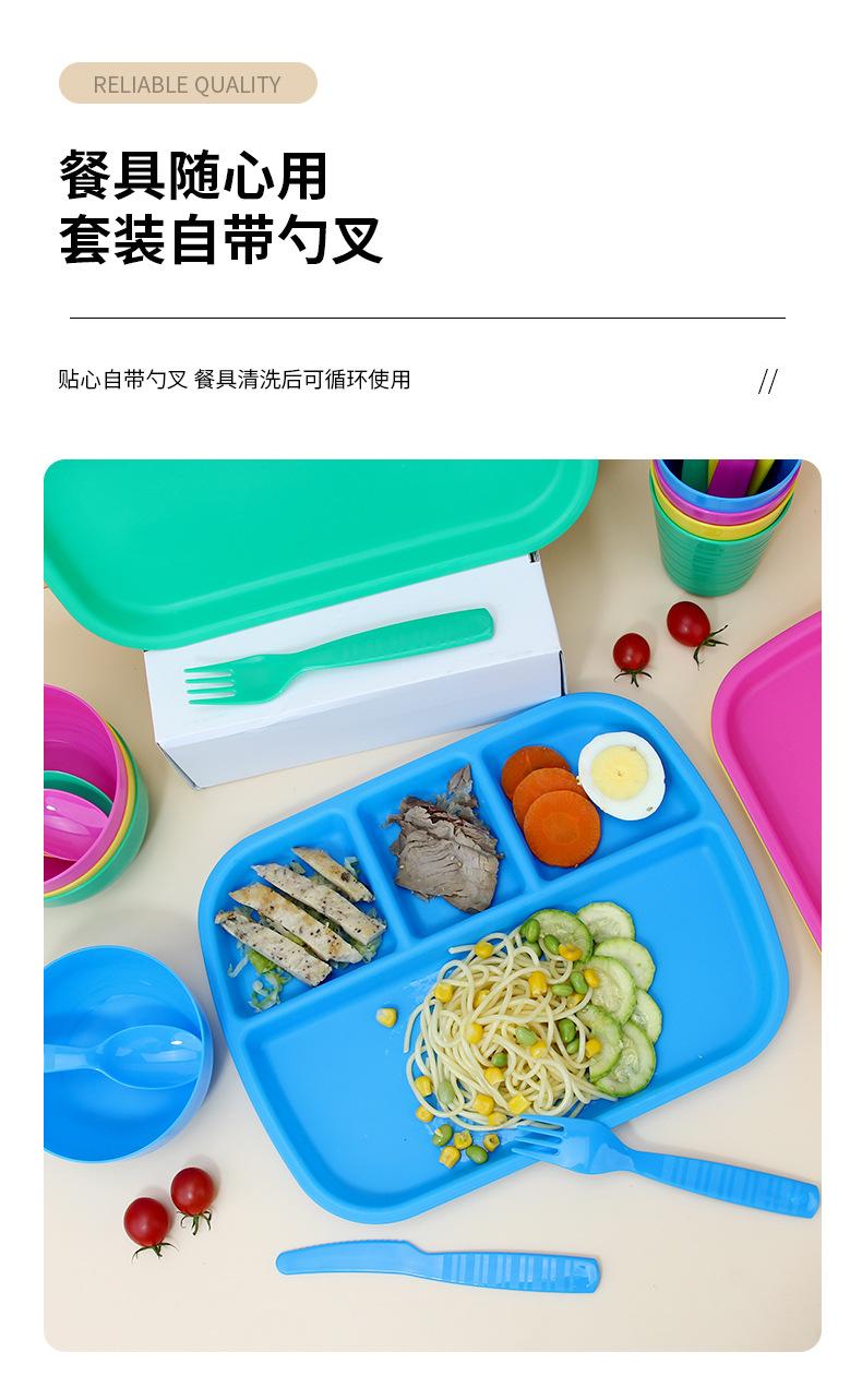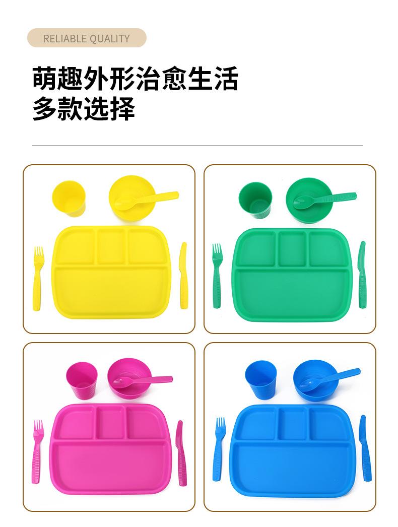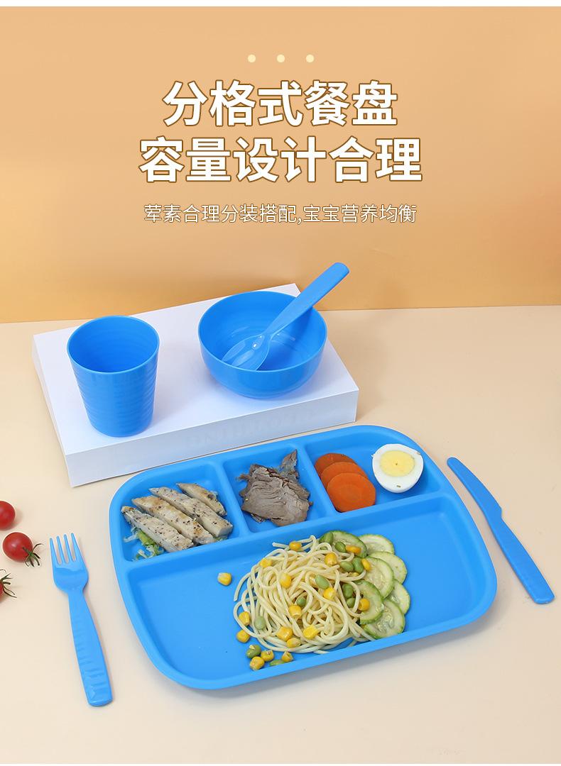 Juego de Vajilla para Niños, Taza, Tazón Pequeño, Cuchillo, Tenedor, Cuchara, Plato Dividido de Plástico, Juego de Plato para Suplemento Alimenticio Infantil