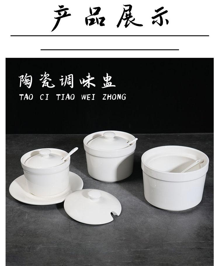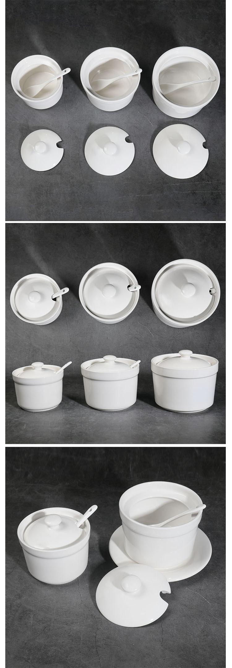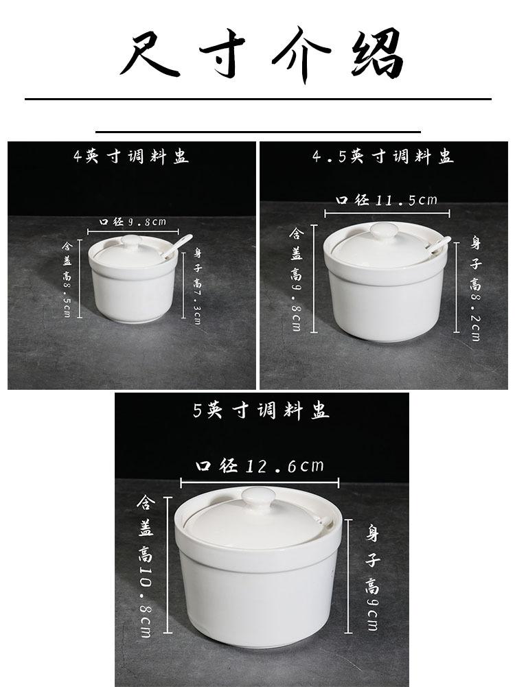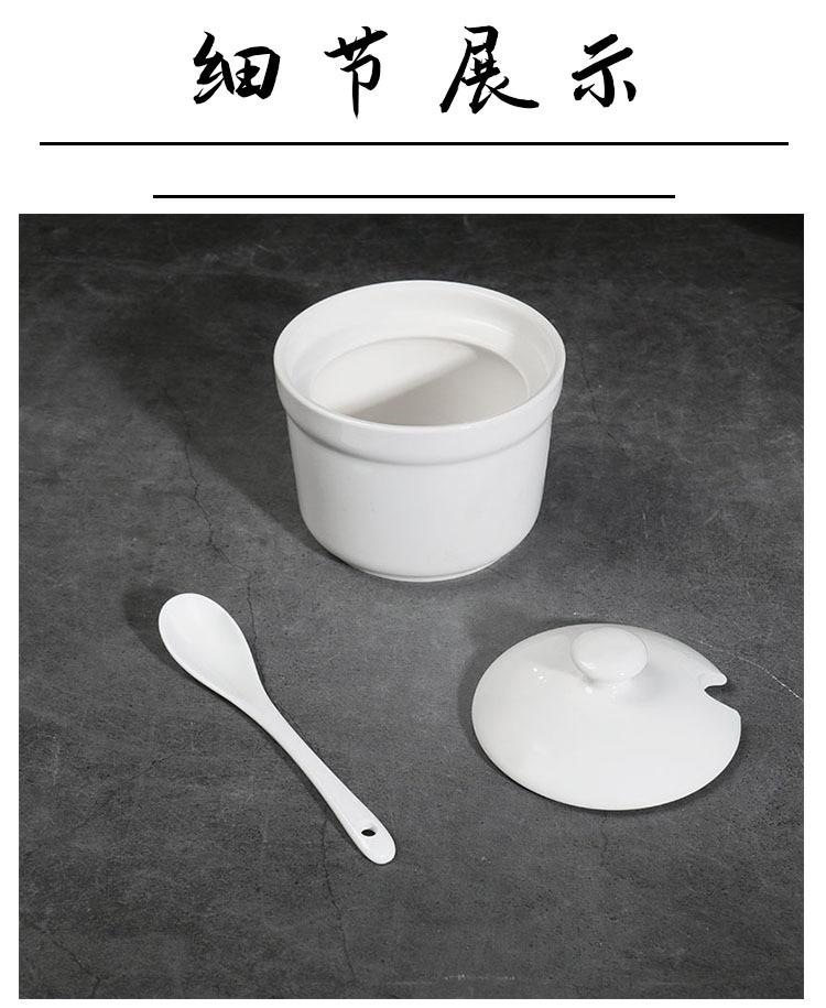 Tarro de Condimento de Cerámica Blanca Pura con Tapa Cuchara Condimento Restaurante MSG Sal Tarro de Chile Cocina Casera Creativo