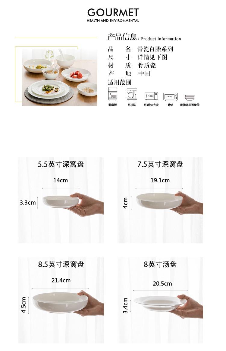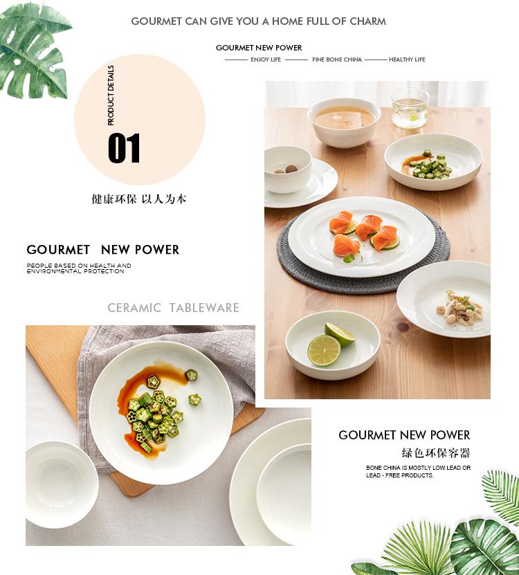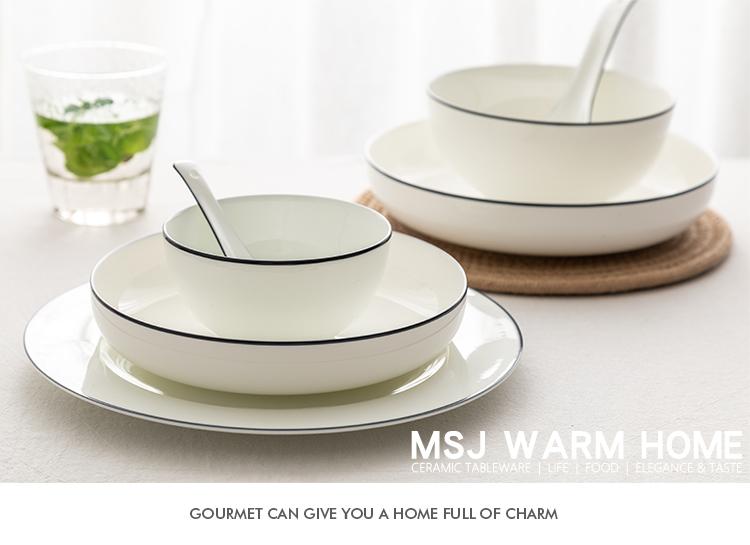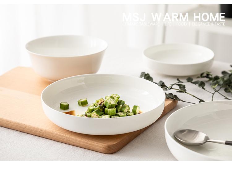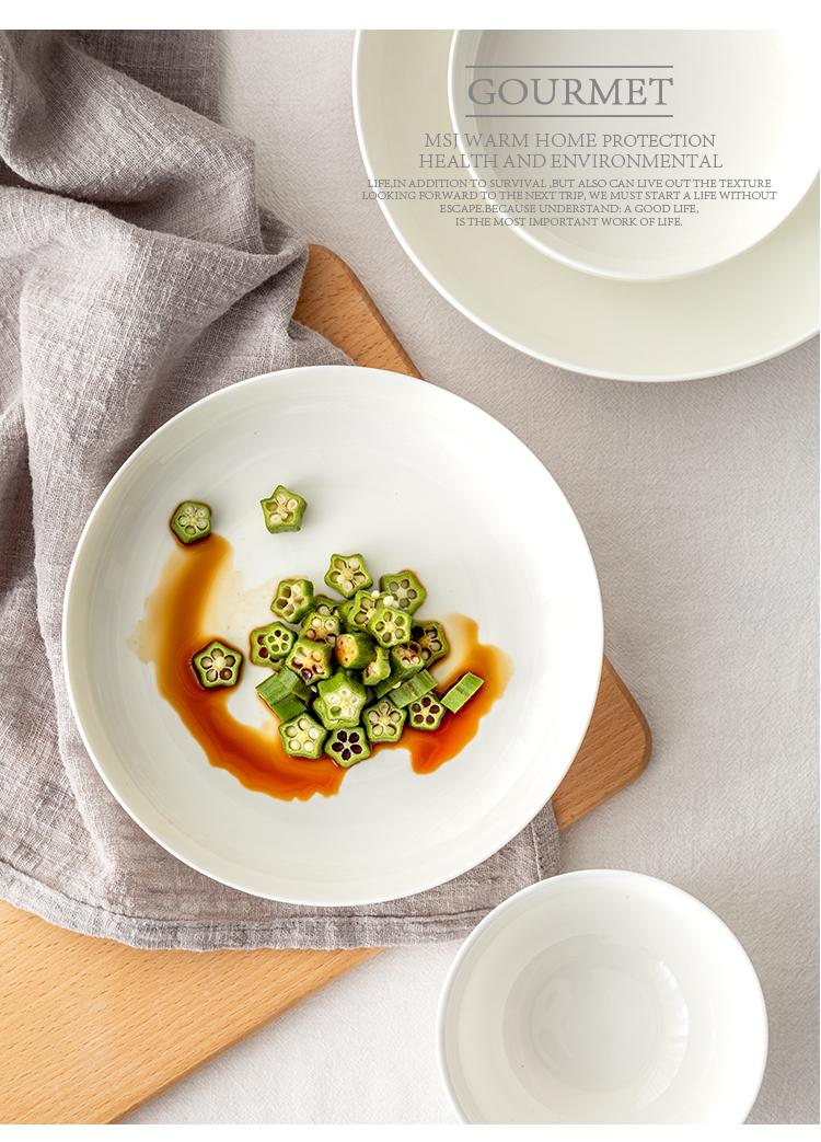 Plato Plato Hogar Cerámica Plato Hondo Blanco Puro Porcelana Fina Japonesa Color Bajo Cubierta Vajilla Plato de Sopa Juego de Cuencos Combinación