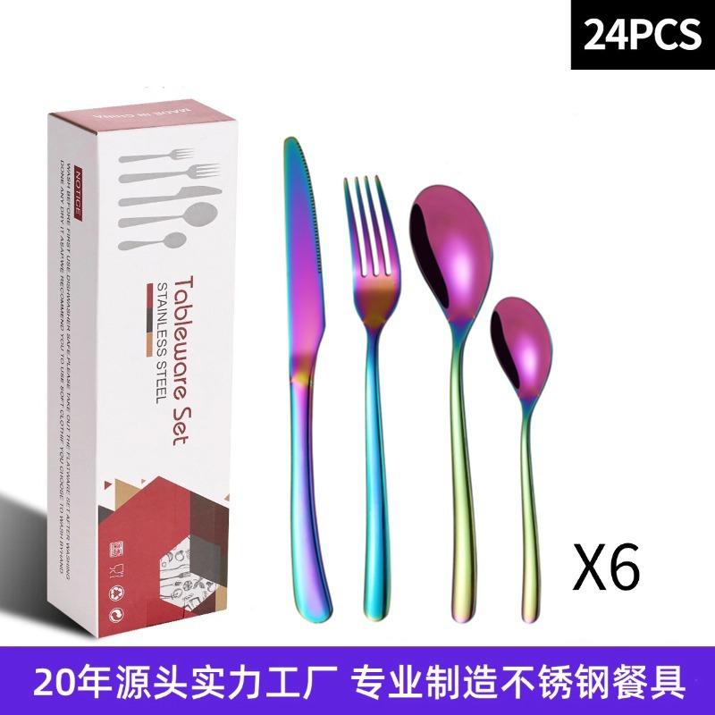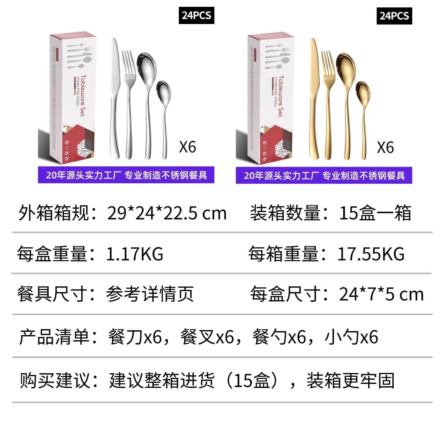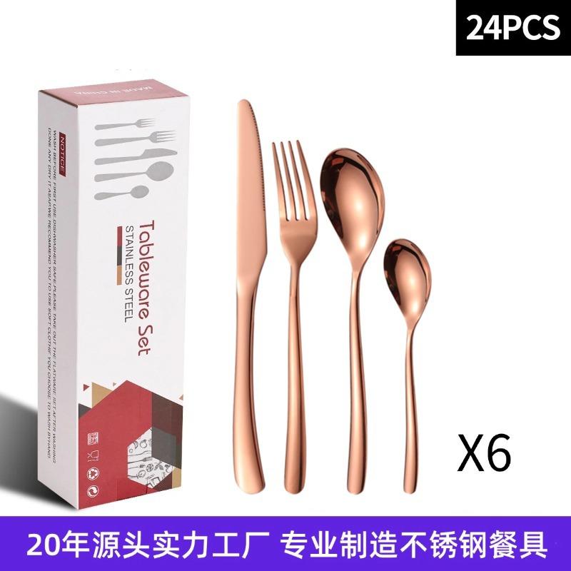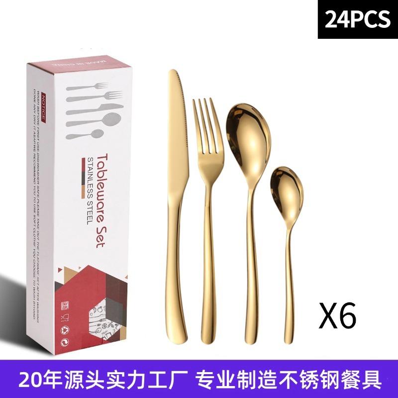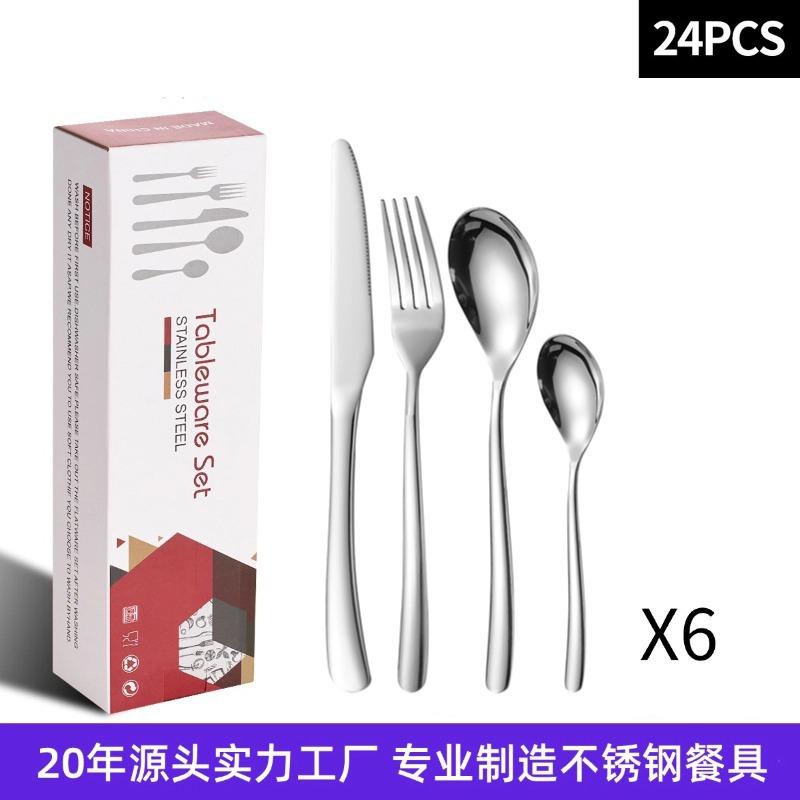Compra Amazon Vajilla de Acero Inoxidable 410 de Mango Puntiagudo Juego de 24 Piezas para 6 Personas Juego Occidental de Cuchillo y Tenedor para Bistec Cuchara de Postre al por mayor en Joom.pro