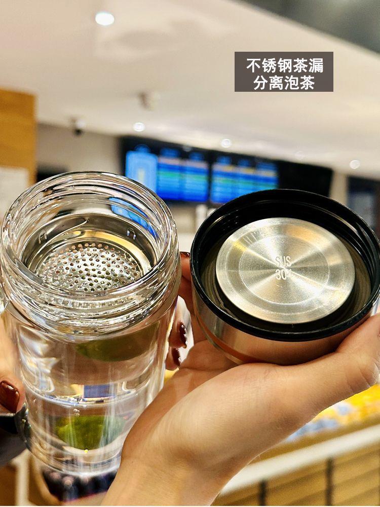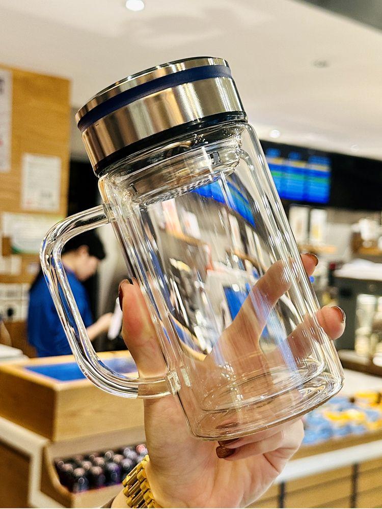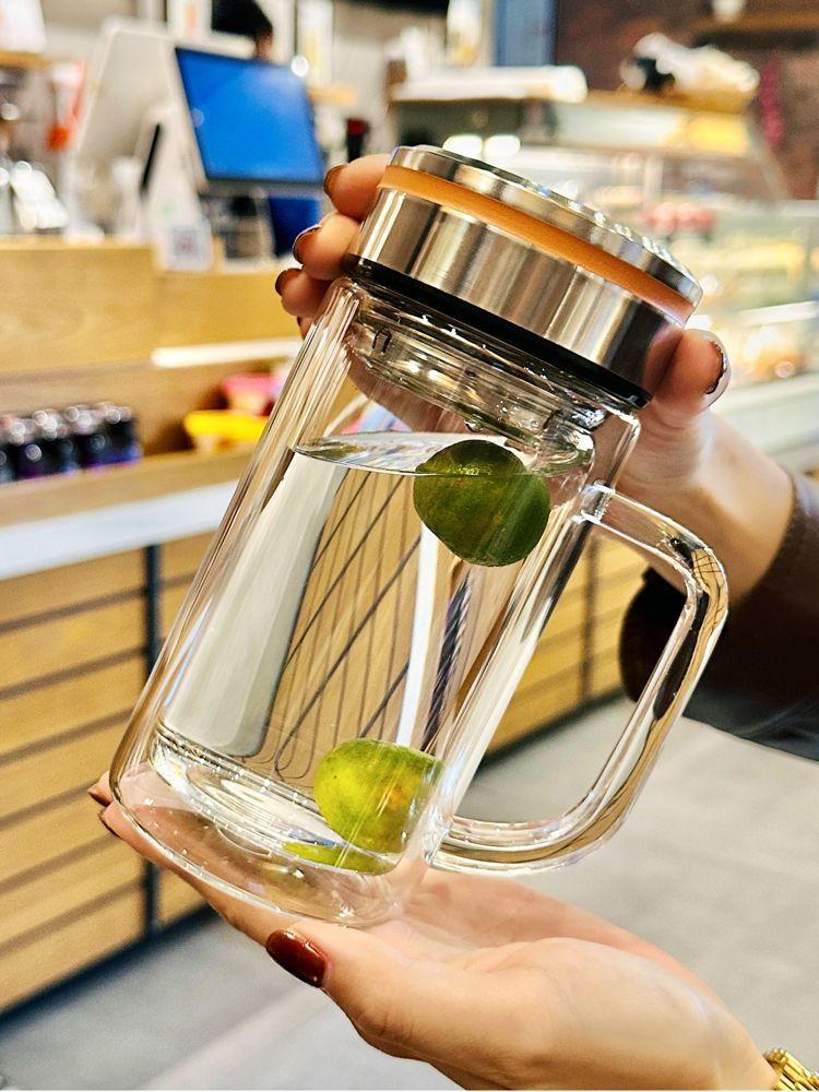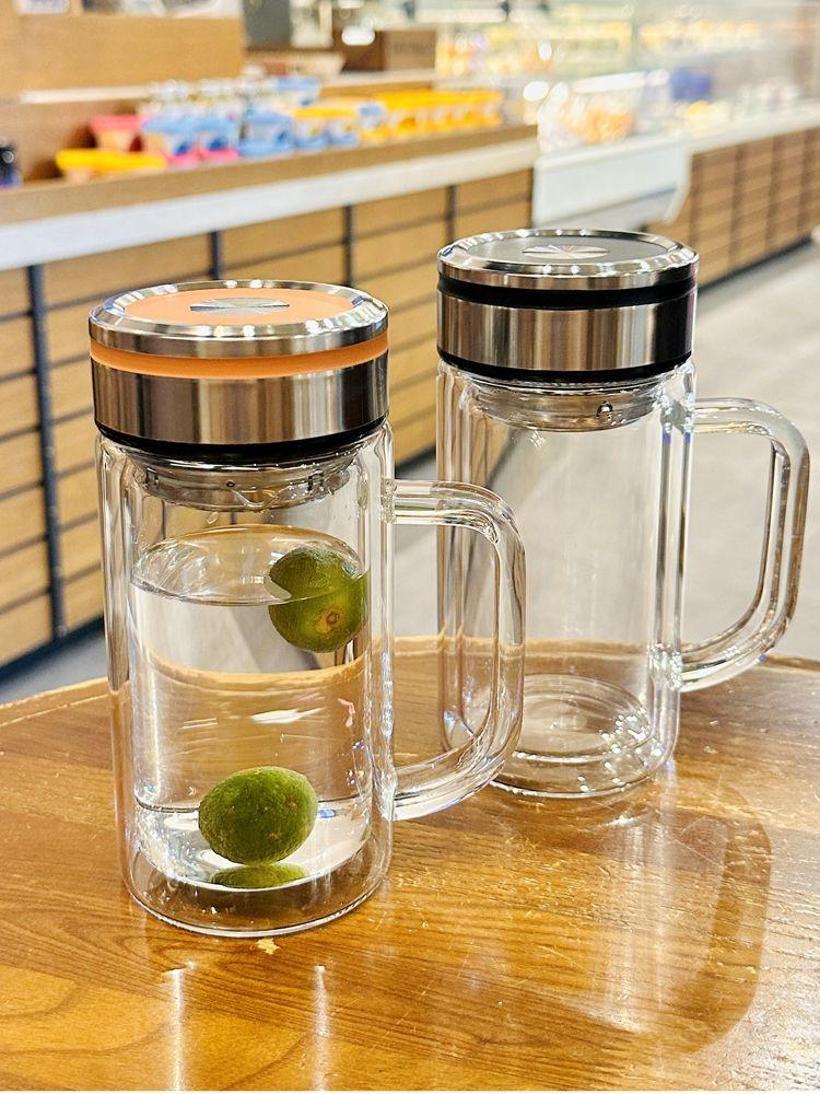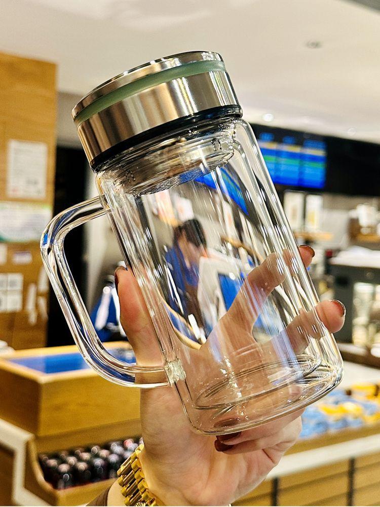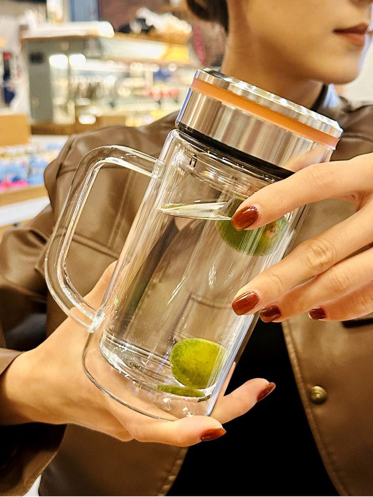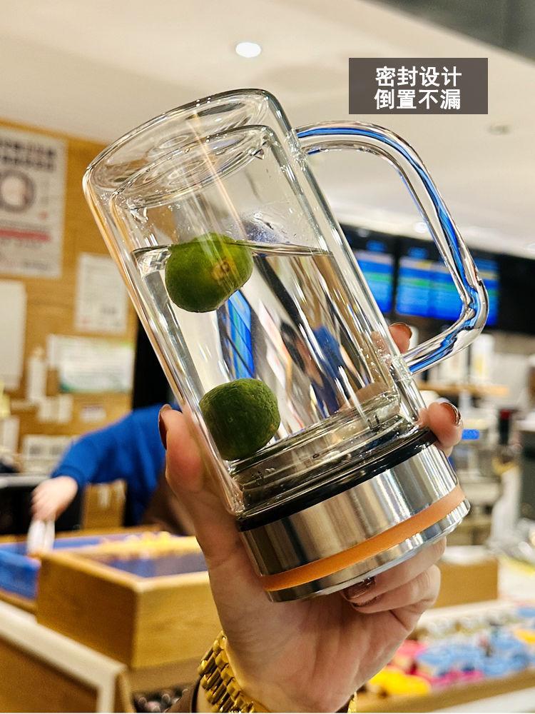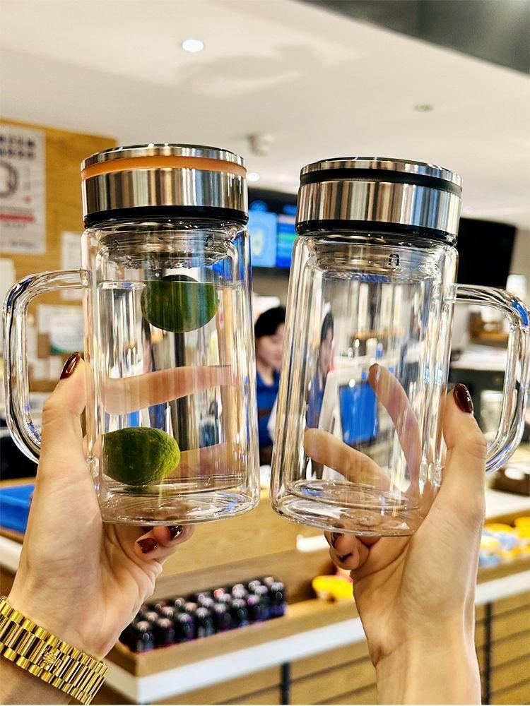 Vaso de Agua para Negocios para Hombre al por Mayor Vaso de Vidrio de Doble Capa de Alto Borosilicato con Asa Taza de Té con Separación de Agua para Oficina