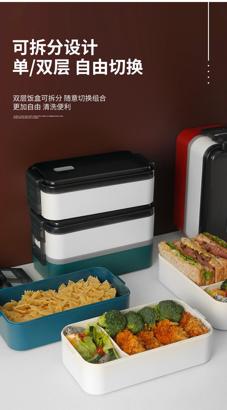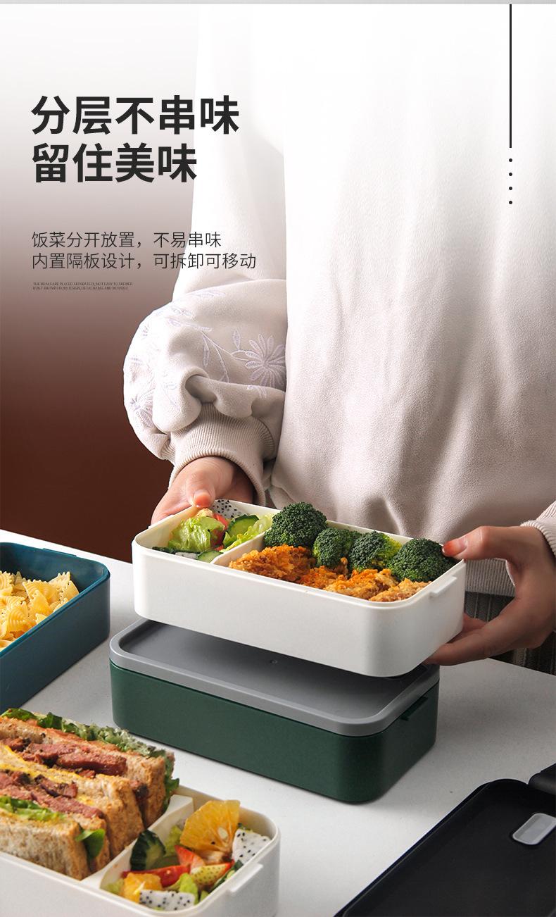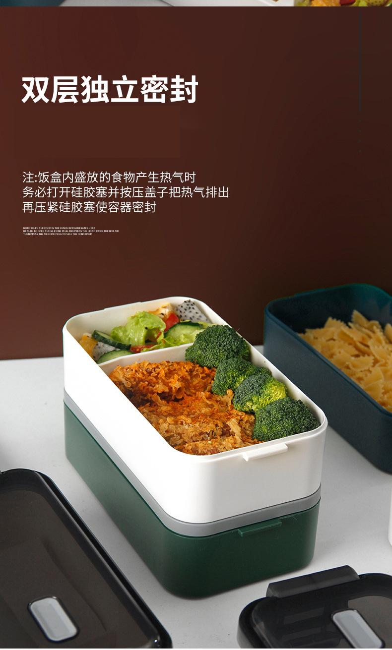 Lonchera sellada de doble capa para calentar en horno microondas, lonchera rectangular portátil para estudiantes, lonchera de plástico con aislamiento y arroz