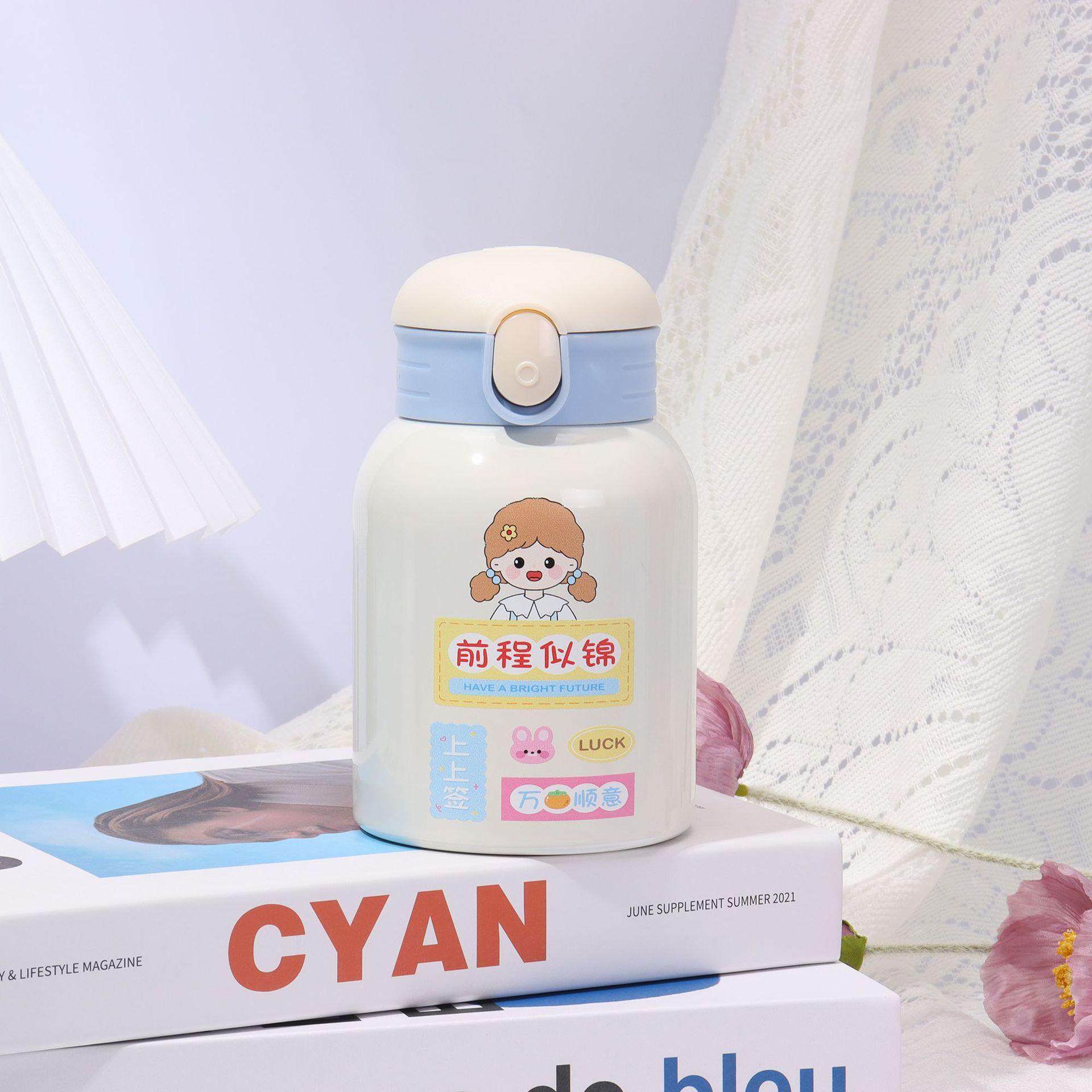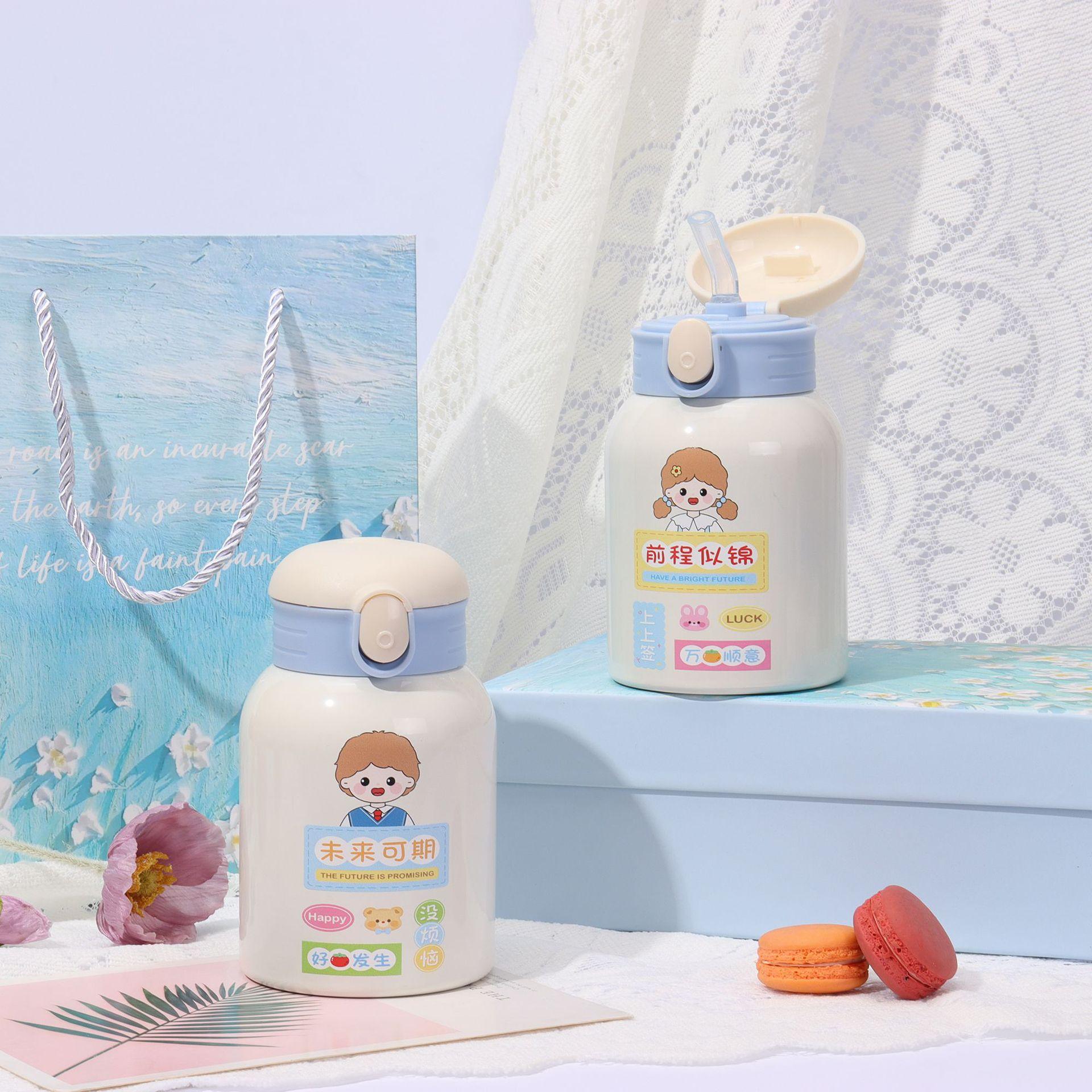 Nuevo Vaso Infantil de Acero Inoxidable 304 Aislado de Dibujos Animados para Estudiantes, Portátil para Exteriores, con Pajita Rebotante, Vaso de Agua, Regalo, Venta al por Mayor