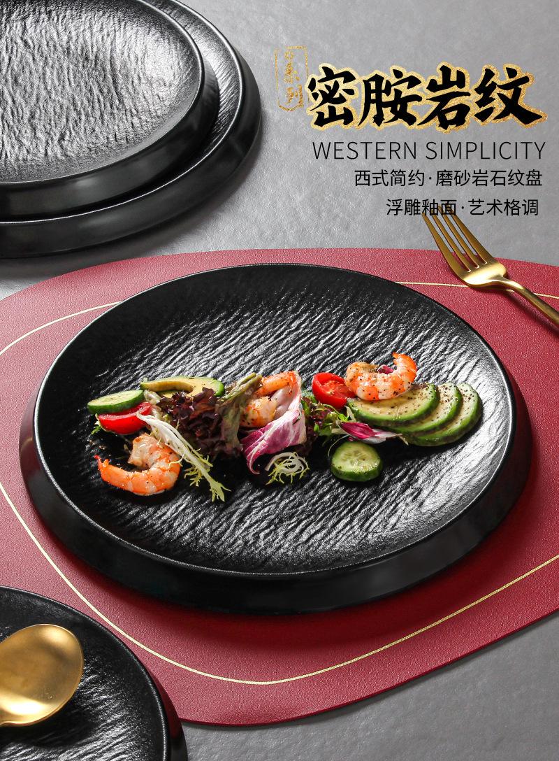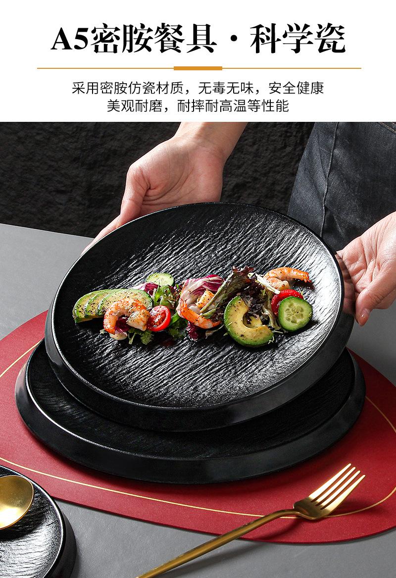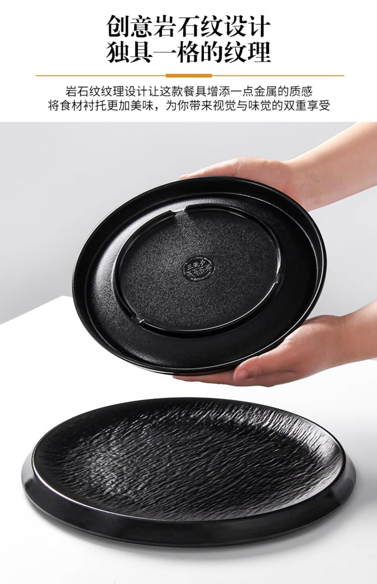 Vajilla de melamina Xiangyuan, plato ligero de lujo de alta gama, plato de carne de estilo occidental, plato de pasta con patrón de roca esmerilada para restaurante