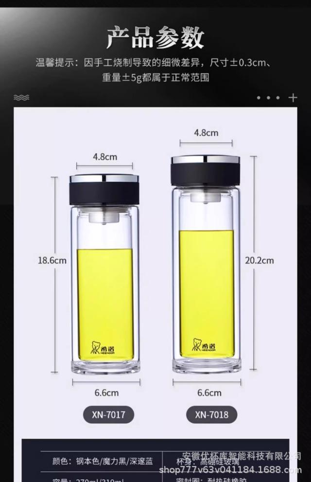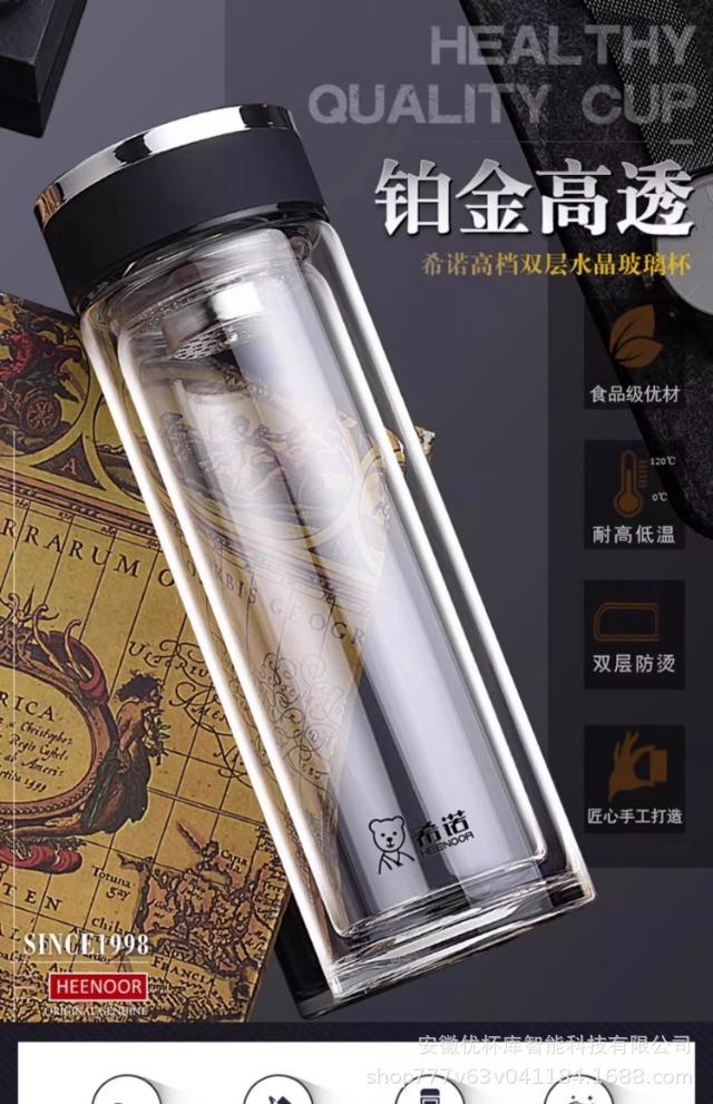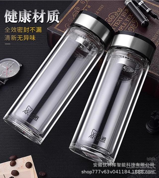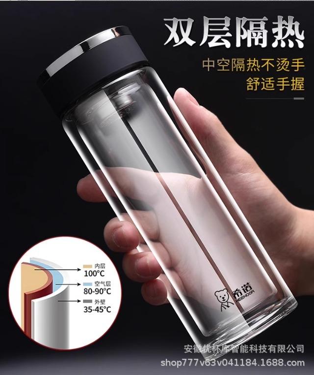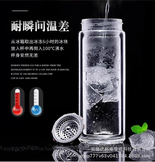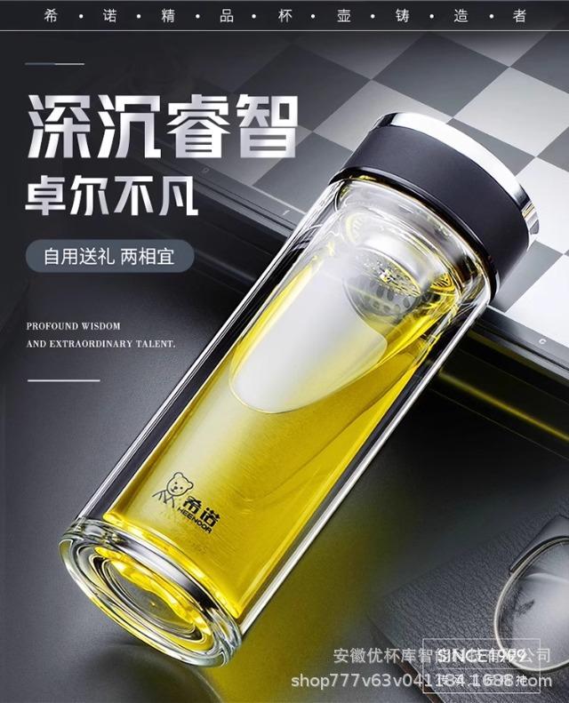 Taza de Té de Oficina Xino 7717-8 de Vidrio de Doble Capa de Gran Capacidad con Filtro, Resistencia a Altas Temperaturas, Engrosada y Portátil para Uso Doméstico