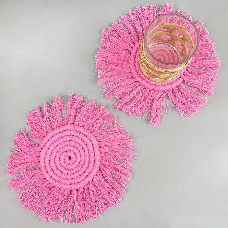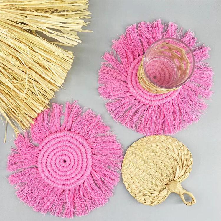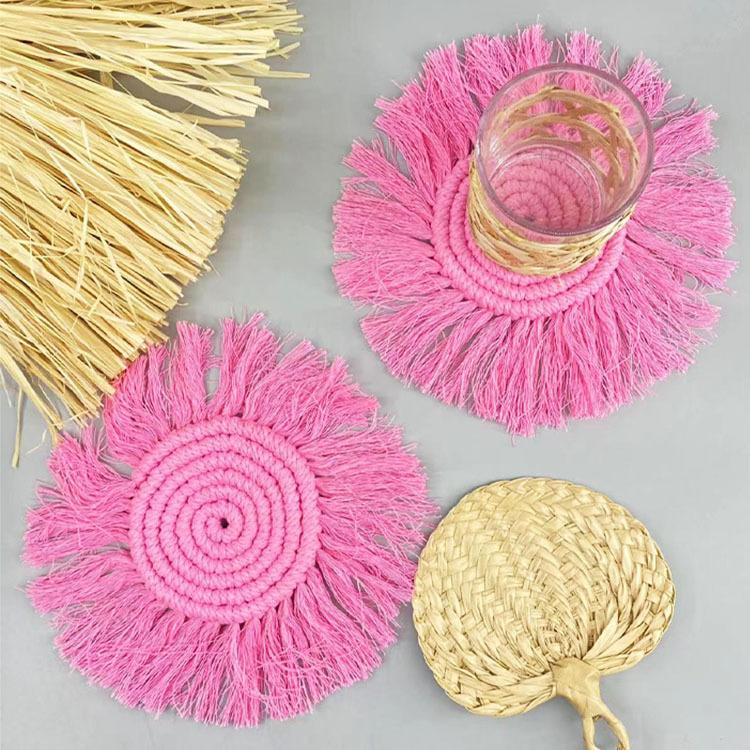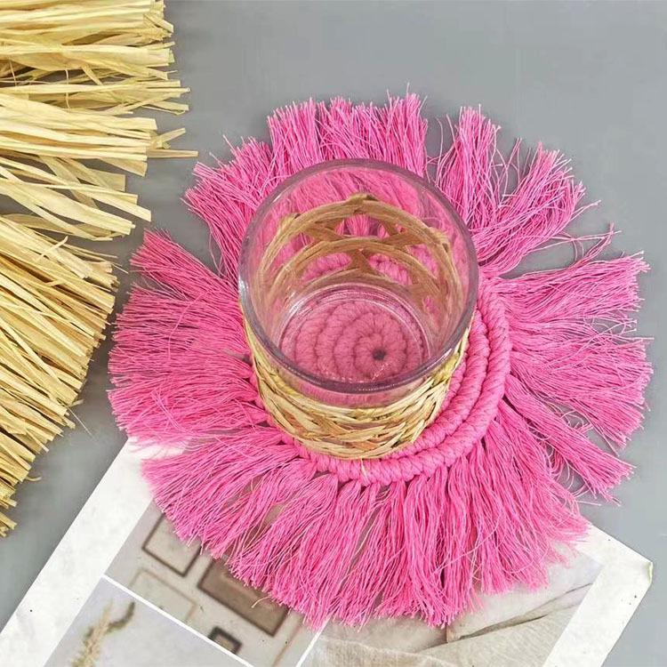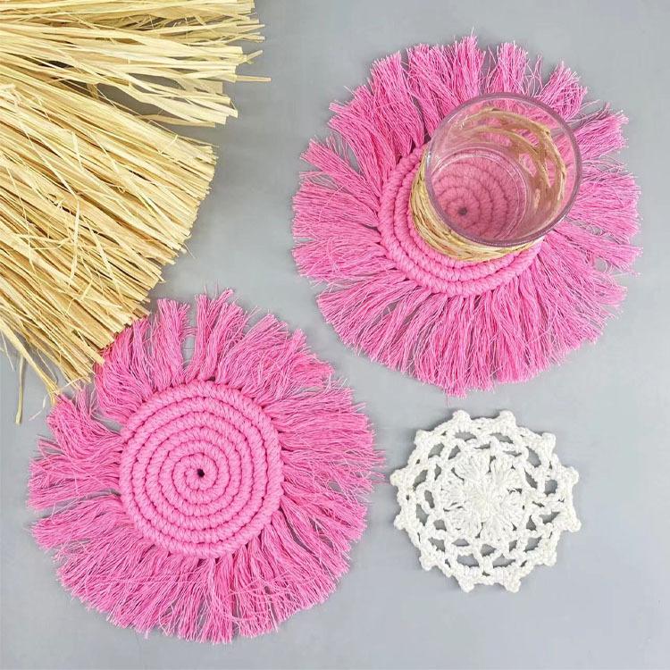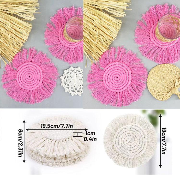 Posavasos tejido a mano puro transfronterizo, borla, individual, posavasos Bohemia, foto INS, decoración de cuerda de algodón