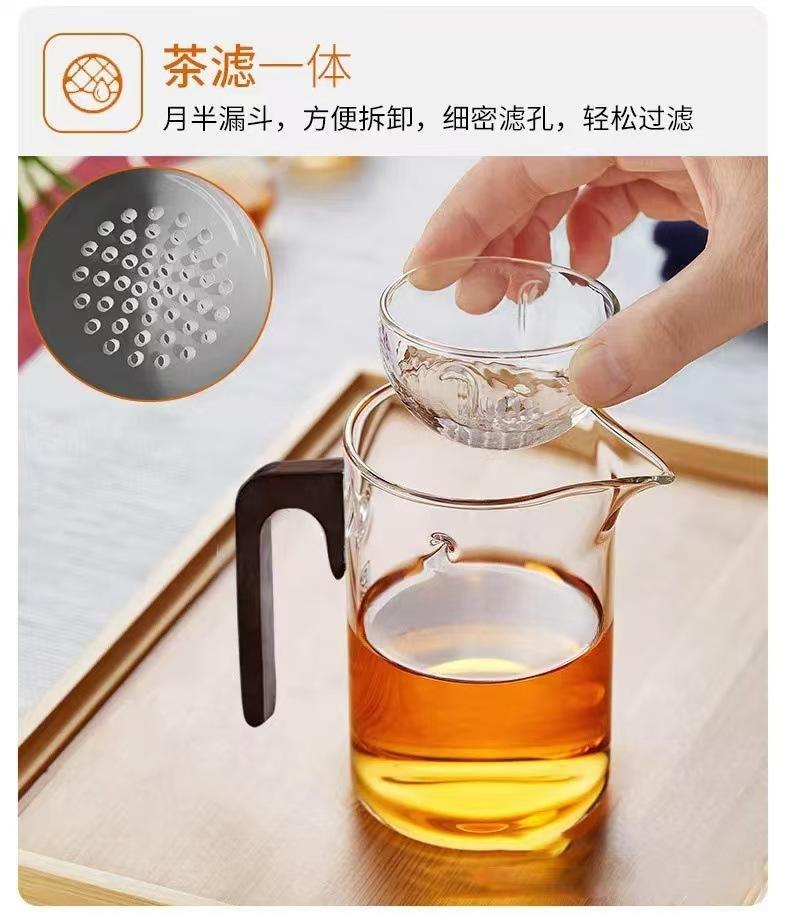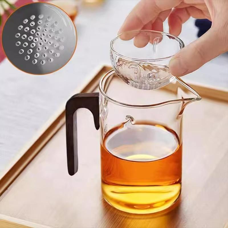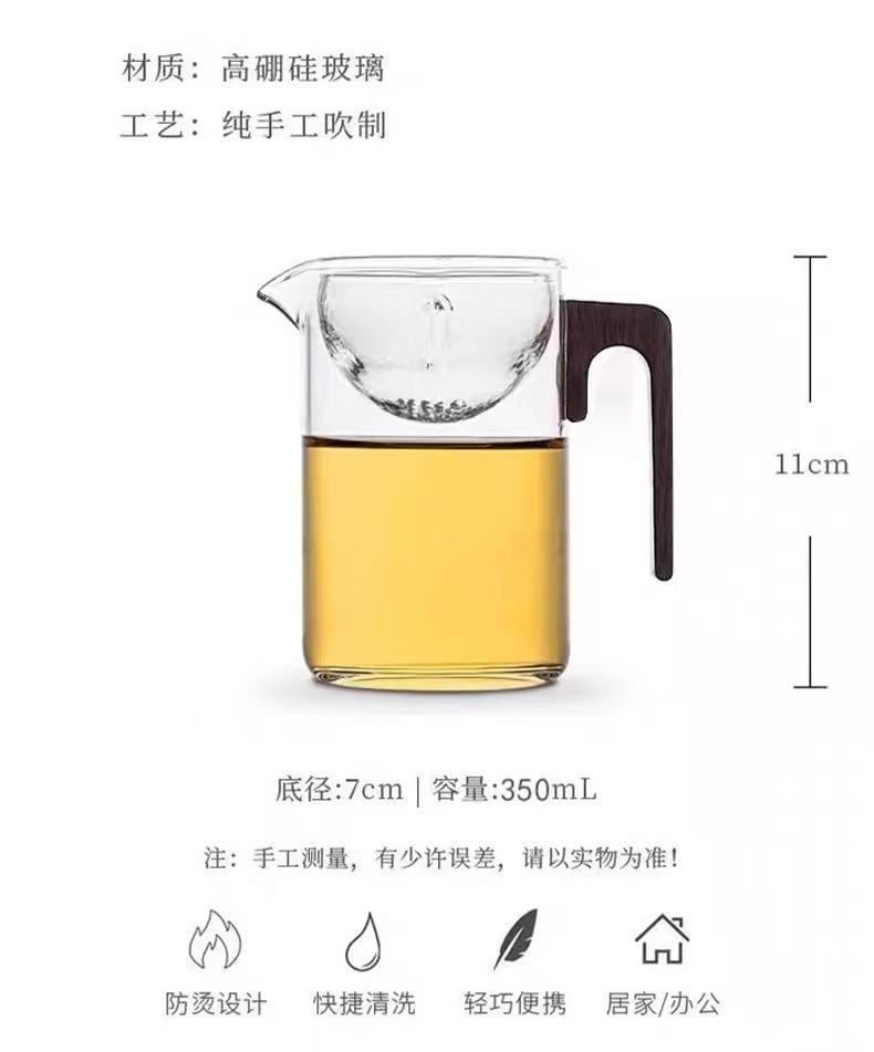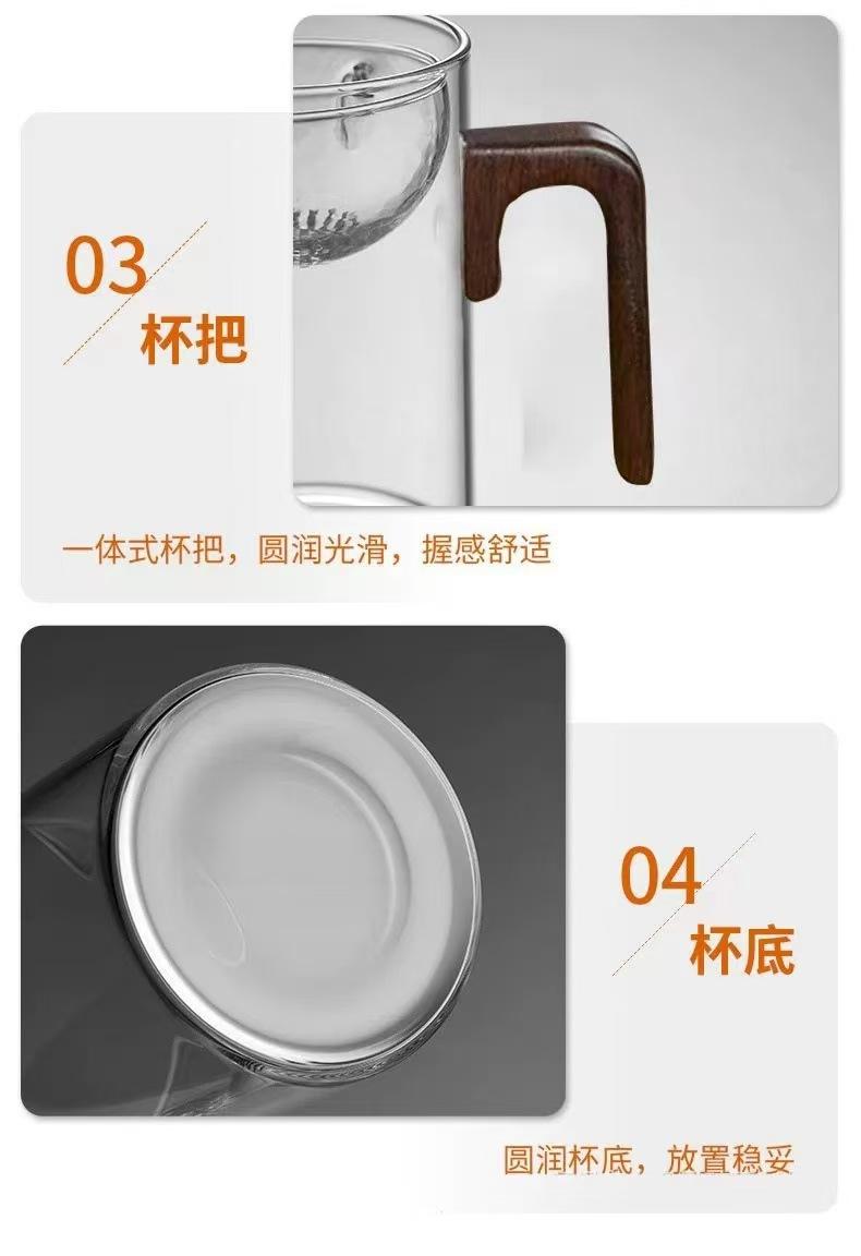 Taza macho giratoria mango de madera vidrio transparente de borosilicato alto filtro de té dispensador de té integrado té verde xiaoqing naranja pu'er taza justa