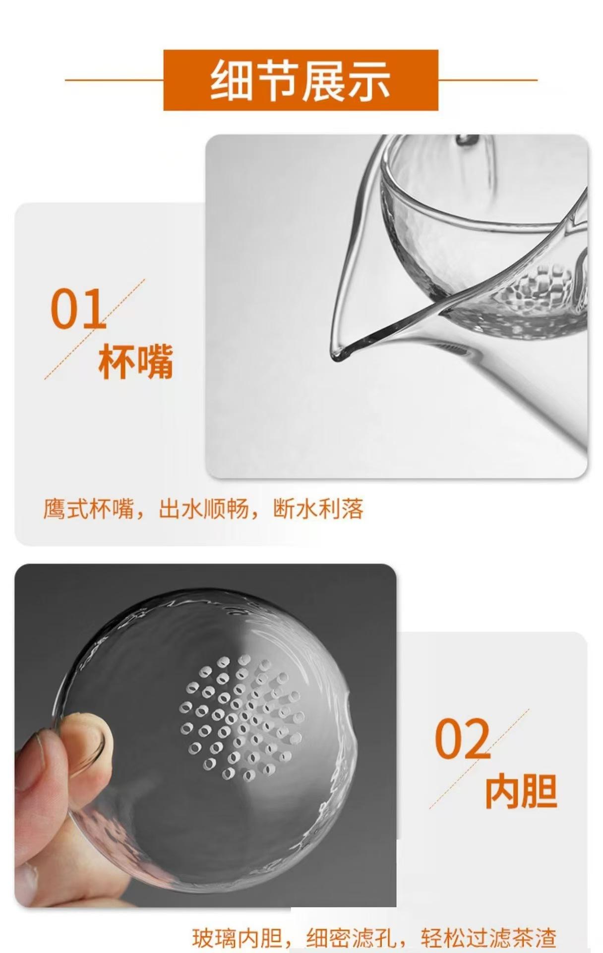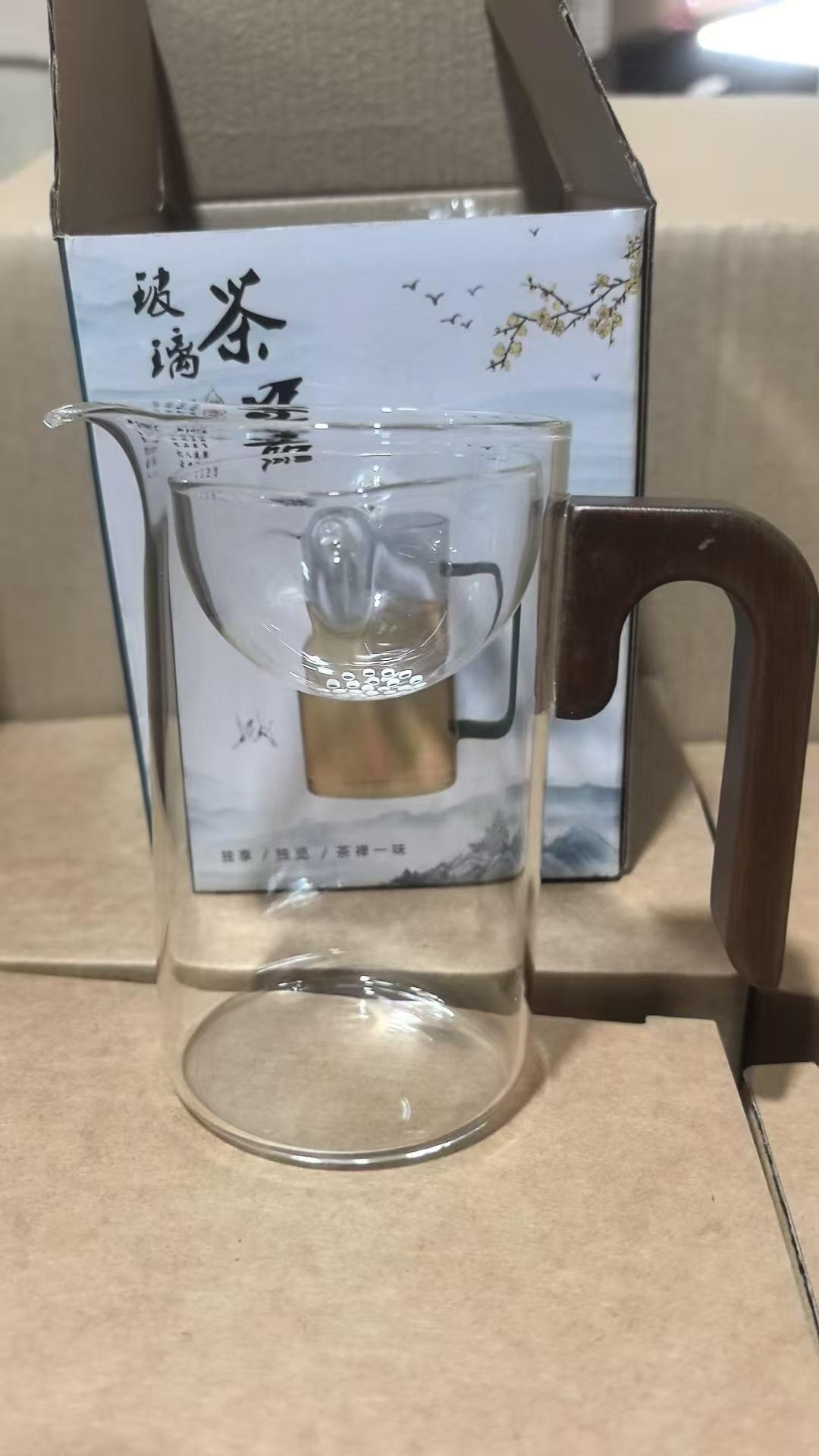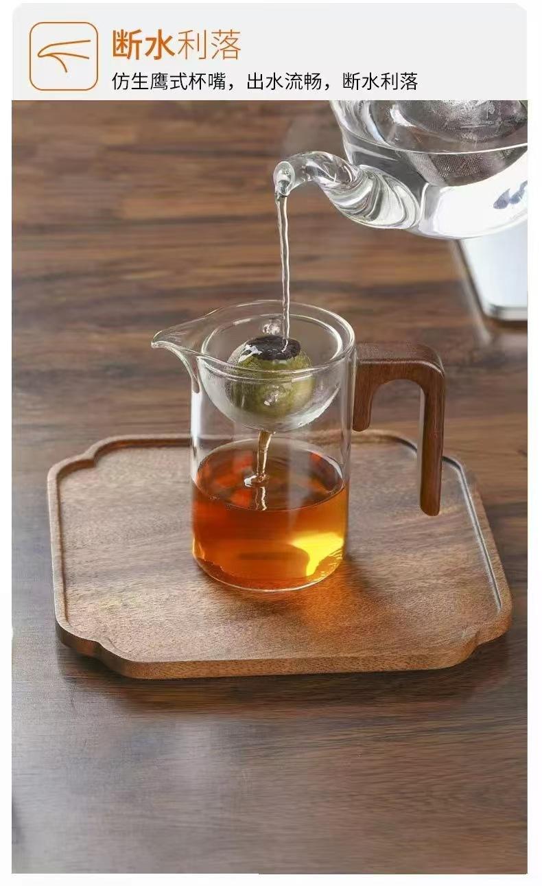 Taza macho giratoria mango de madera vidrio transparente de borosilicato alto filtro de té dispensador de té integrado té verde xiaoqing naranja pu'er taza justa