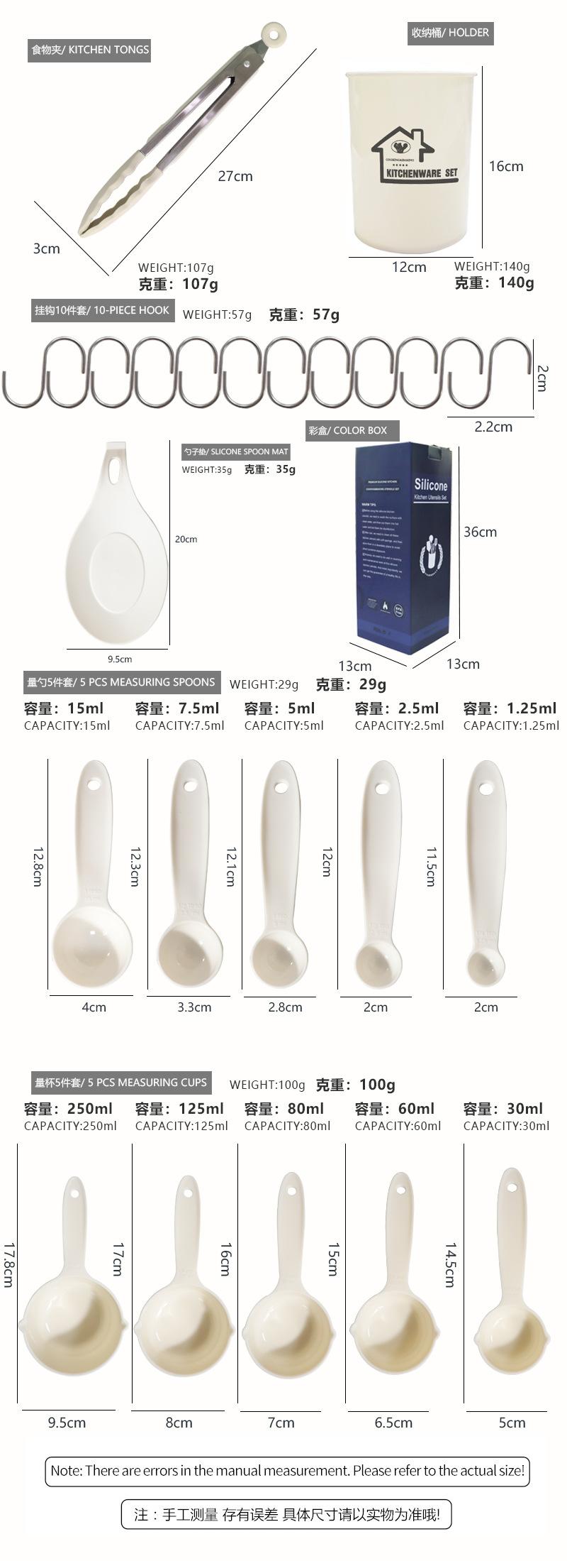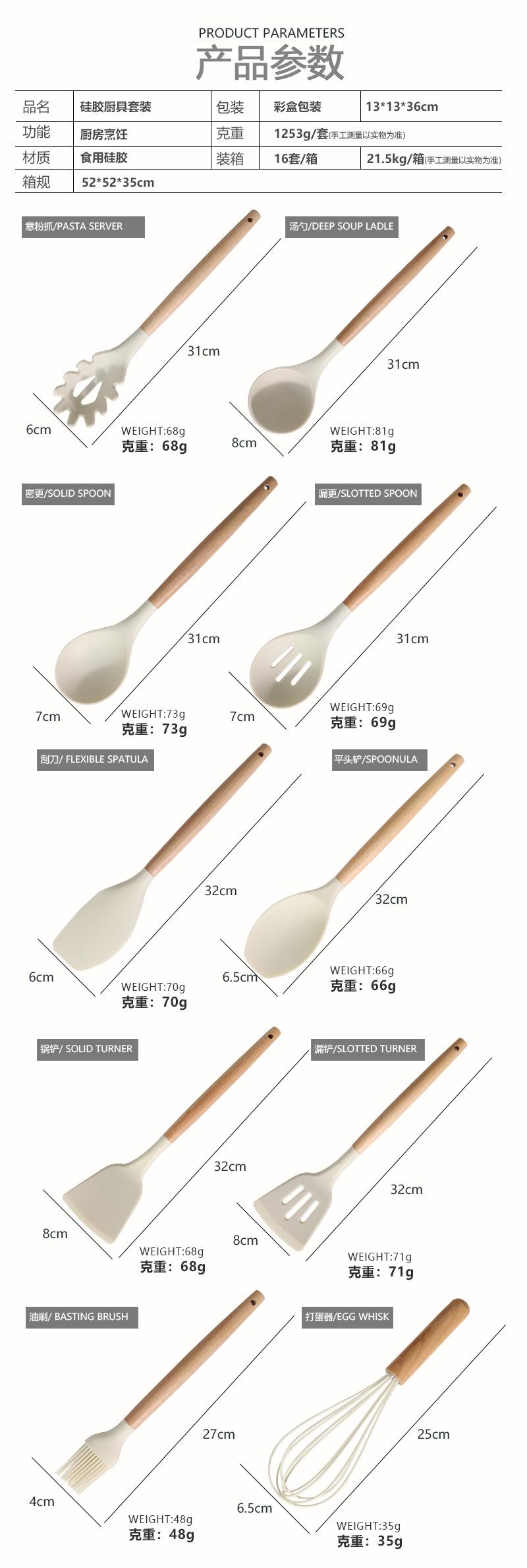 Silicone kitchenware set with wooden handle 33 pieces, Silicone kitchenware set with wooden handles 28 pieces
