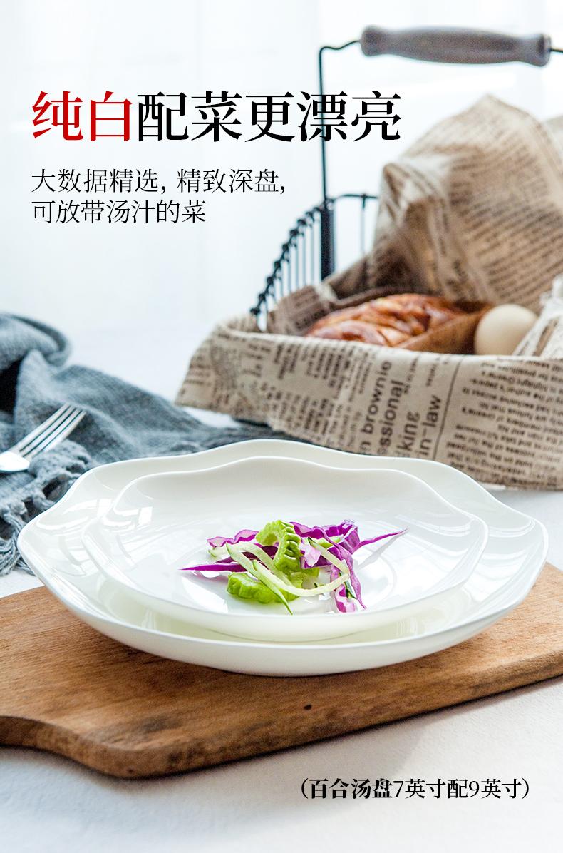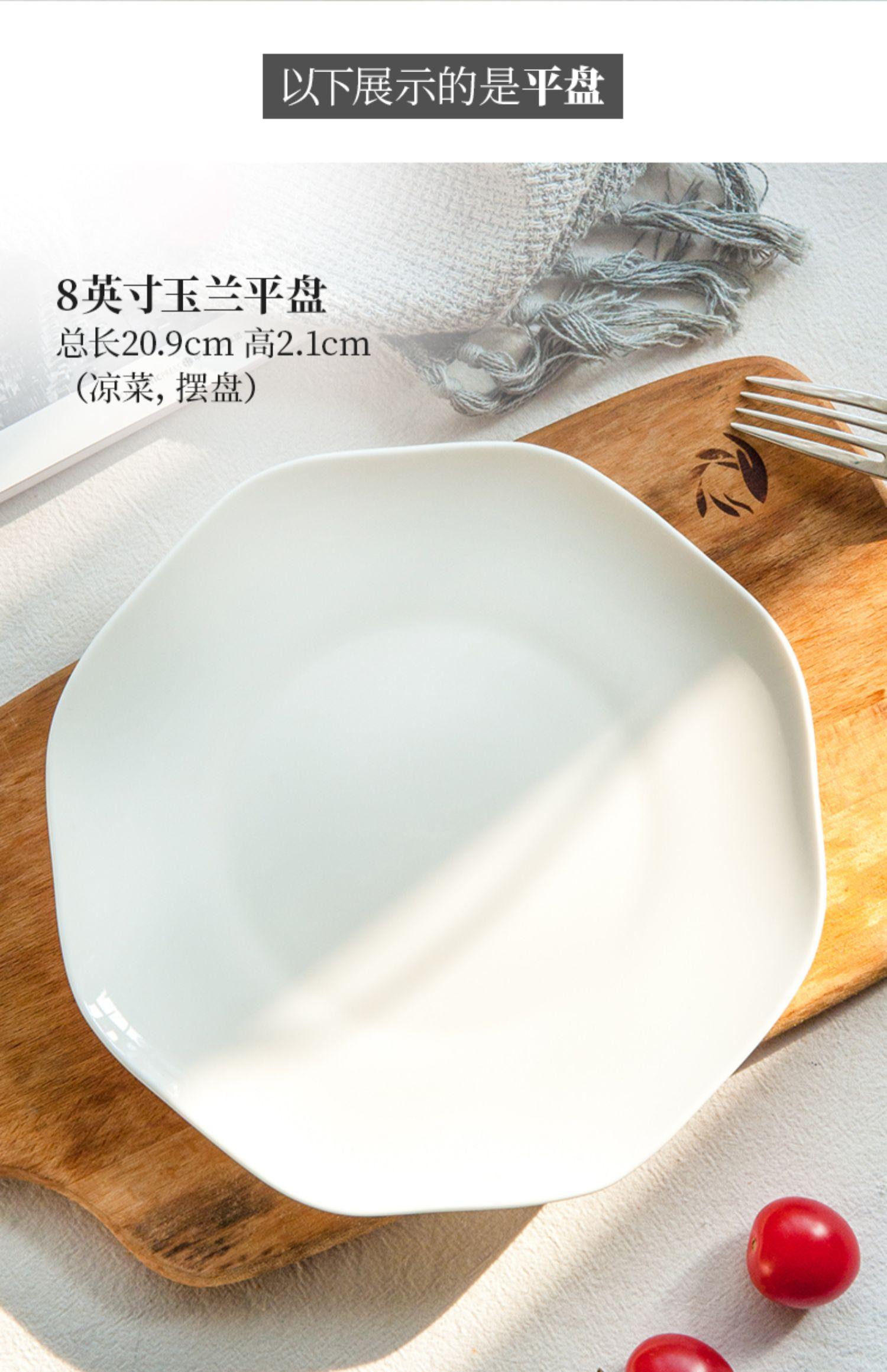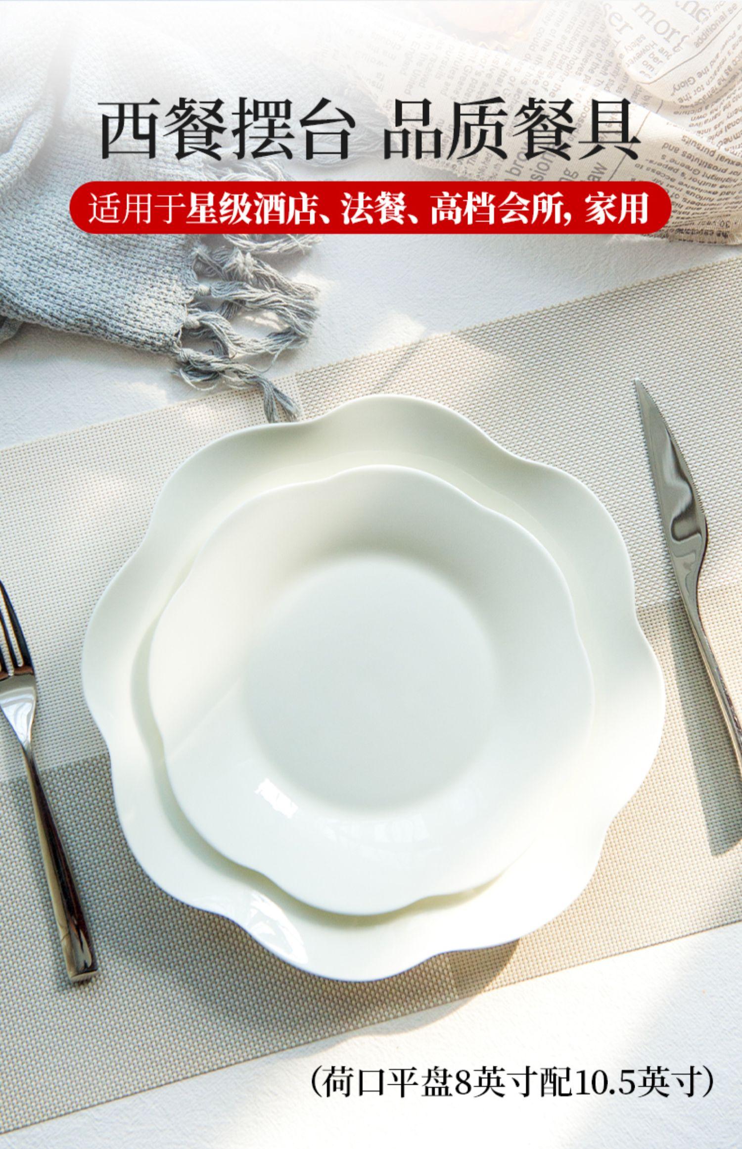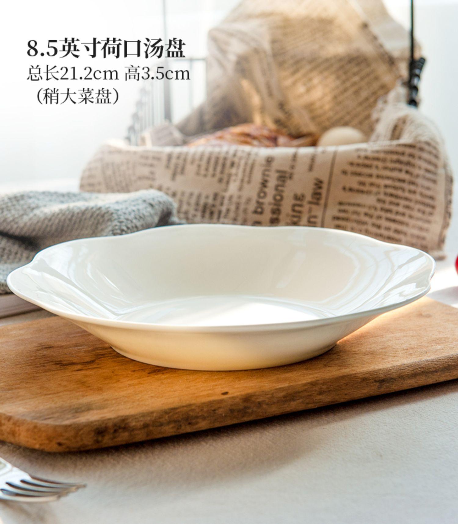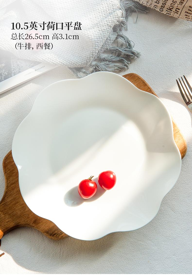 Plato de Porcelana Fina Blanca Pura Plato Cerámico para el Hogar Vajilla Creativa Plato Hondo Plato Occidental para Bistec Plato Llano Plato para Ensalada Plato de Loto