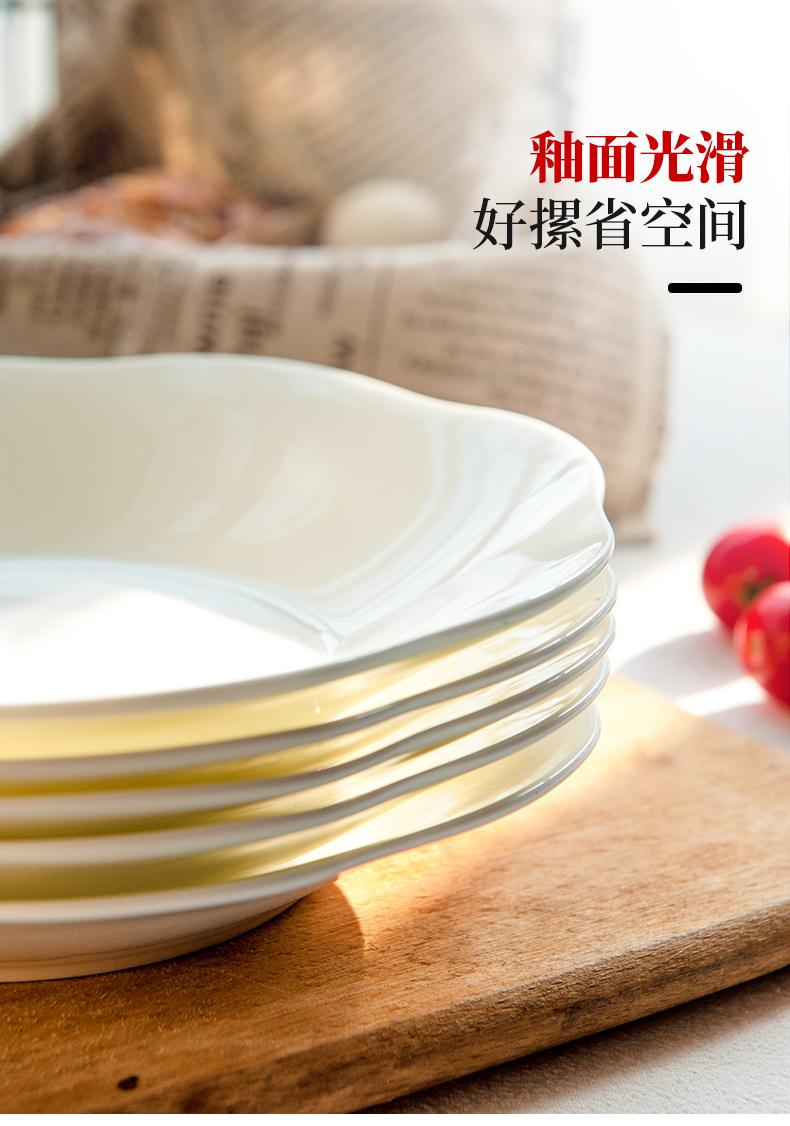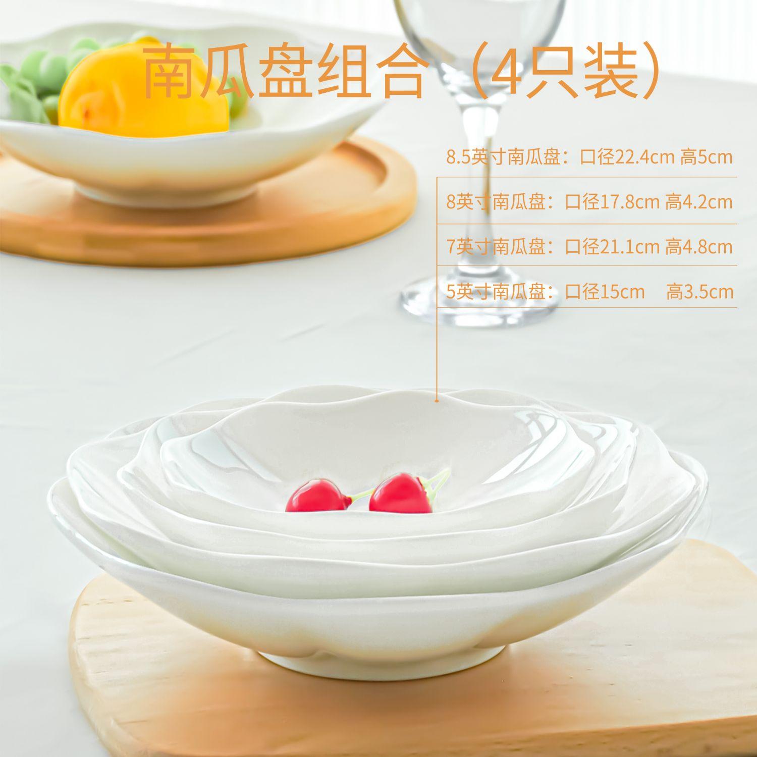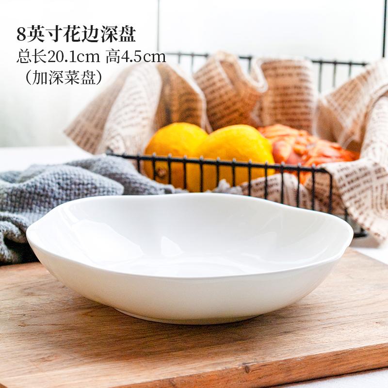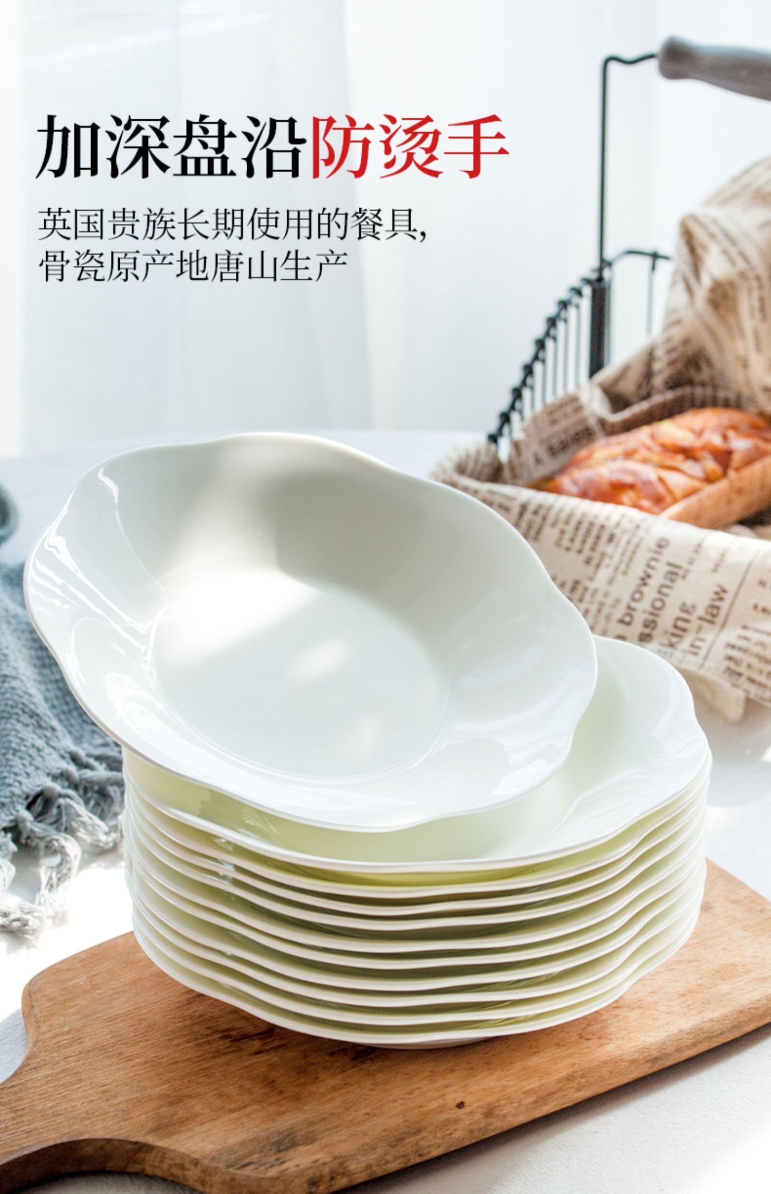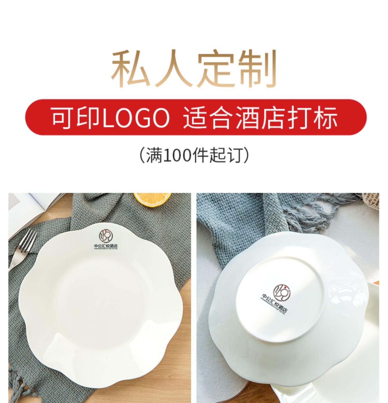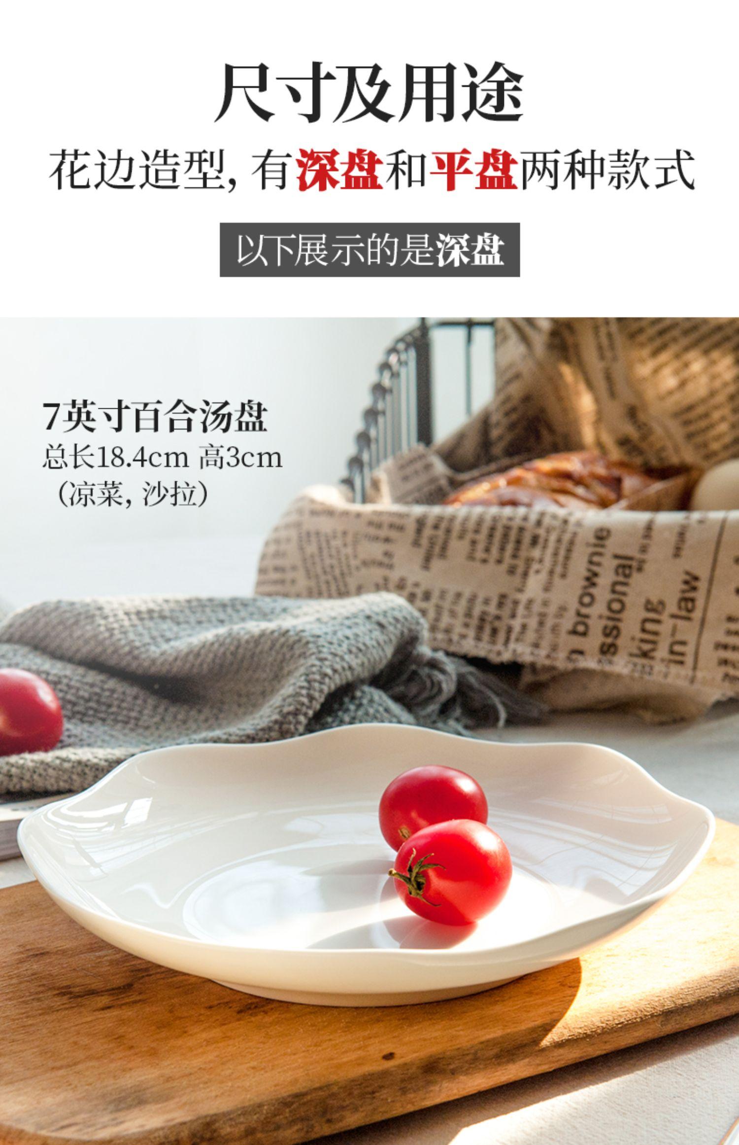 Plato de Porcelana Fina Blanca Pura Plato Cerámico para el Hogar Vajilla Creativa Plato Hondo Plato Occidental para Bistec Plato Llano Plato para Ensalada Plato de Loto