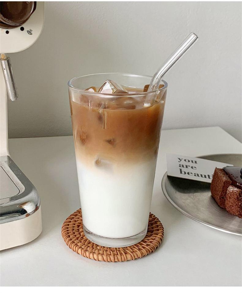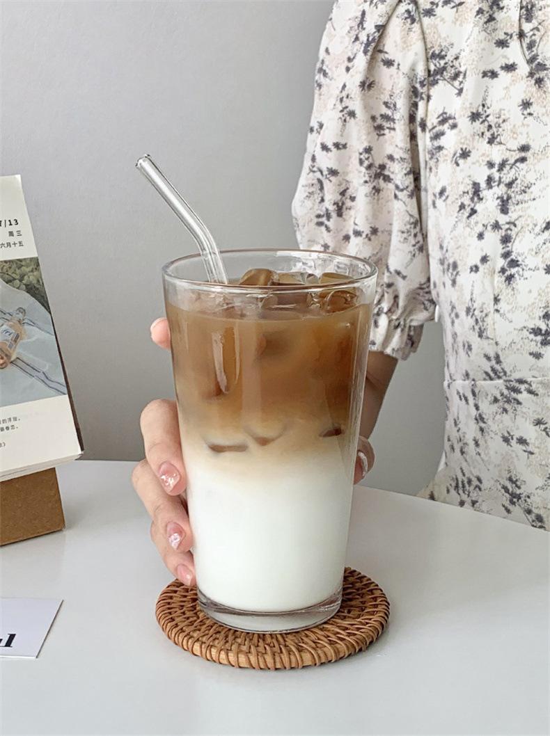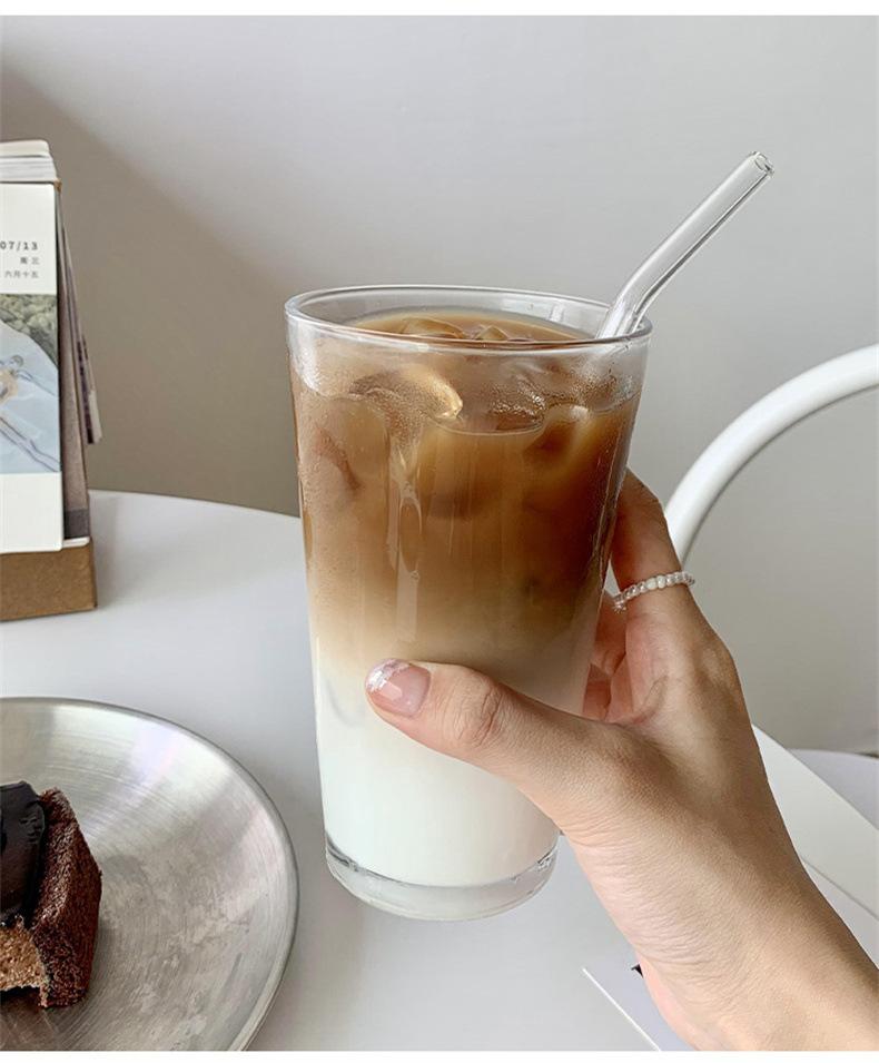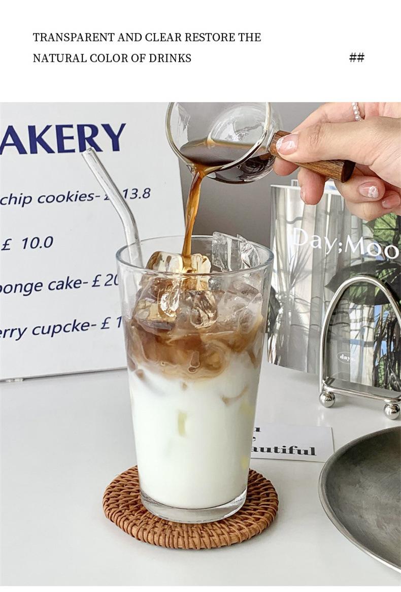 Taza de café de vidrio transparente simple estilo Ins, taza de jugo para bebidas frías, taza de agua para el hogar, taza de leche para café con leche americano helado