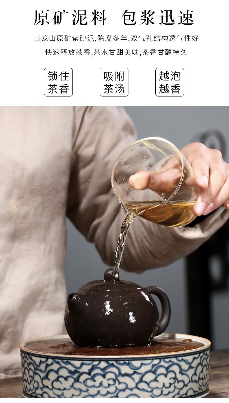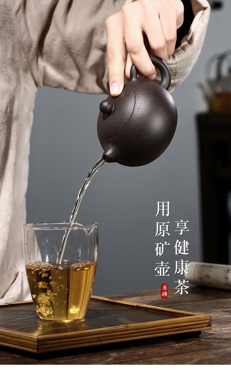 Tetera de Arcilla Púrpura Yixing, Juego de Té Totalmente Hecho a Mano, Tetera Xishi de Arena Oro Negro, Detección de Fugas de una Sola Olla, Marca Famosa para el Hogar
