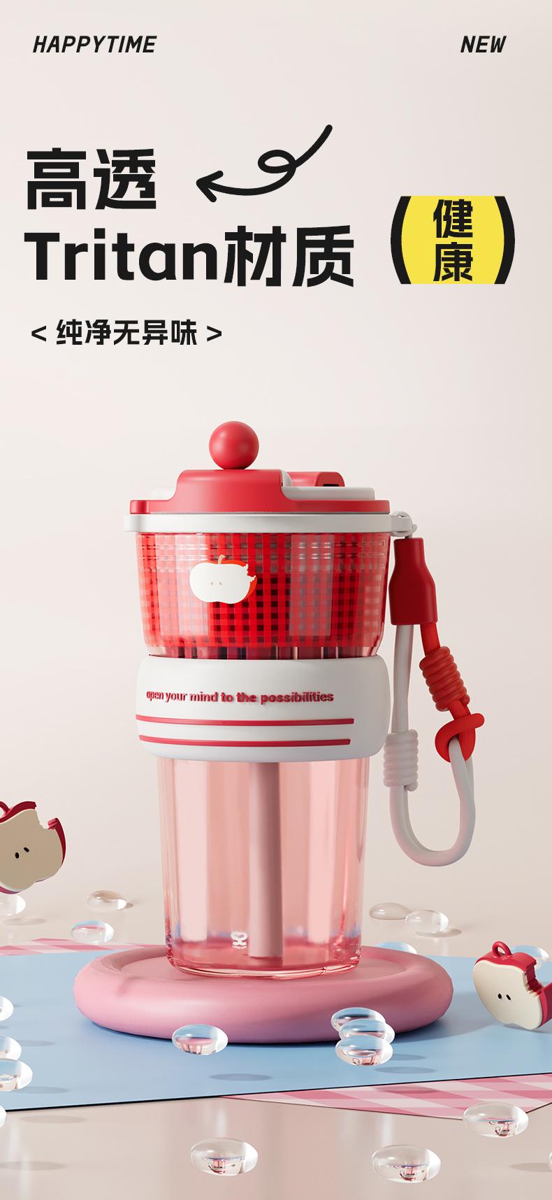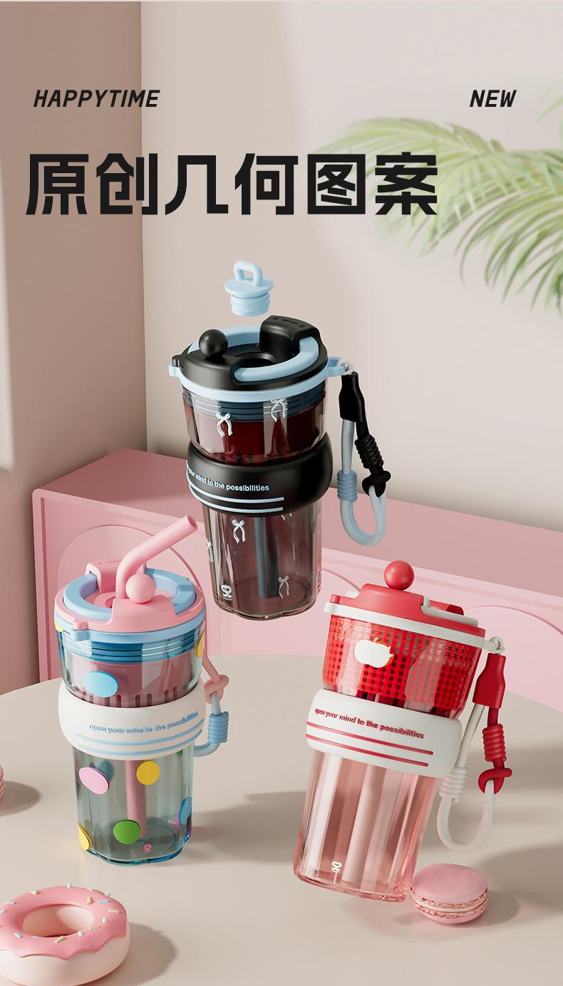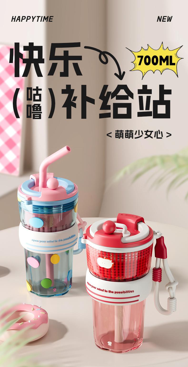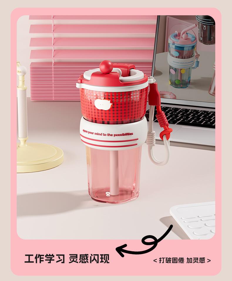 Verano Nuevo Lindo Dibujo Animado Vaso de Agua de Plástico de Bebida Directa Gran Capacidad Femenino Portátil Estudiante Doble Bebida Creativo Vaso con Pajita
