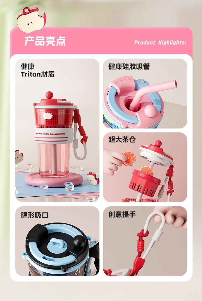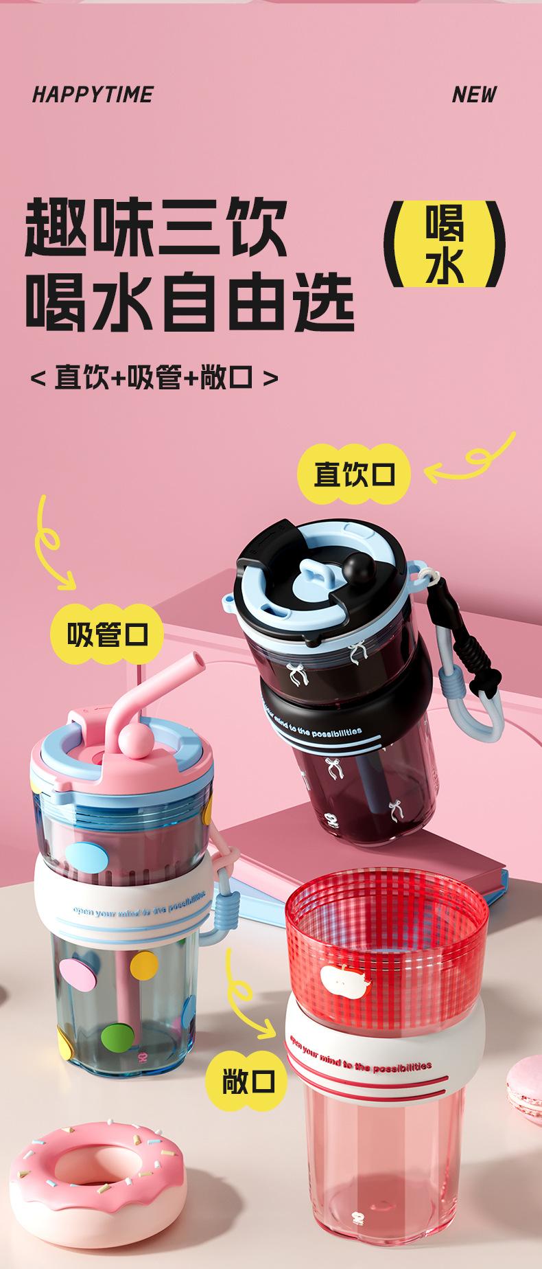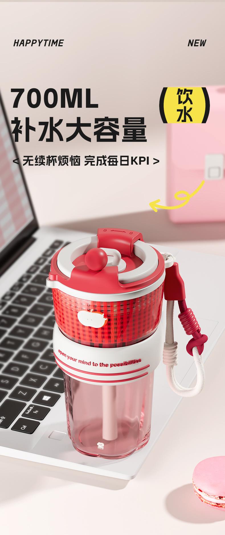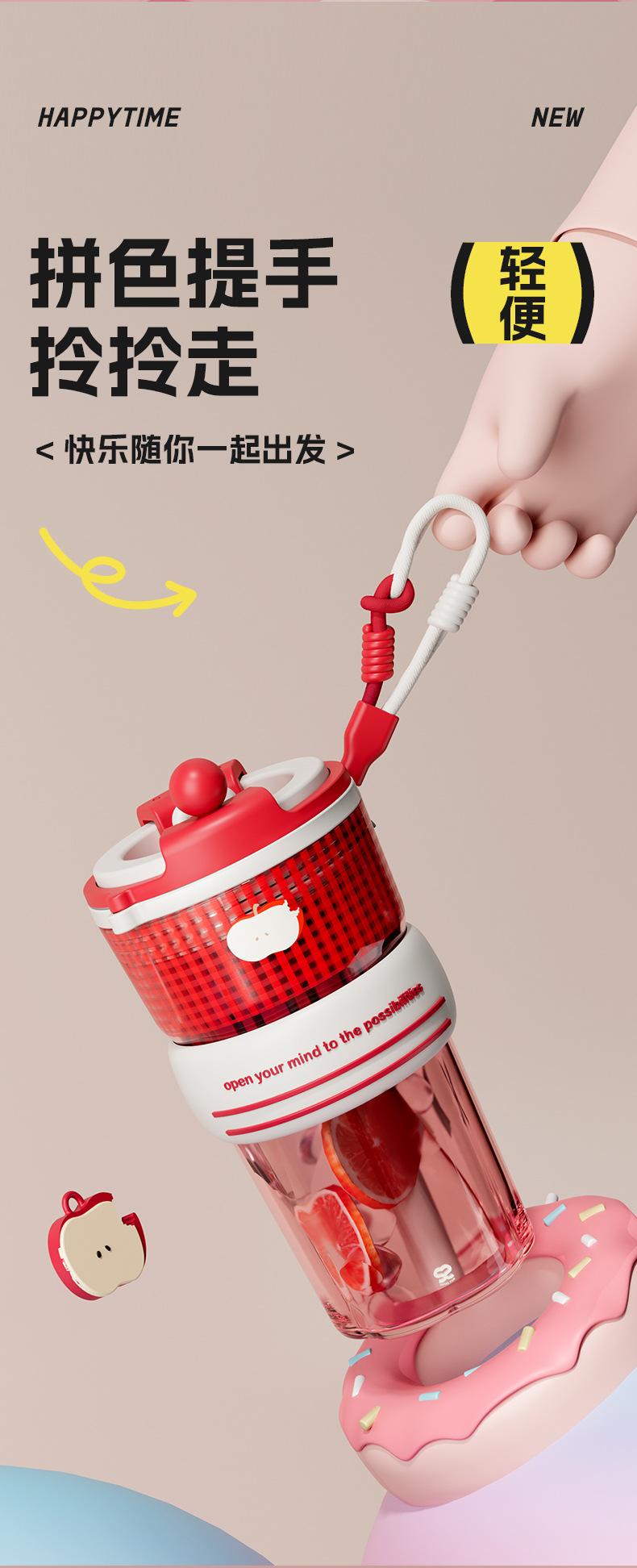 Verano Nuevo Lindo Dibujo Animado Vaso de Agua de Plástico de Bebida Directa Gran Capacidad Femenino Portátil Estudiante Doble Bebida Creativo Vaso con Pajita