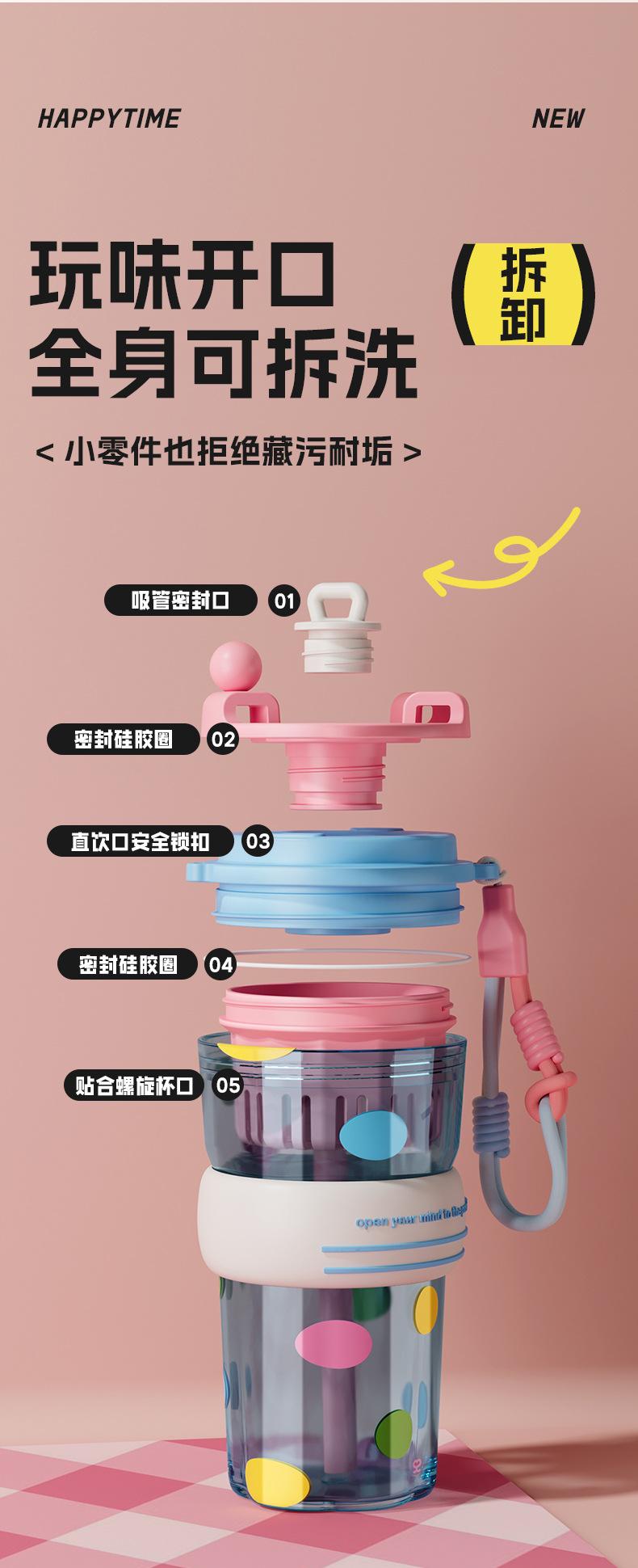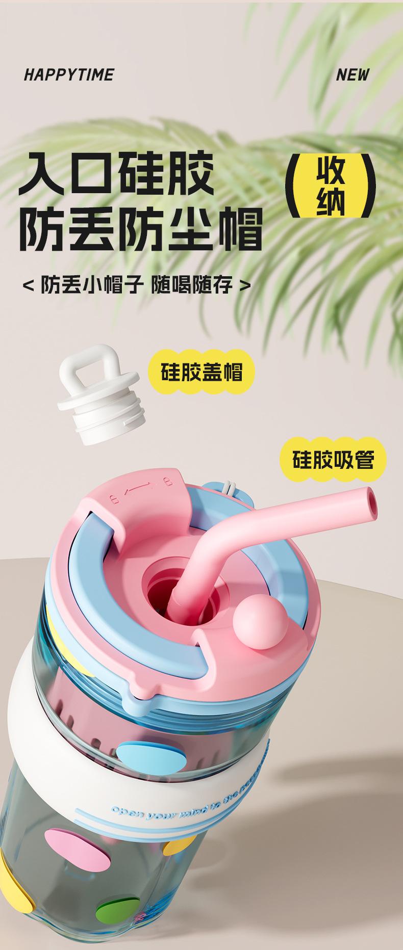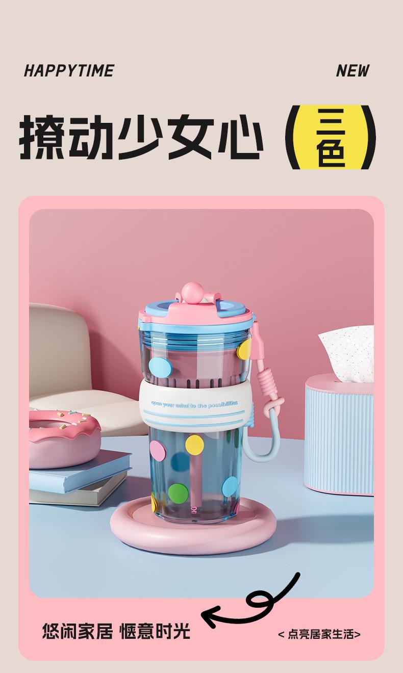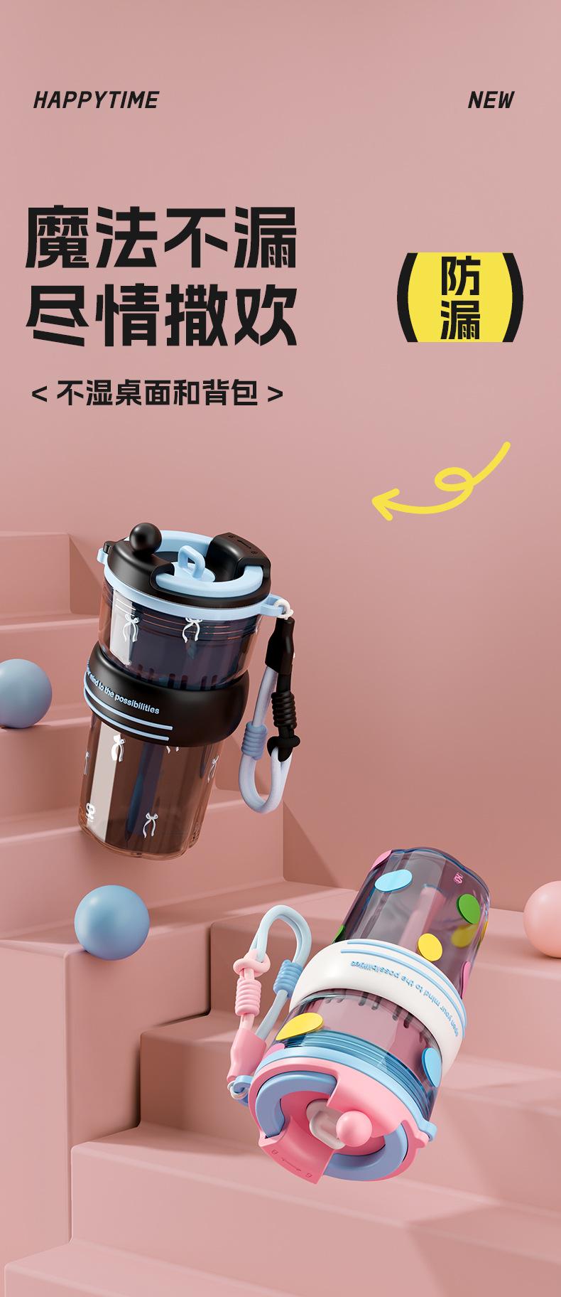 Verano Nuevo Lindo Dibujo Animado Vaso de Agua de Plástico de Bebida Directa Gran Capacidad Femenino Portátil Estudiante Doble Bebida Creativo Vaso con Pajita