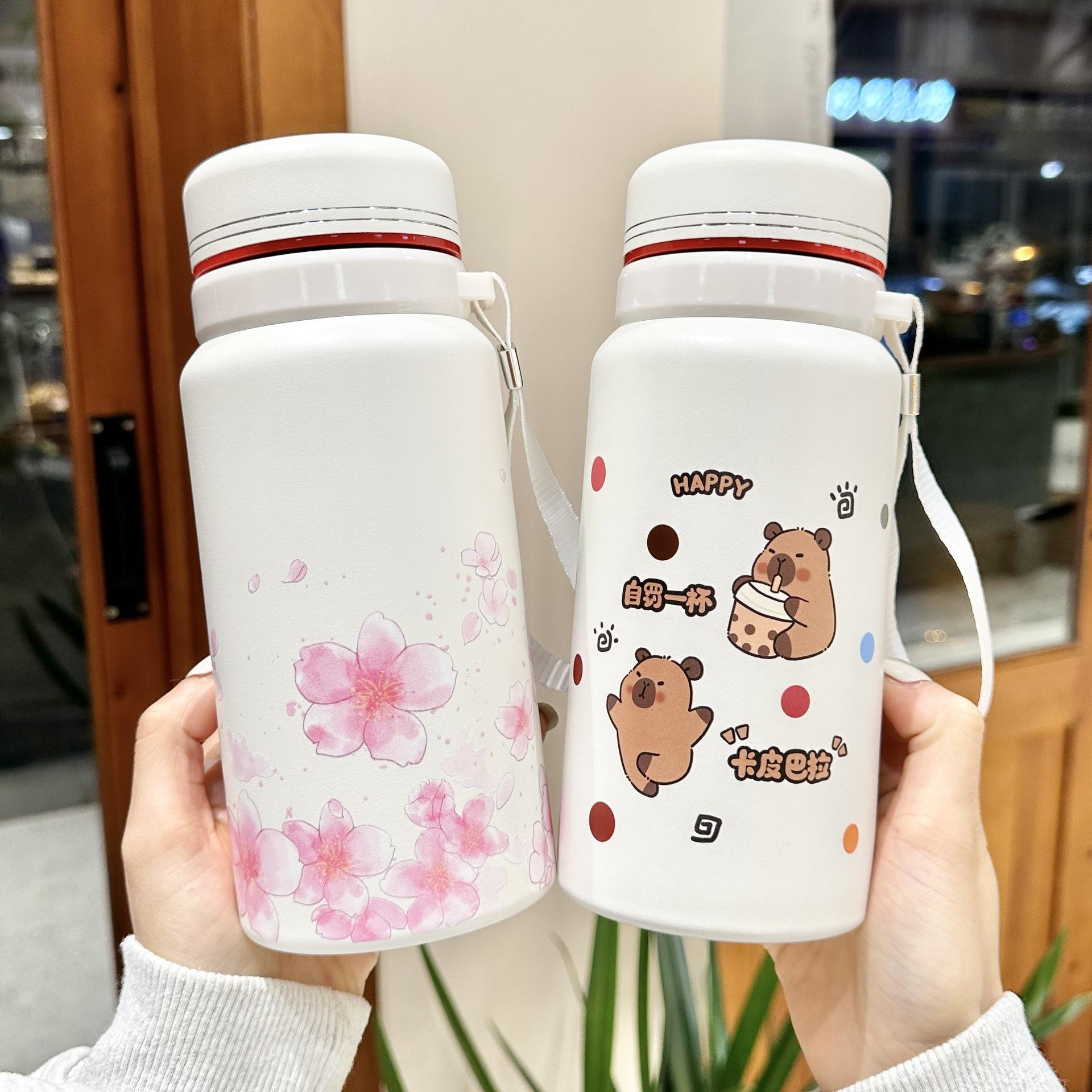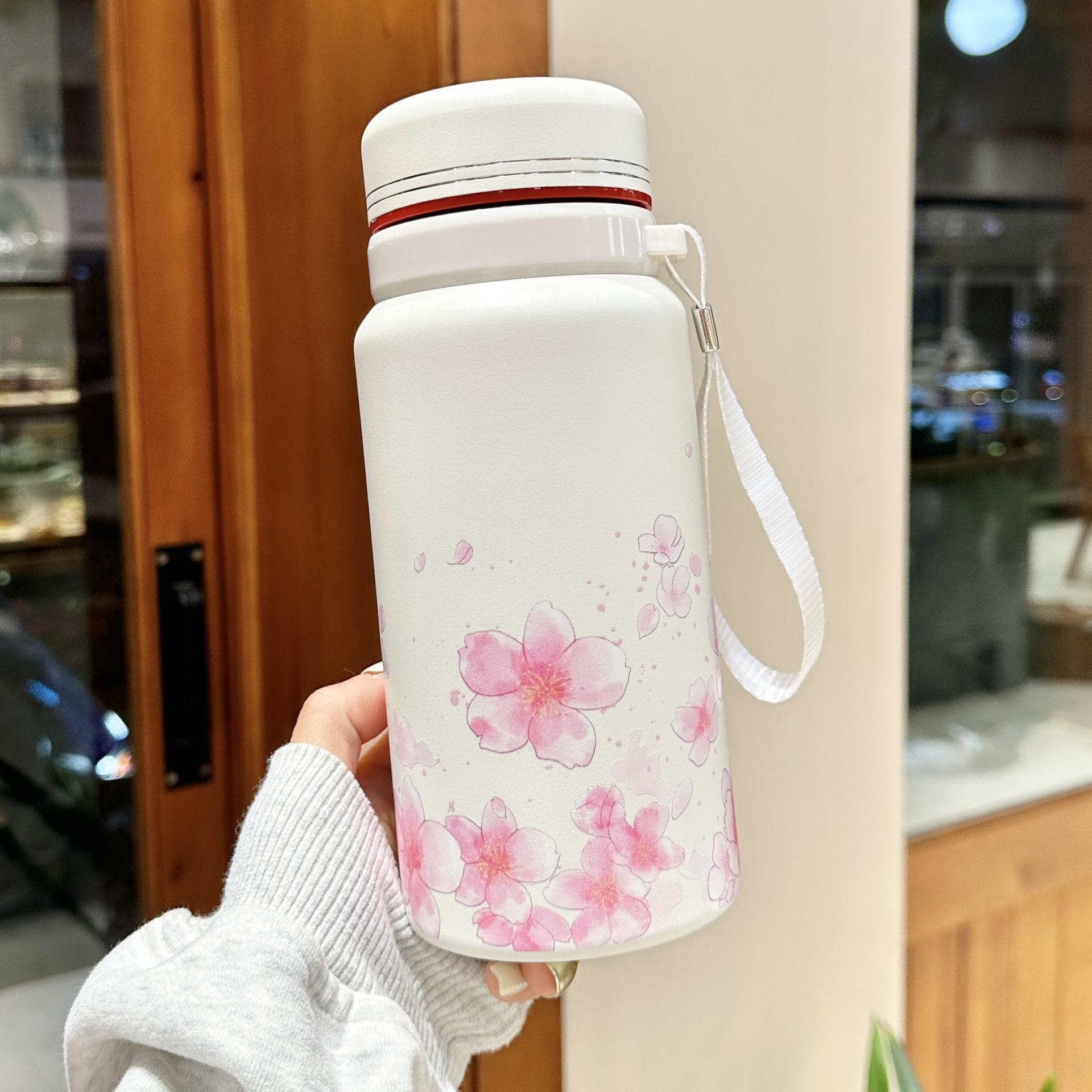Compra Termo portátil de gran capacidad con diseño de flor de cerezo para niñas, de acero inoxidable 316, ideal como regalo de cumpleaños. al por mayor en Joom.pro