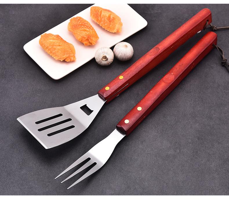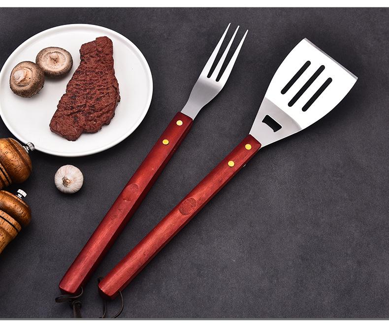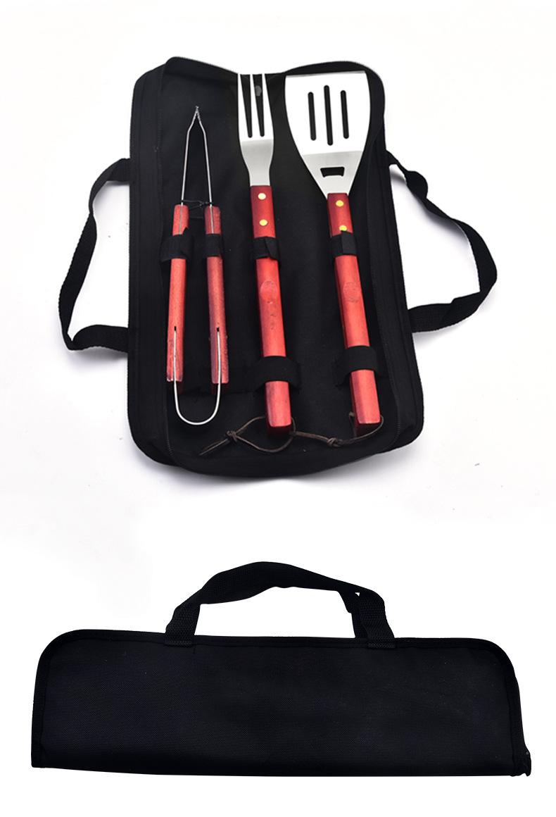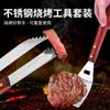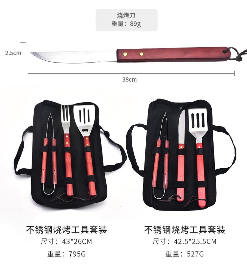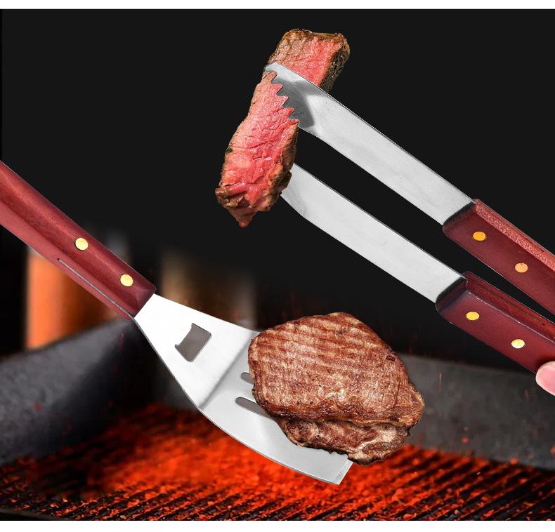 Juego de barbacoa de acero inoxidable para exteriores, tenedor, pala, clip, cepillo, bolsa de tela, herramientas para barbacoa, juego de 5 piezas