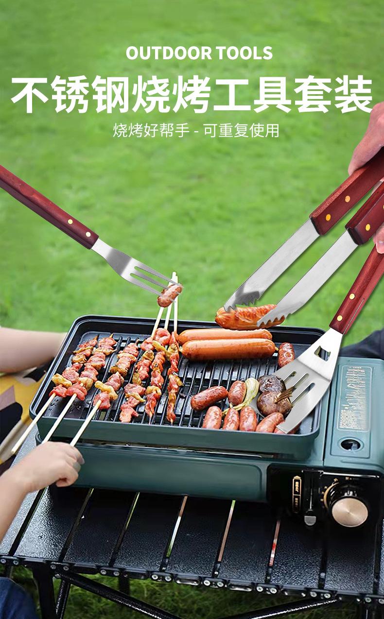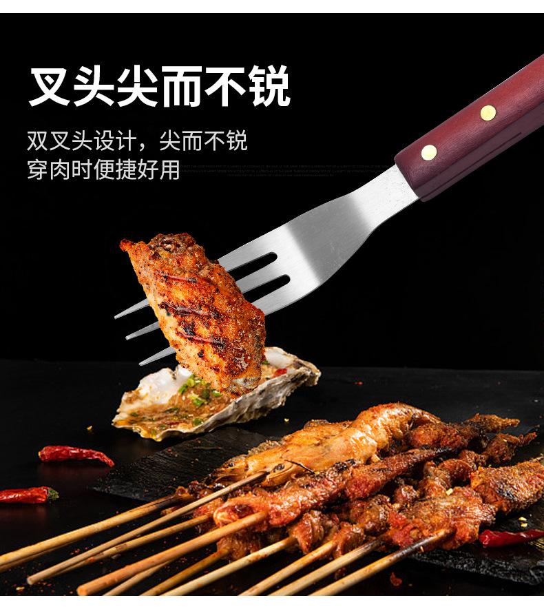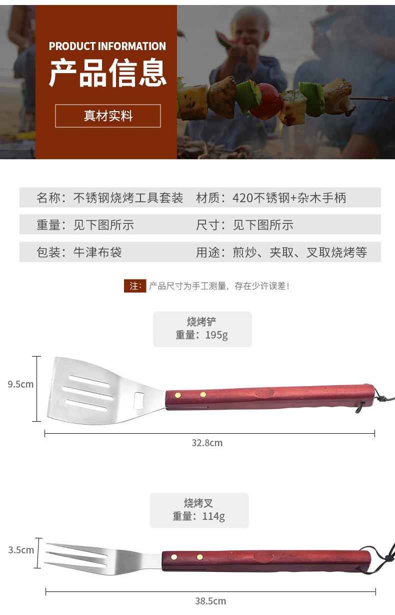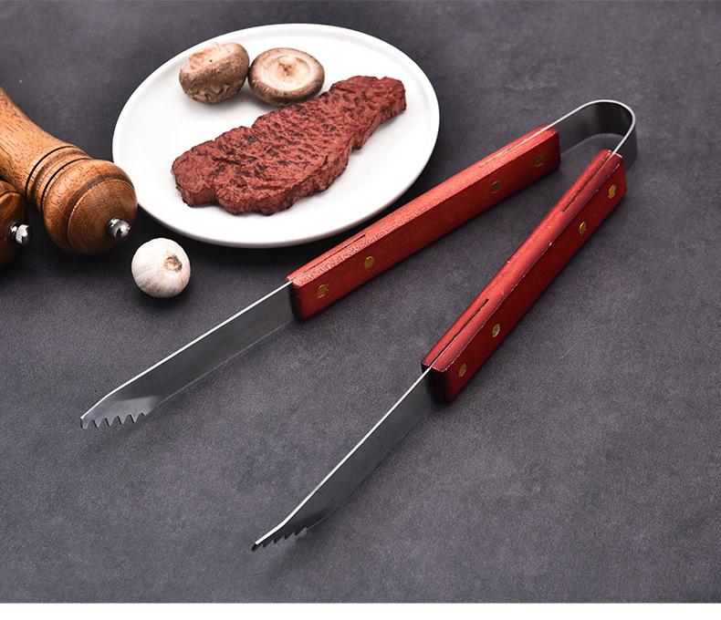 Juego de barbacoa de acero inoxidable para exteriores, tenedor, pala, clip, cepillo, bolsa de tela, herramientas para barbacoa, juego de 5 piezas