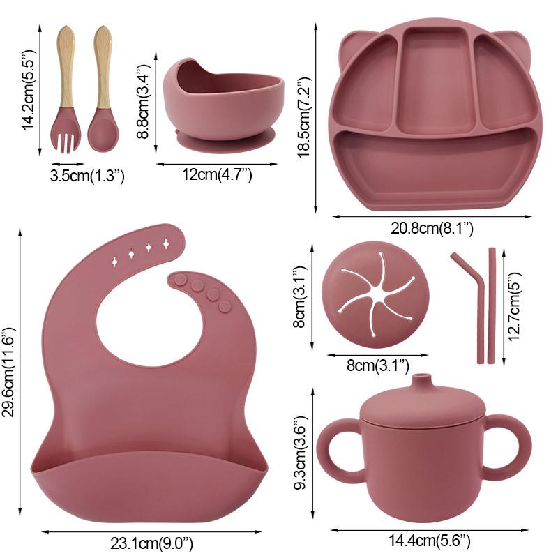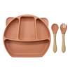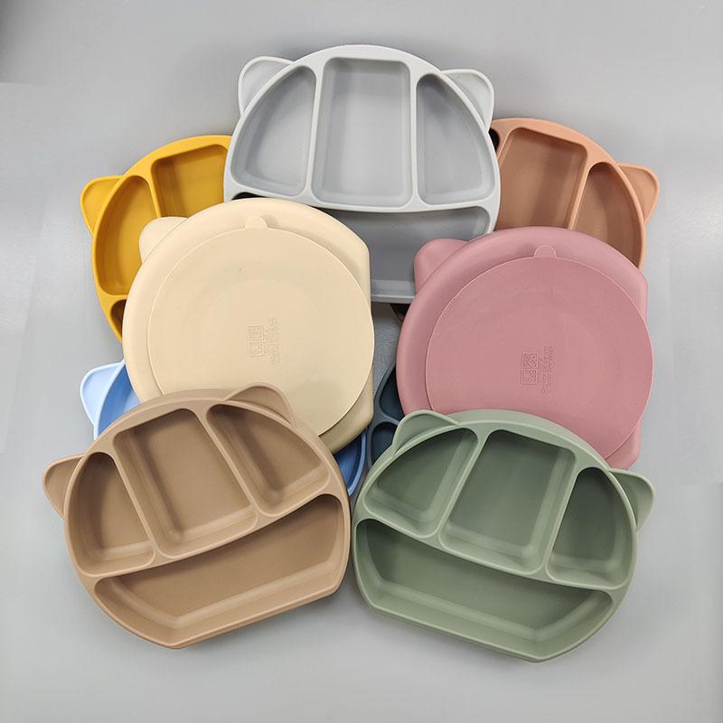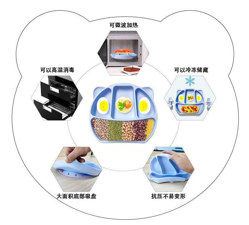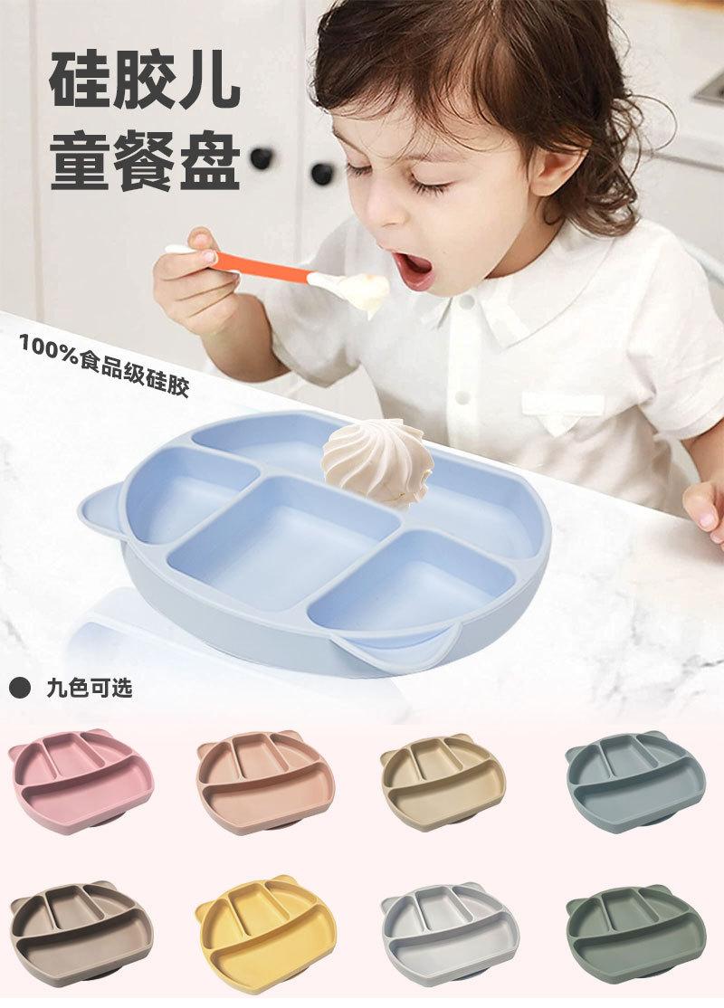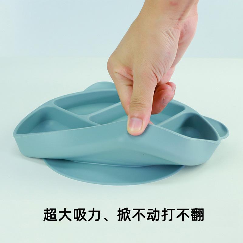 Plato de silicona para niños con diseño de panda de dibujos animados, ventosa grande, resistente a caídas y gruesa, vajilla de alimentación complementaria con ventosa para alimentos.