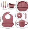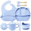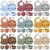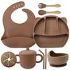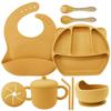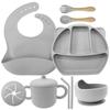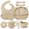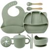 Army Green seven-piece set (Bib + Panda plate + snail bowl + wooden fork spoon + binaural straw cup + binaural snack cup lid)