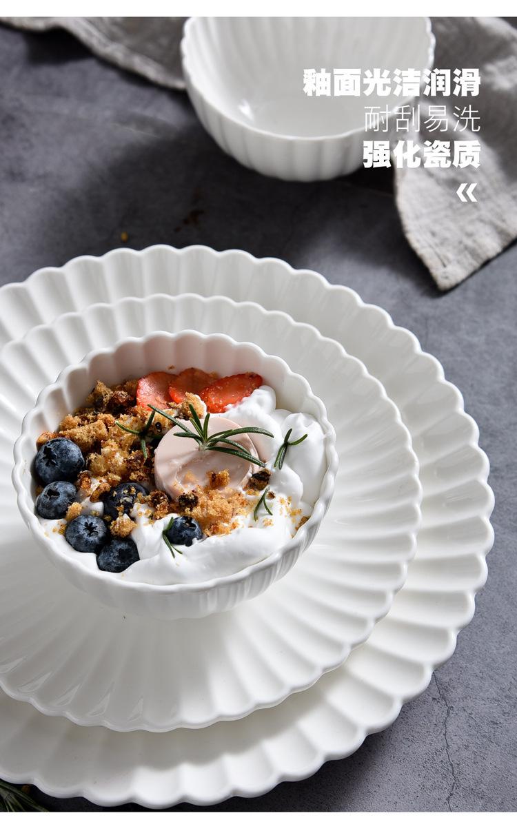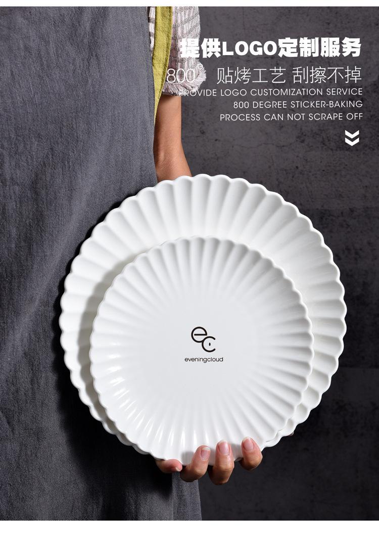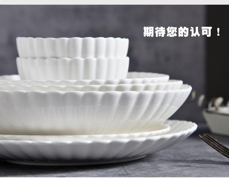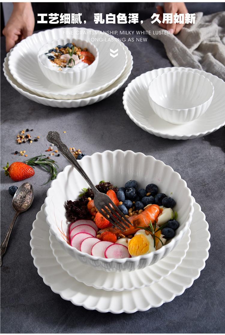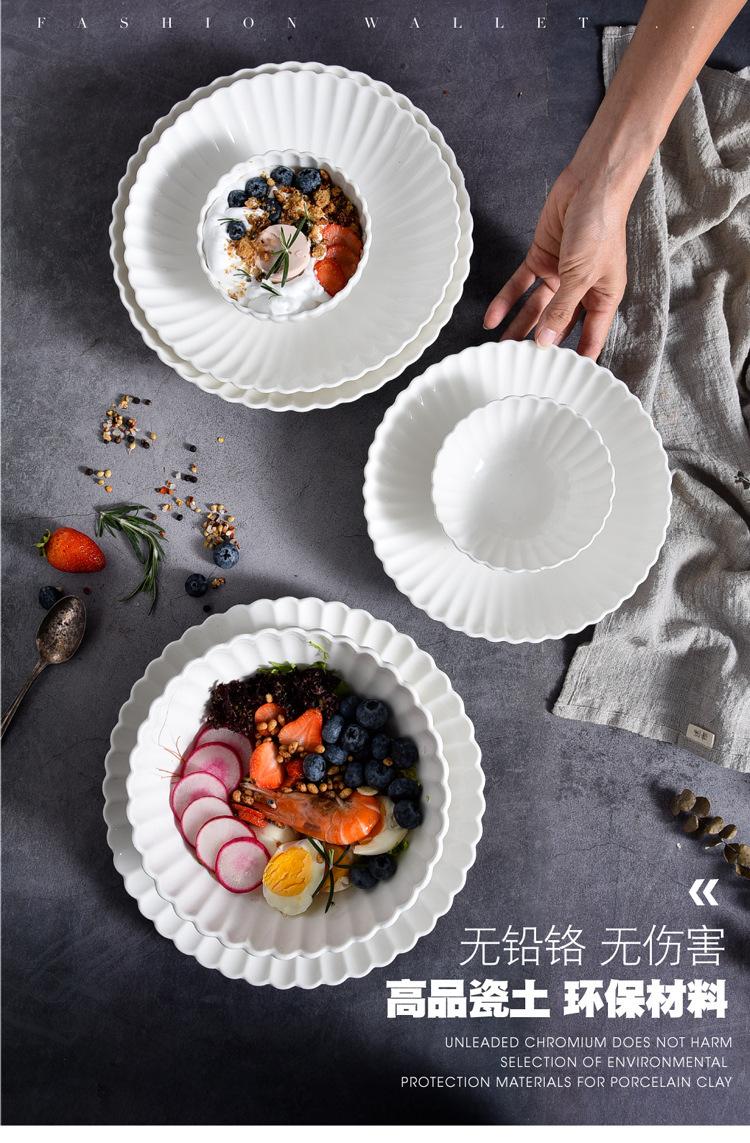 Plato de cerámica blanca pura con encaje creativo, vajilla de cerámica de estilo nórdico para el hogar, plato para verduras, tazón para fideos, tazón para sopa, tazón para arroz