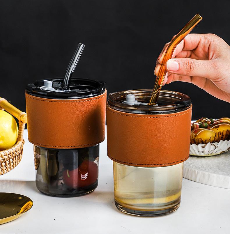 Taza de bambú con pajita, taza de vidrio, taza de café, taza de alto valor para mujeres, taza de agua potable para el hogar, taza de agua con ventosa, taza de jugo