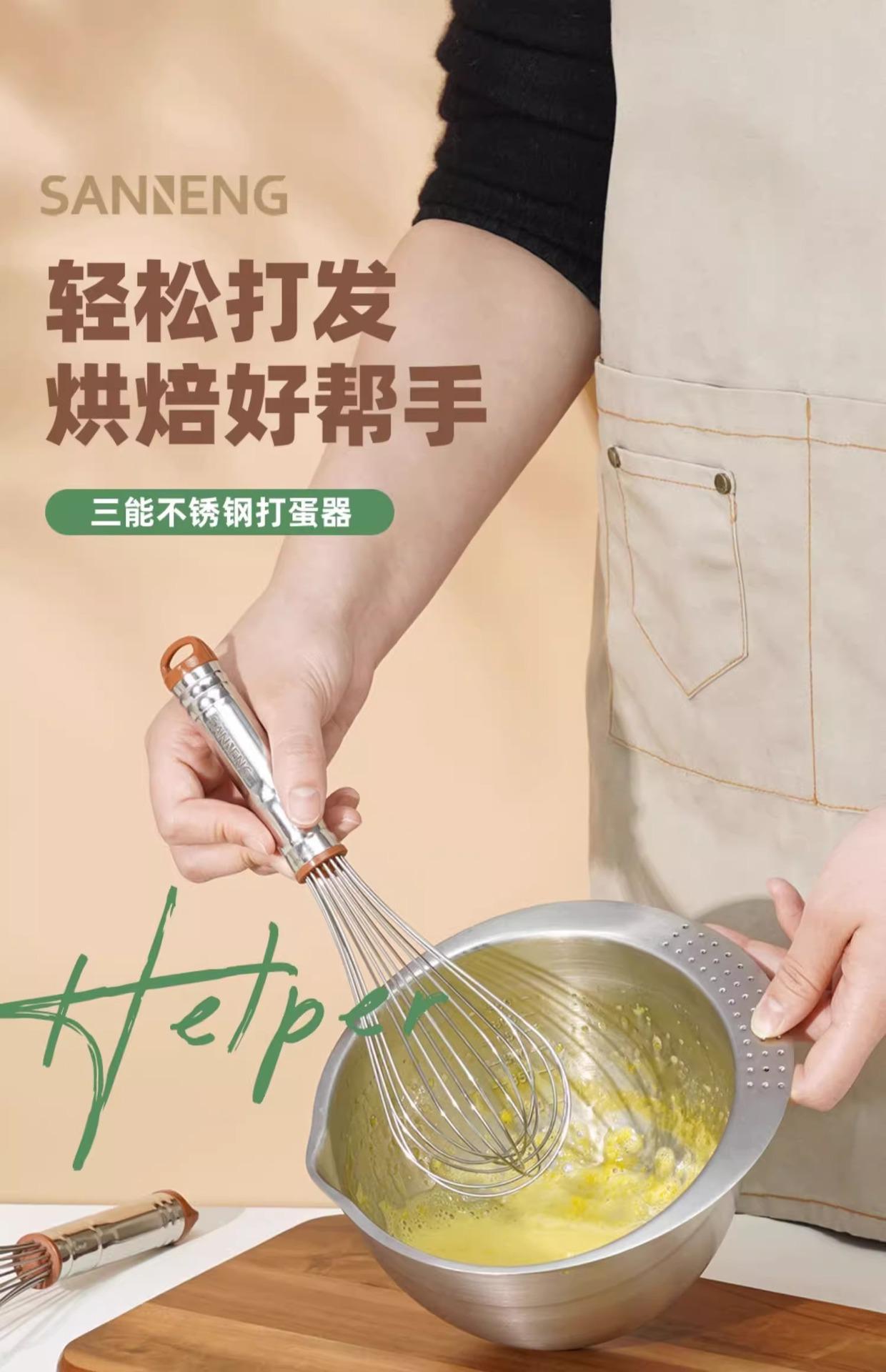Batidora de huevos manual de tres velocidades para el hogar, mini batidora de acero inoxidable para crema y humo.