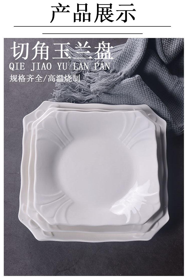 Plato de cocina de hotel, plato cuadrado de cerámica, plato doméstico para restaurante de hotel, plato caliente comercial creativo, plato de porcelana blanca