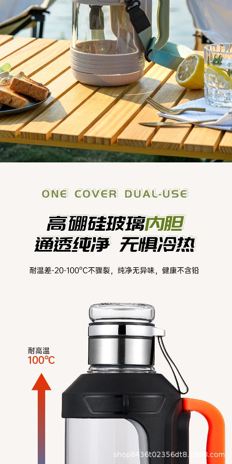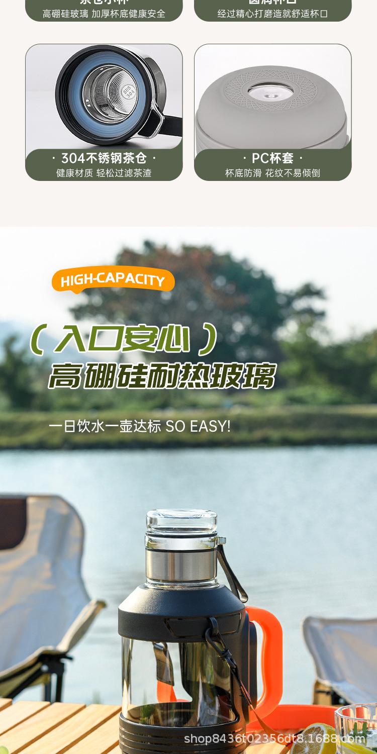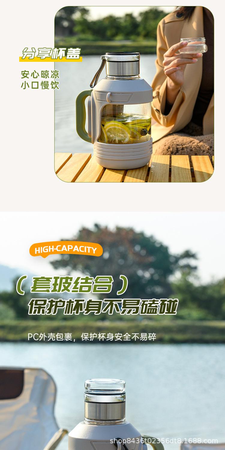 Nueva Taza Ton de Vidrio de Gran Capacidad con Separación de Té y Agua con Asa Taza de Té para Exterior Vaso de Vidrio Plástico Resistente a Altas Temperaturas