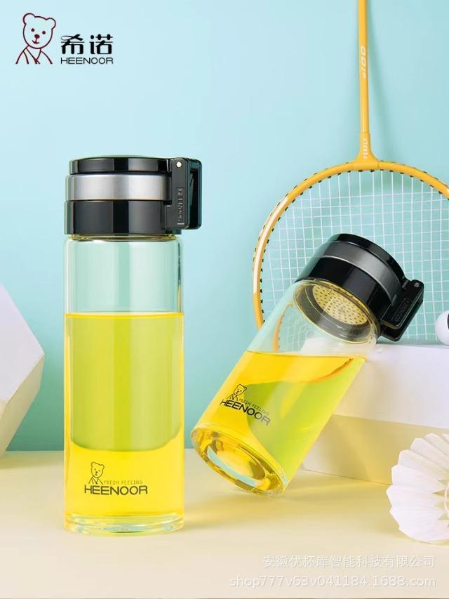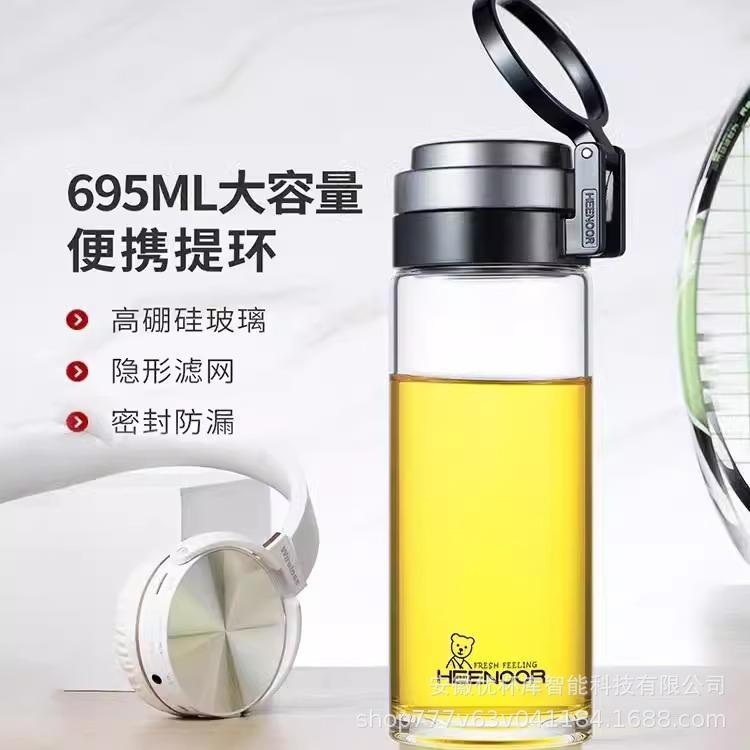 Vaso de Vidrio Xino 6076, Espesado de una Sola Capa, Gran Capacidad, Portátil con Asa, Taza de Té con Filtro para Hombres y Mujeres
